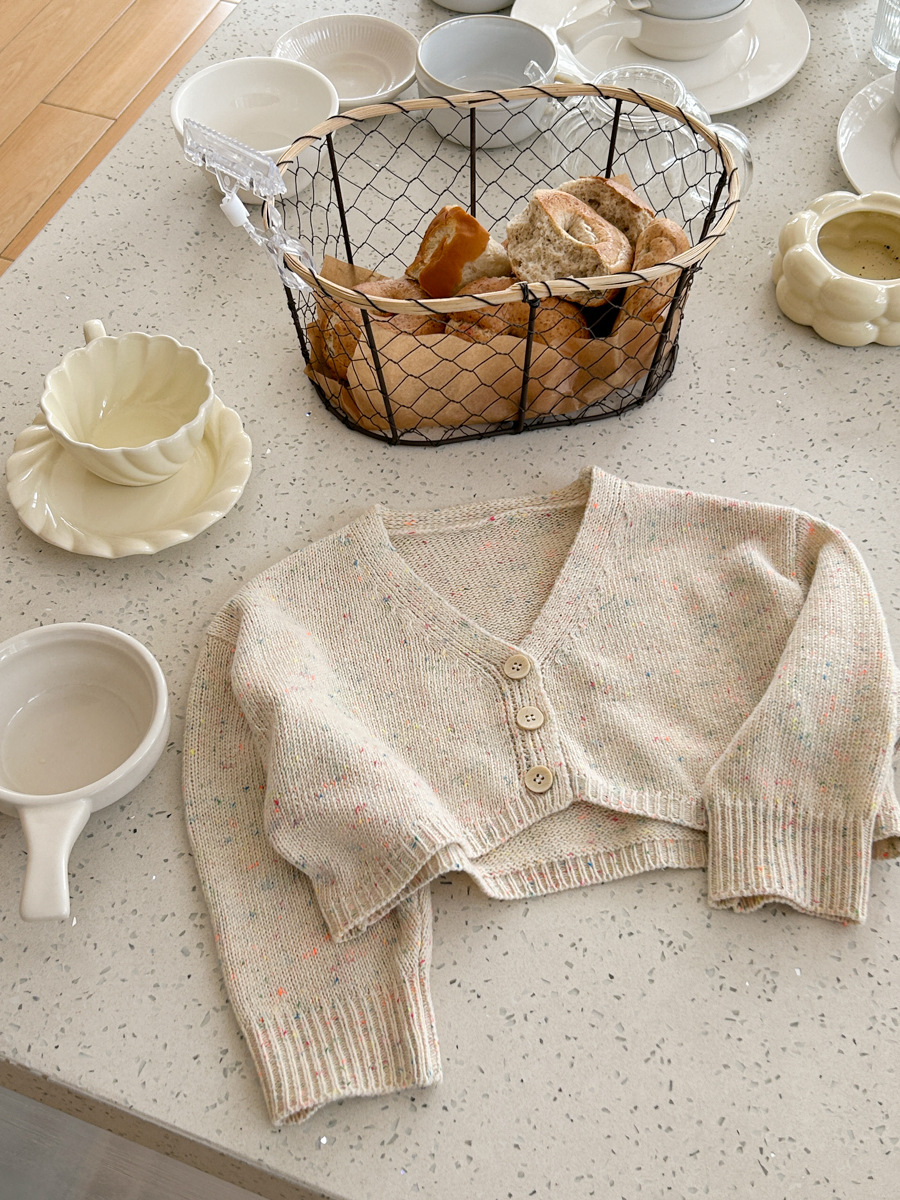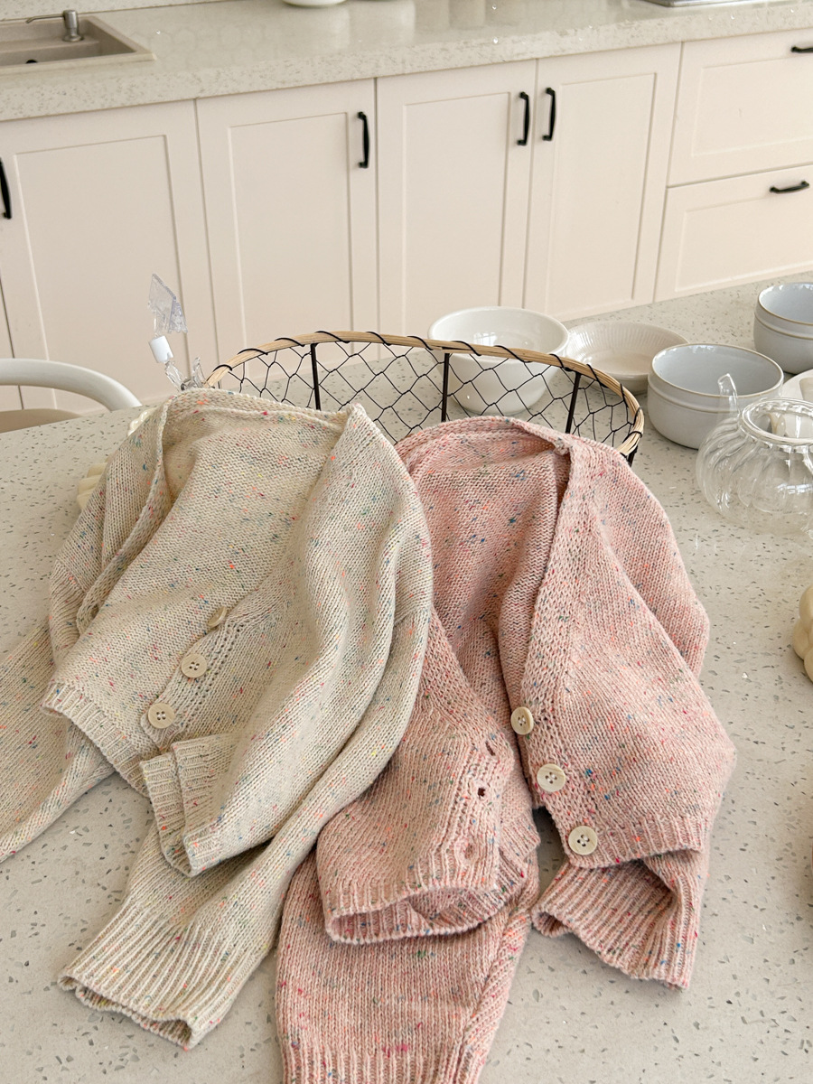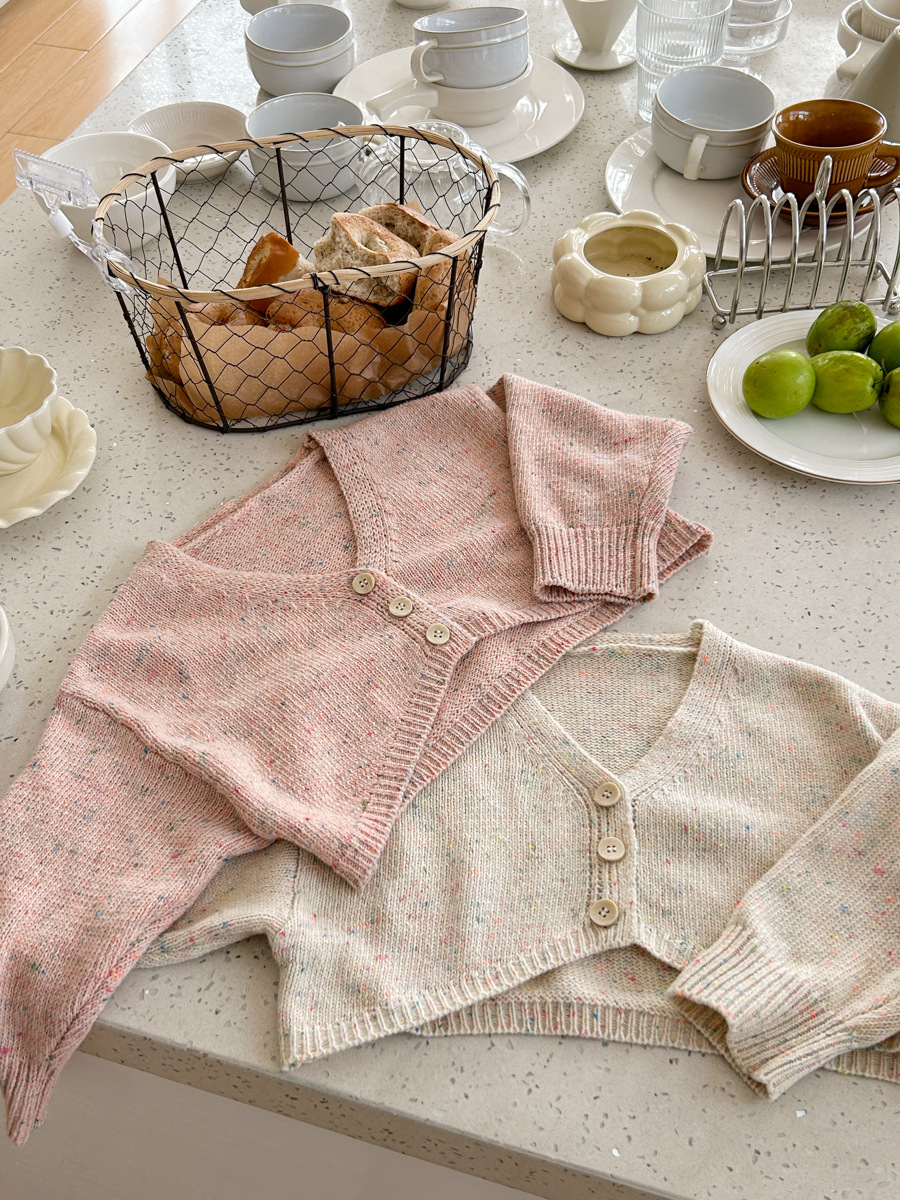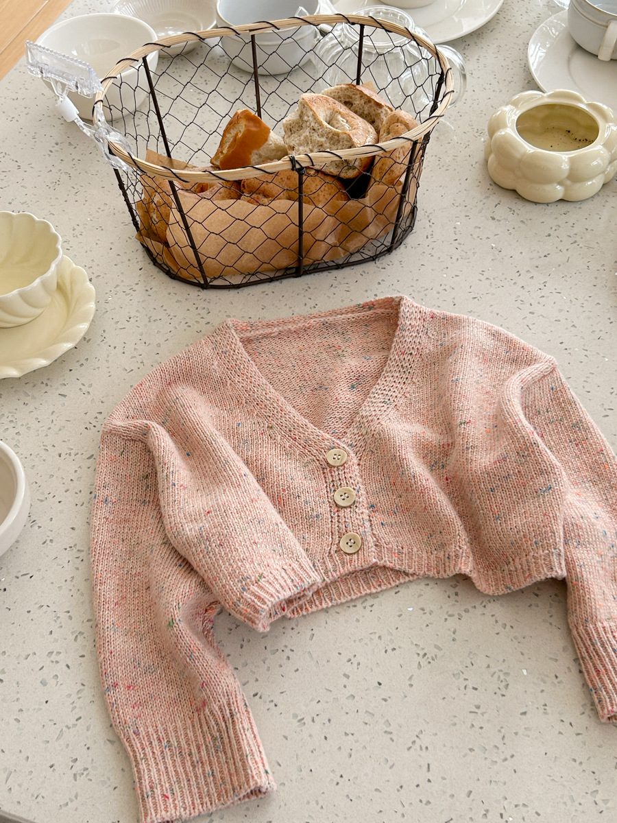 South Korea children s clothing girls 2024 spring new western style baby sweet short versatile V neck knitted cardigan top