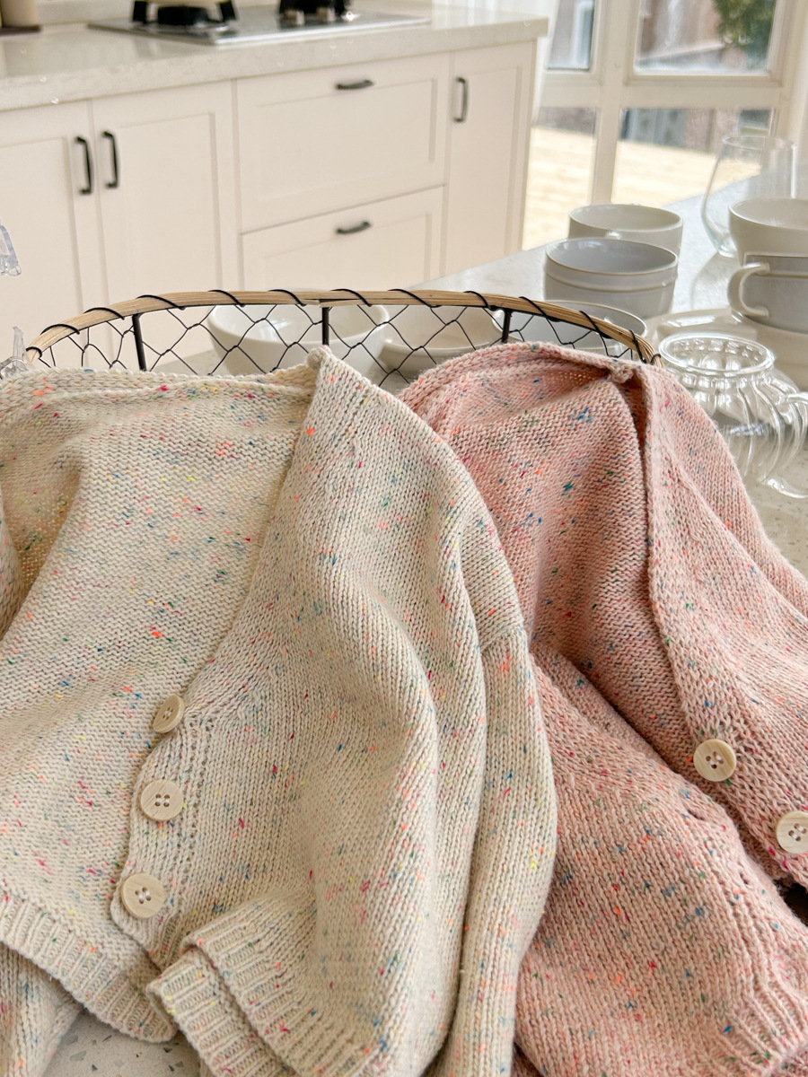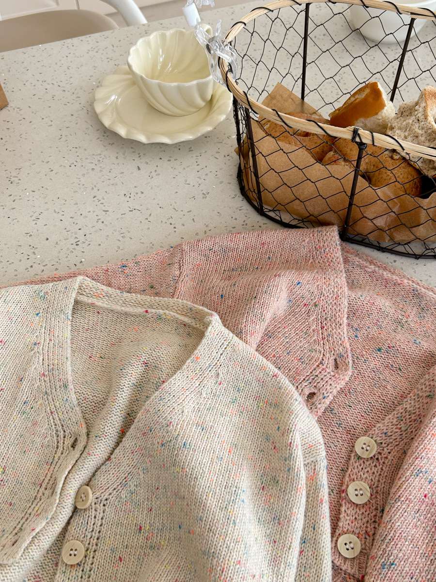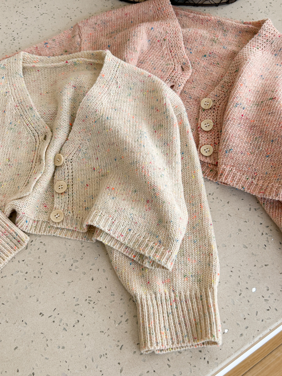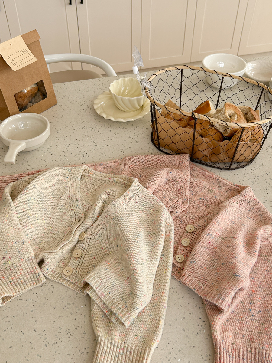 South Korea children s clothing girls 2024 spring new western style baby sweet short versatile V neck knitted cardigan top