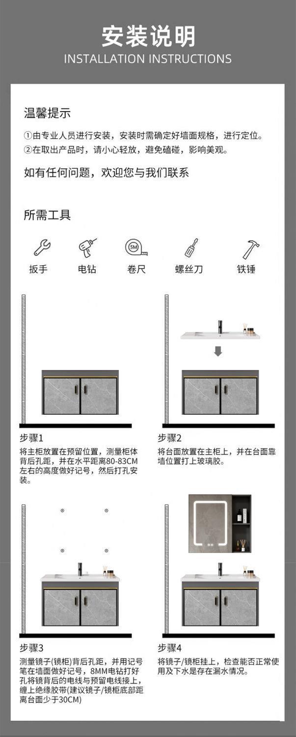 - Away from the open rock board cabinet -80cM-[induction light on] main cabinet induction mirror cabinet