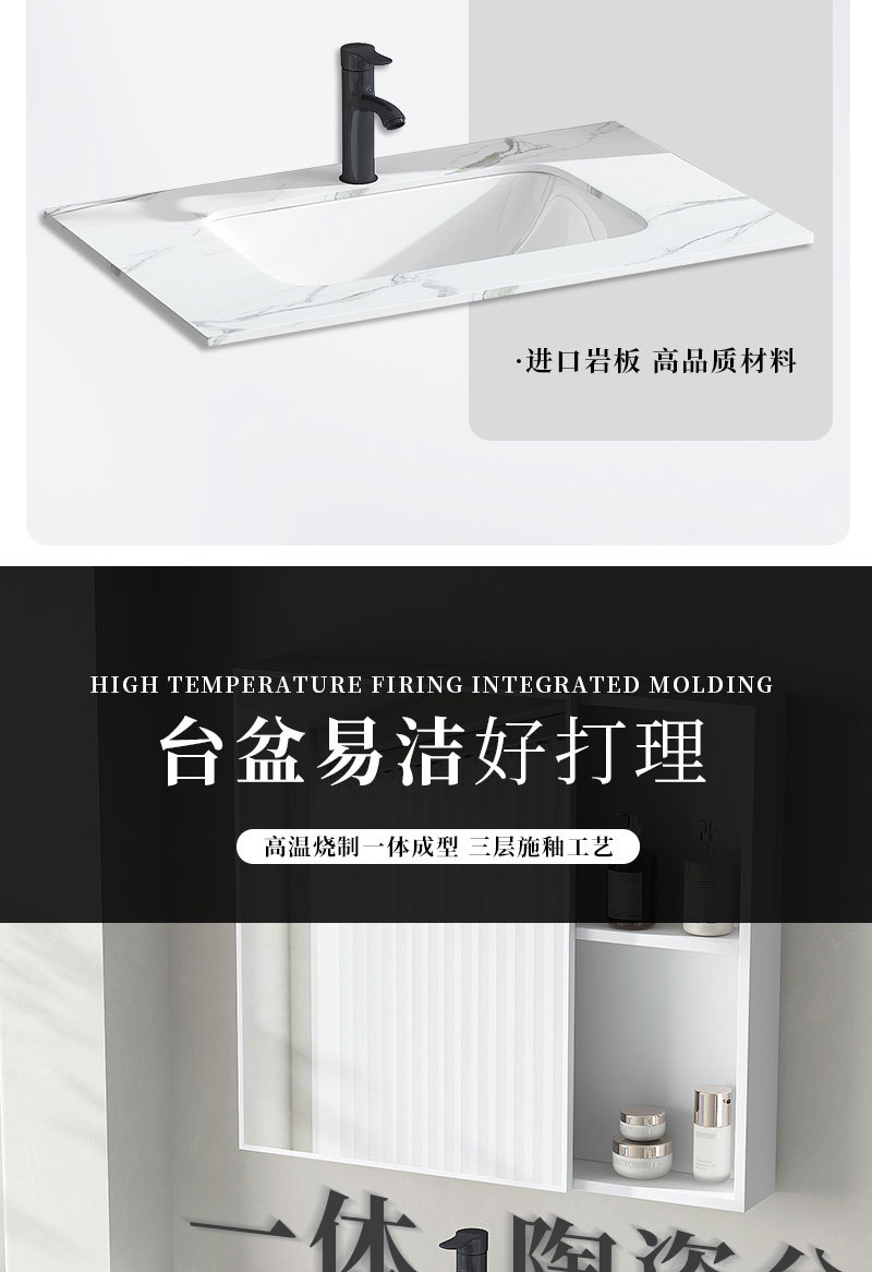 - 70 × 40 Ceramic Basin Cabinet [Stone Pattern White Mirror Cabinet] Special Price