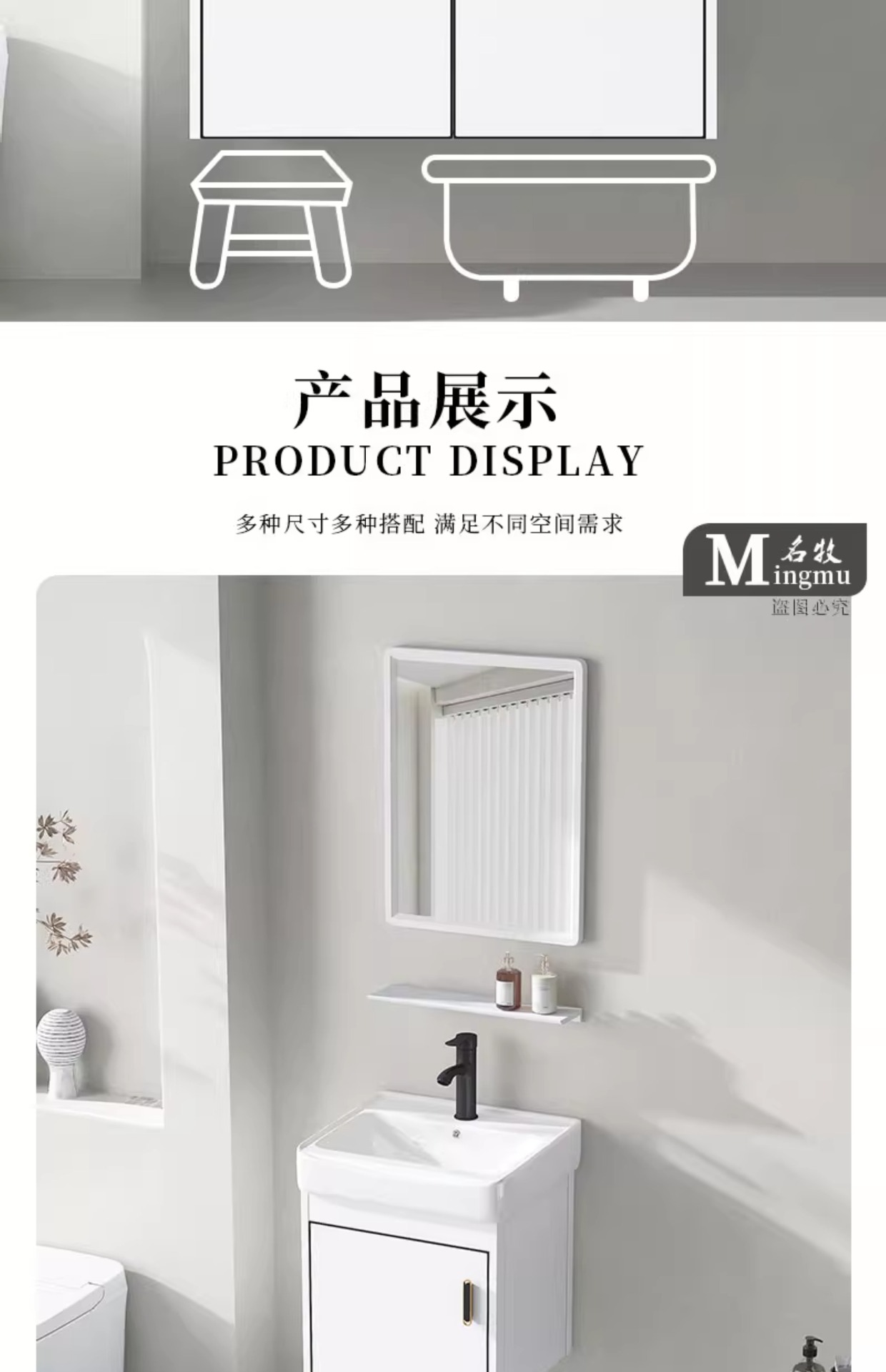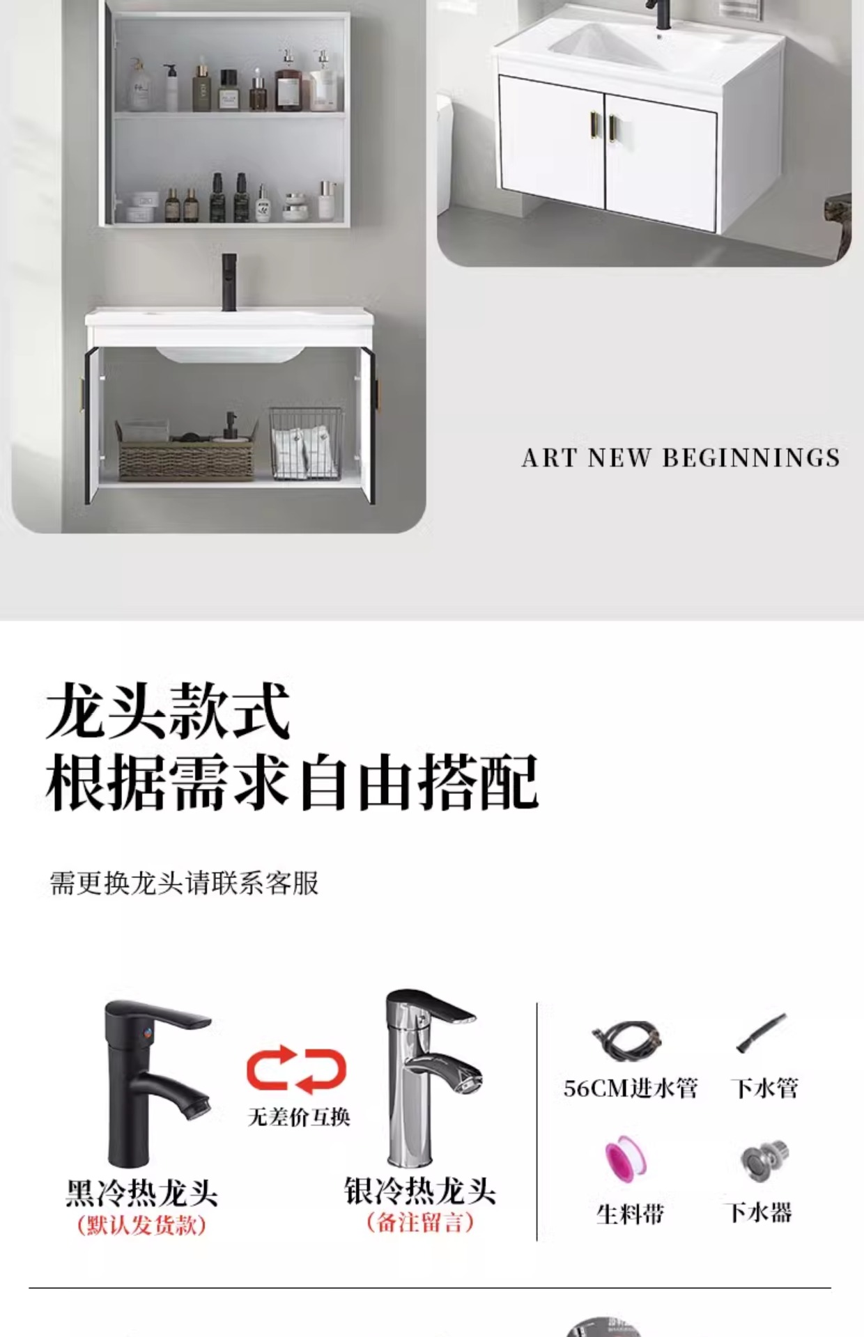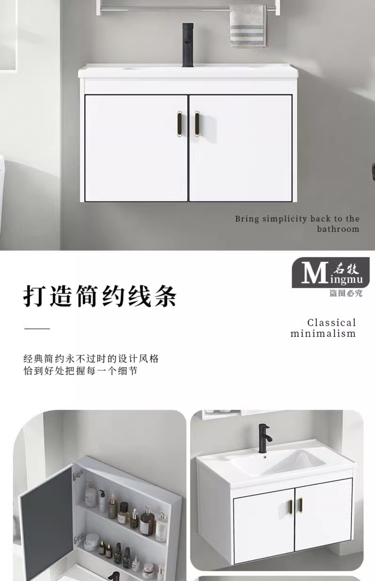 Space Aluminum Bathroom Cabinet Combination Washbasin Ceramic Integrated Washbasin Bathroom Moisture proof Board Simple Washbasin