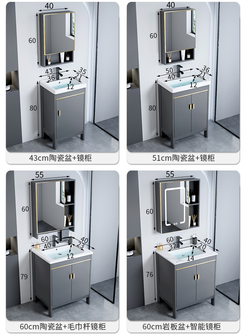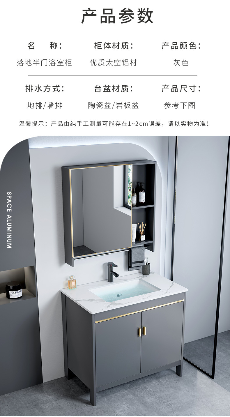 - 80 gray gold fully sealed floor towel mirror cabinet [high temperature ceramic basin]]