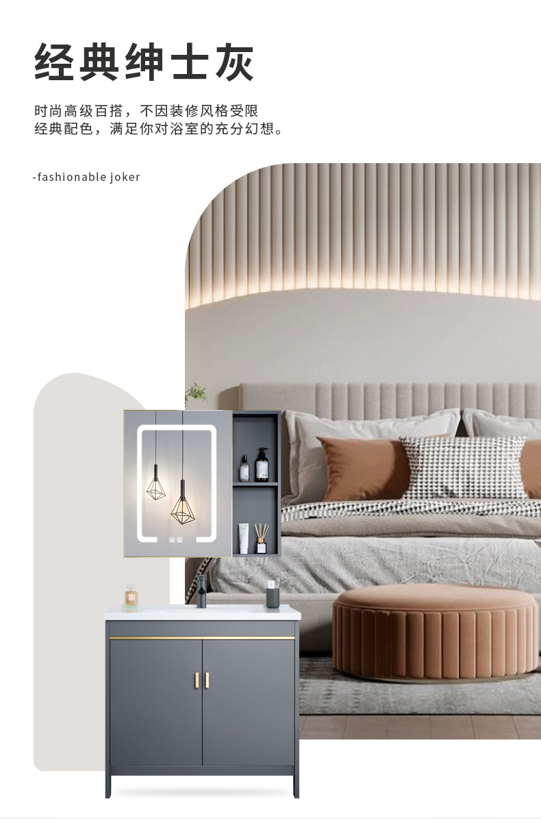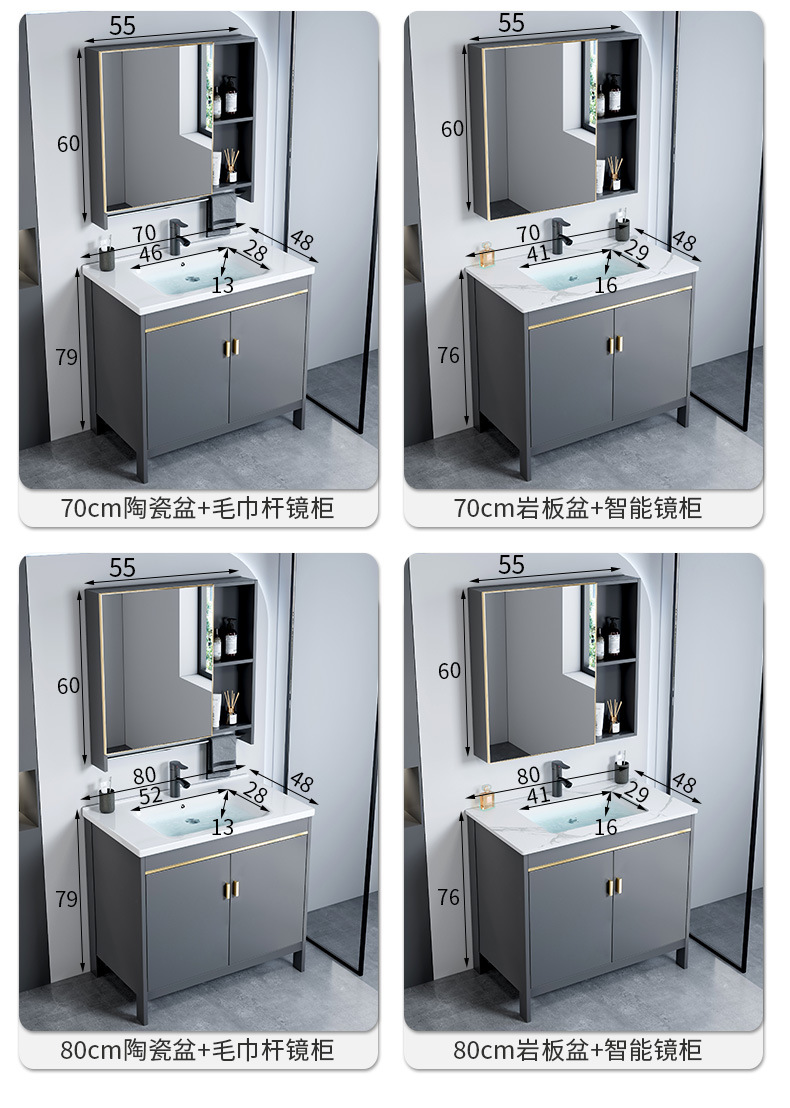 - 80 gray gold fully sealed floor towel mirror cabinet