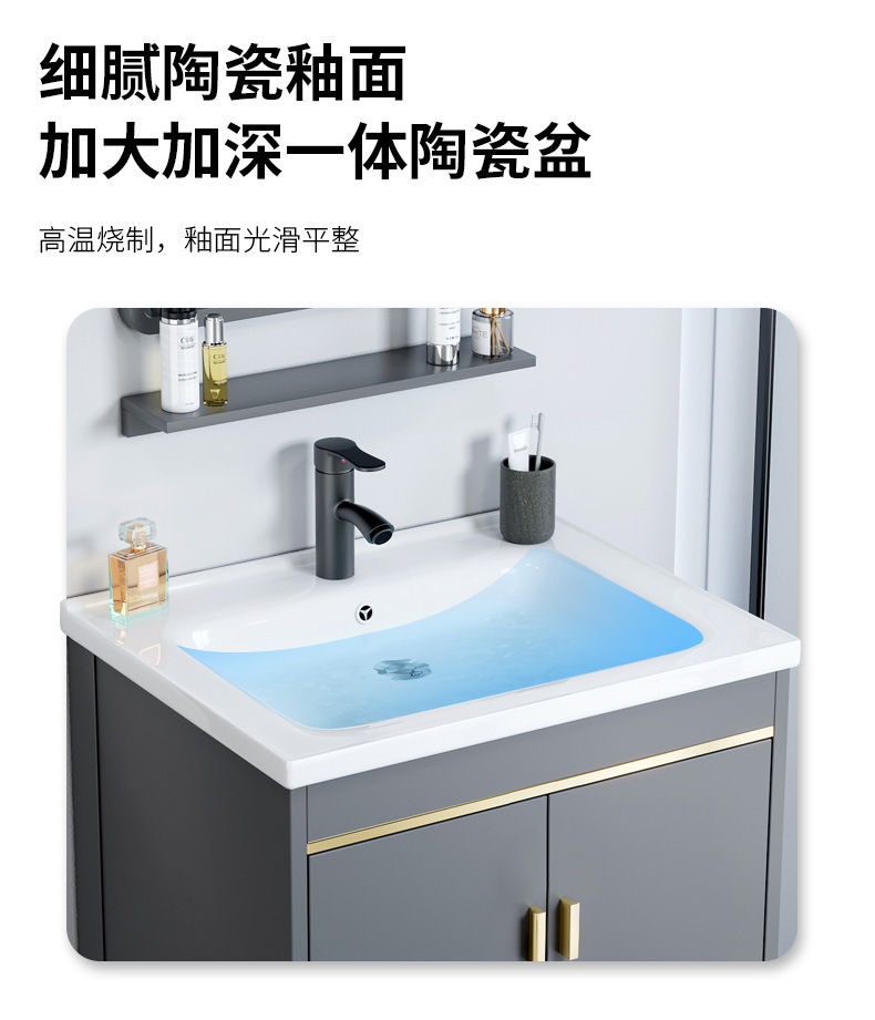 - 60 gray gold fully sealed floor towel mirror cabinet [high temperature ceramic basin]]