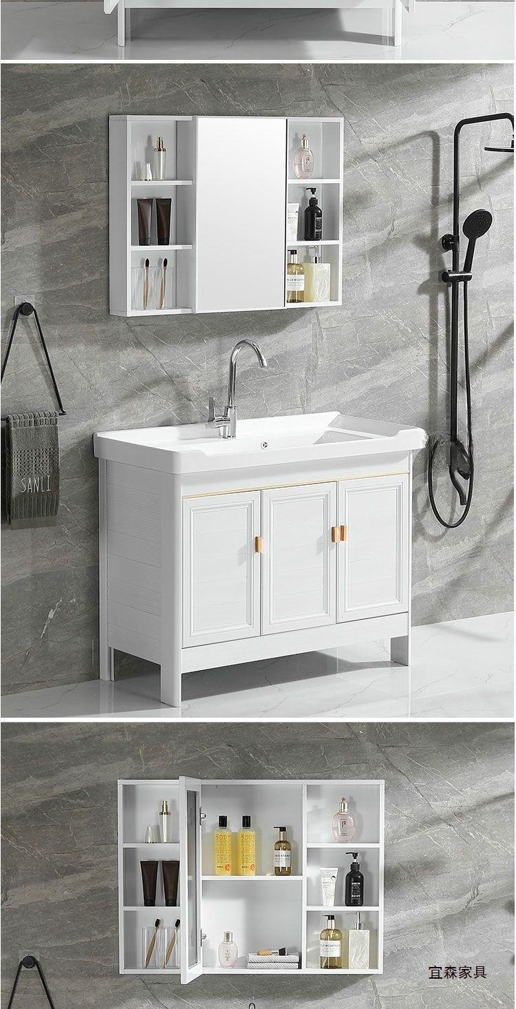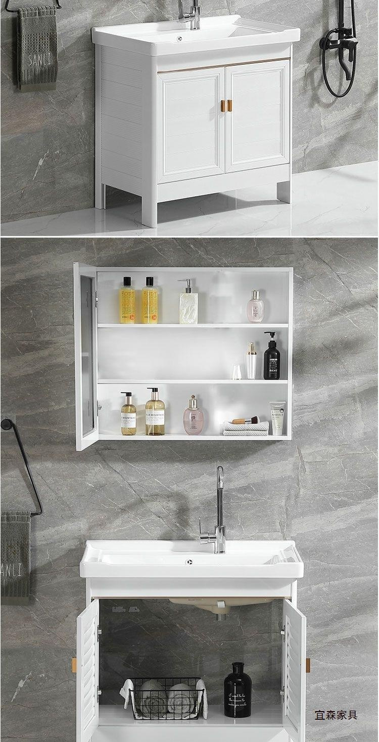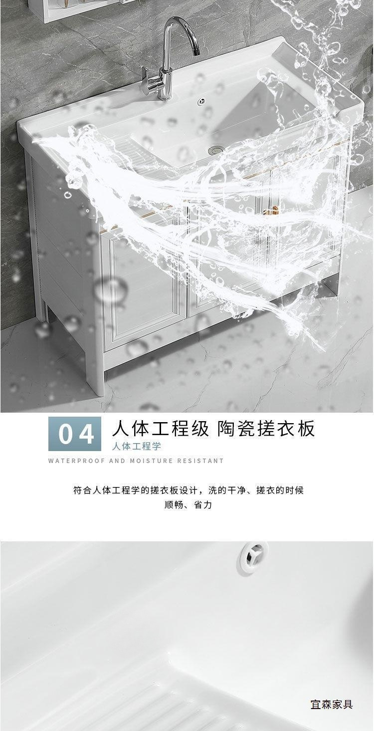 Space Aluminum White Floor Bathroom Cabinet Combination Washbasin Bathroom Balcony Ceramic Laundry Basin with Washboard Sink