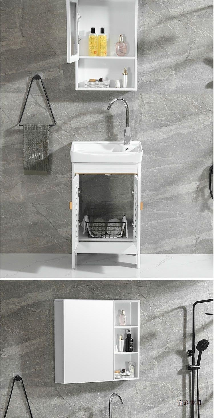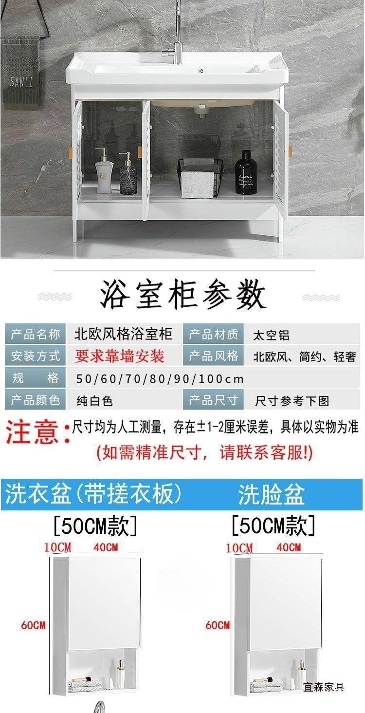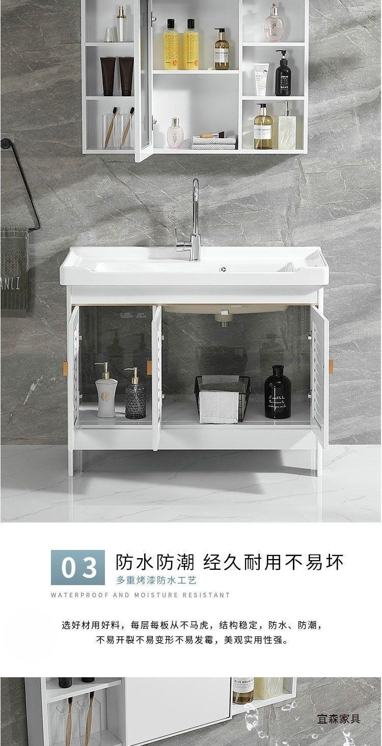 Space Aluminum White Floor Bathroom Cabinet Combination Washbasin Bathroom Balcony Ceramic Laundry Basin with Washboard Sink