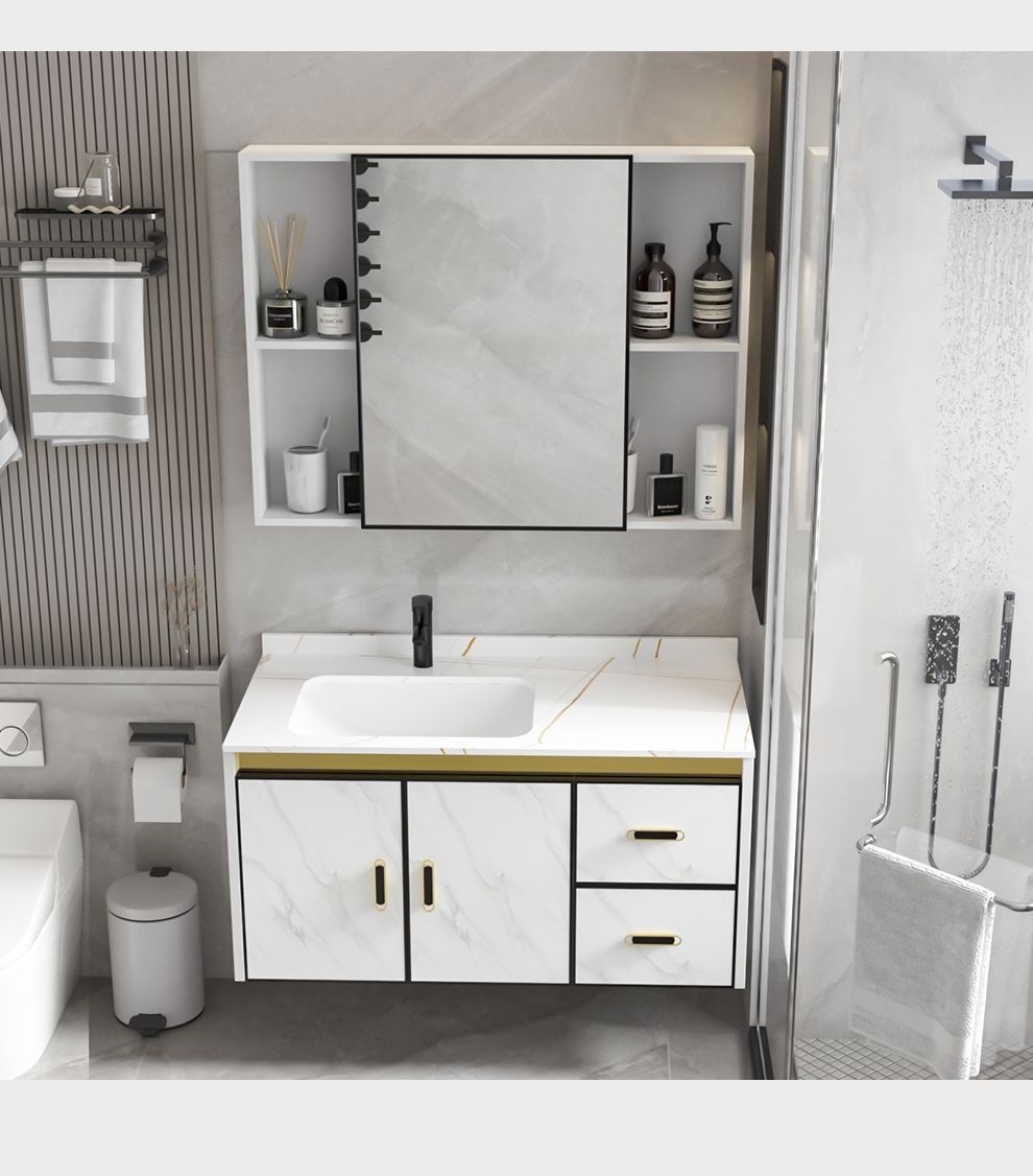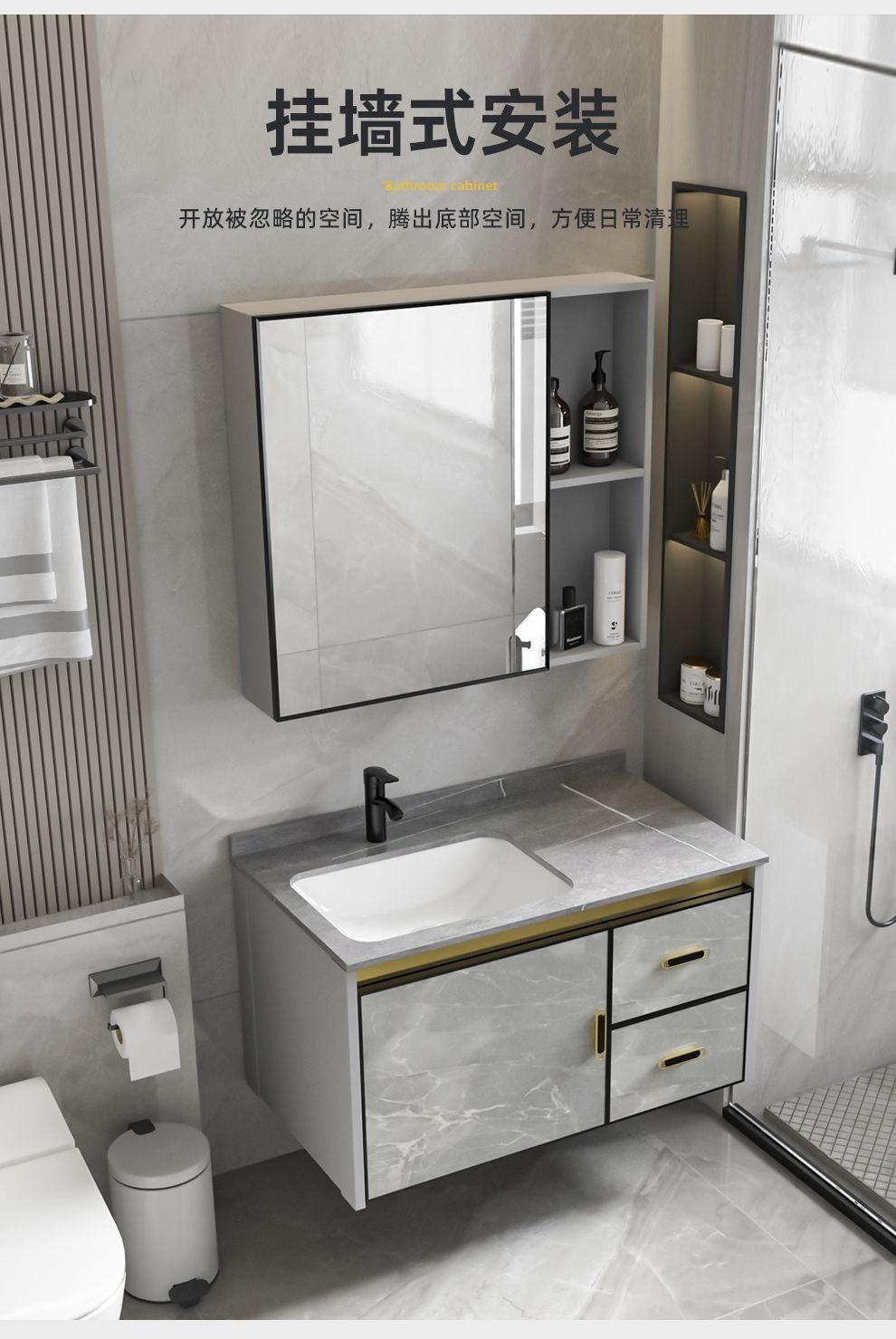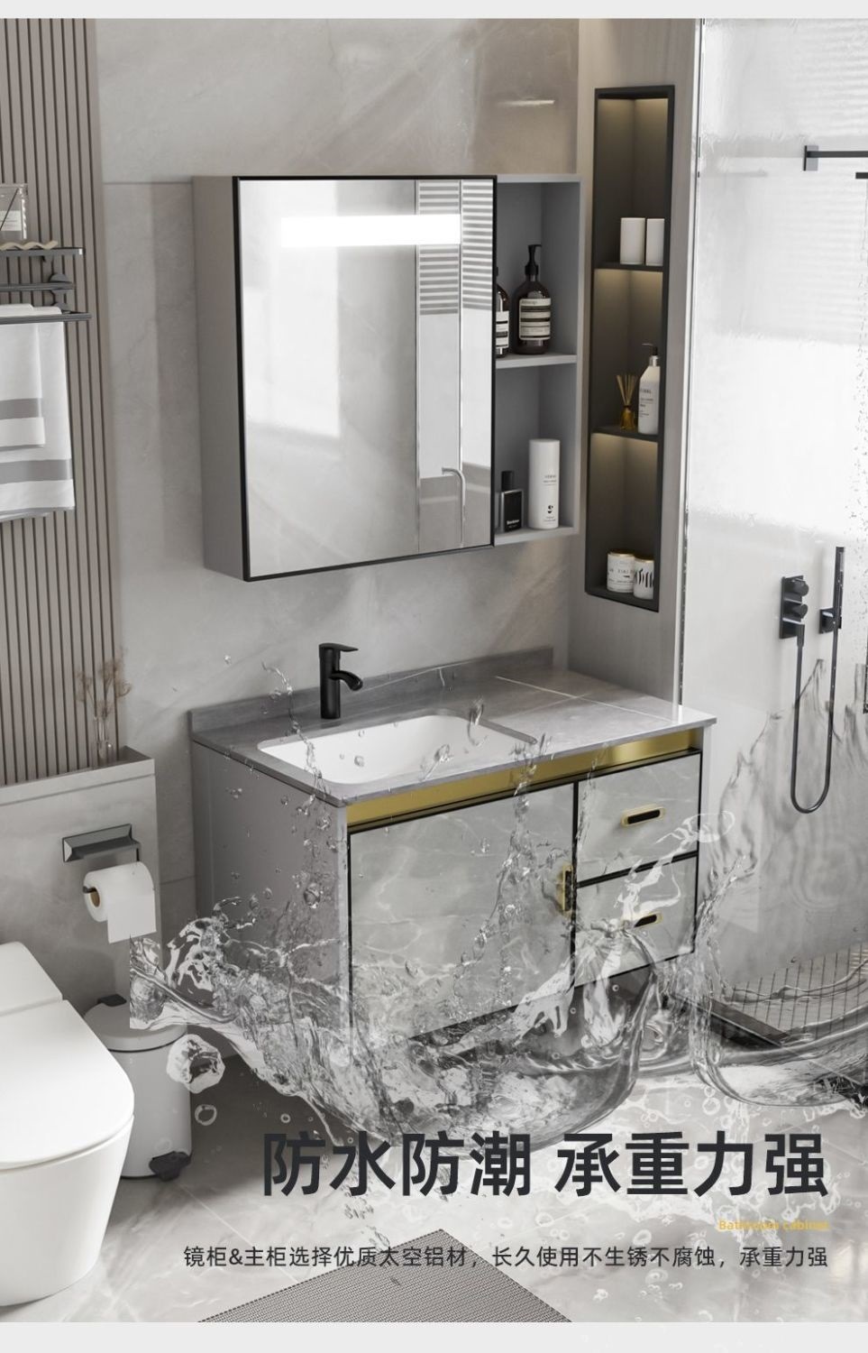 Space aluminum alloy bathroom cabinet combination modern minimalist bathroom wash basin integrated ceramic wash basin wash table