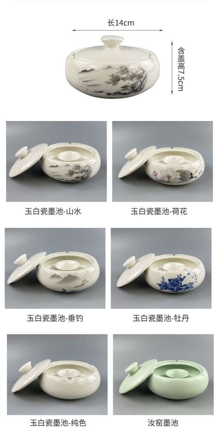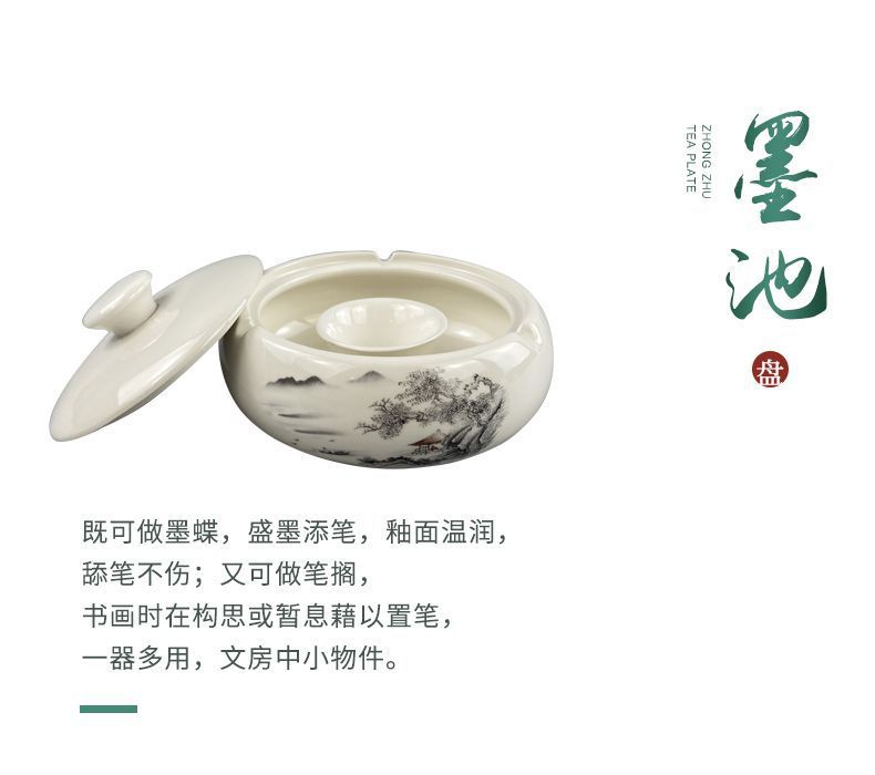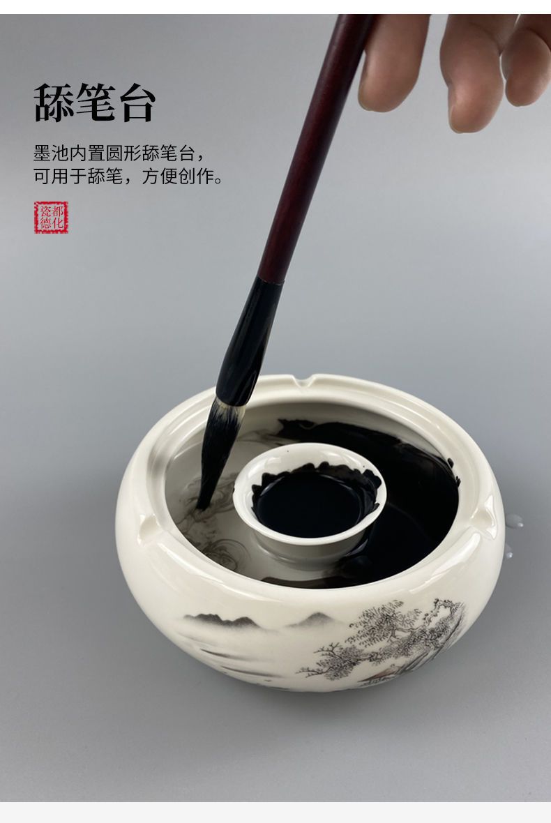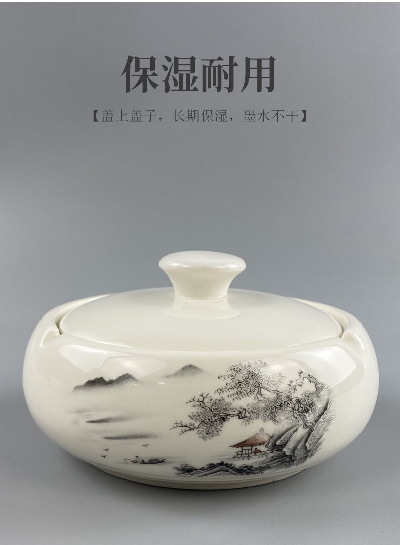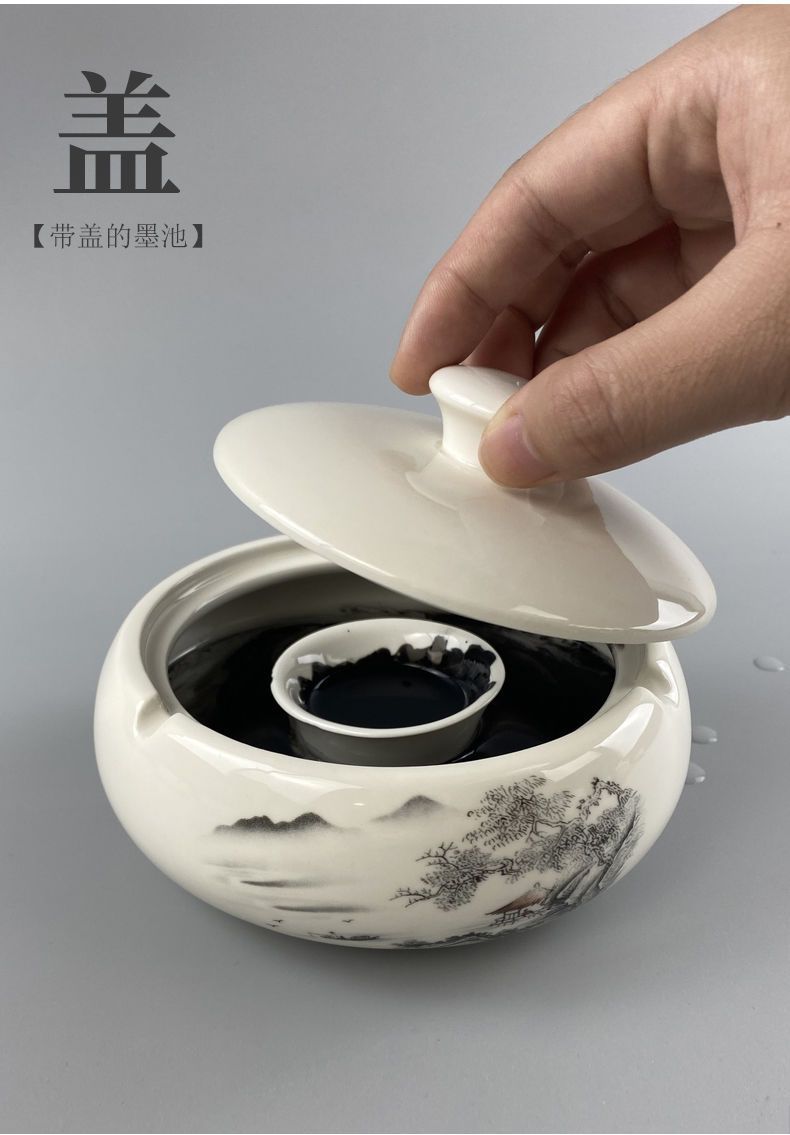 Special clearance ink pool chopsticks table with lid ceramic ink cartridge ink bowl ink plate four treasures calligraphy supplies ink water