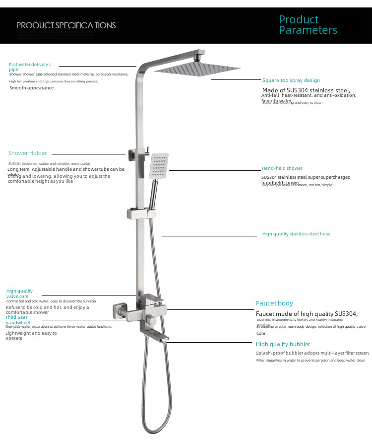 304 Stainless Steel:Crafted from high-quality 304 stainless steel, this shower set ensures durability and long-lasting performance.