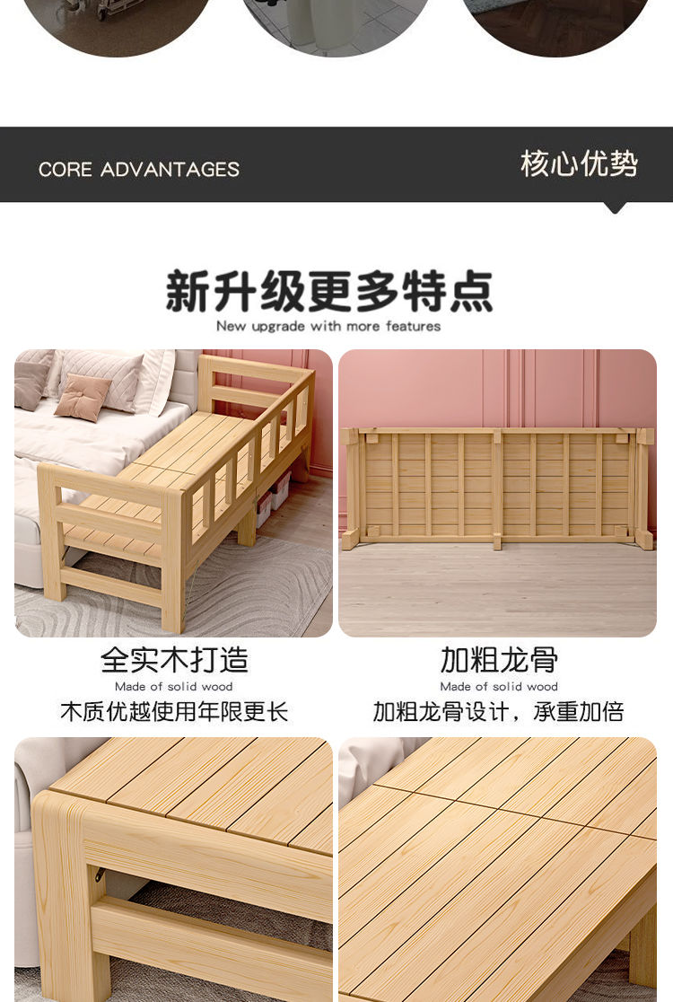 Splicing bed solid wood widened bedside bed with guardrail small bed widened splicing foldable crib children s bed
