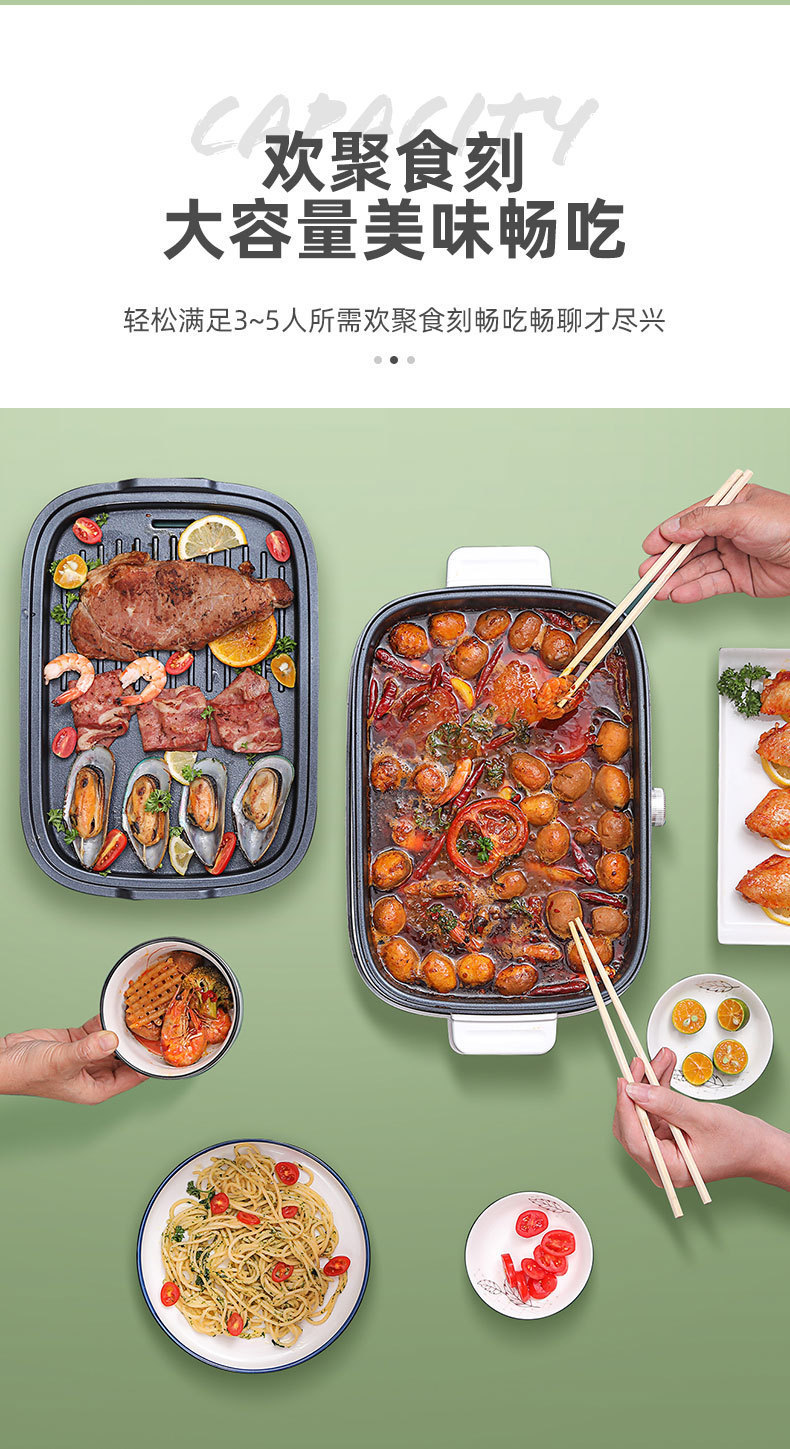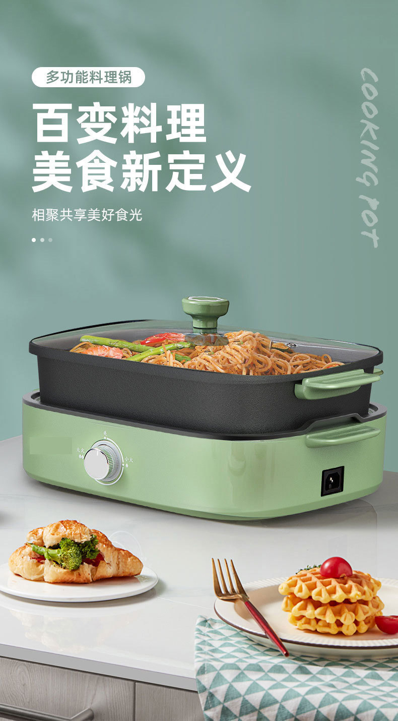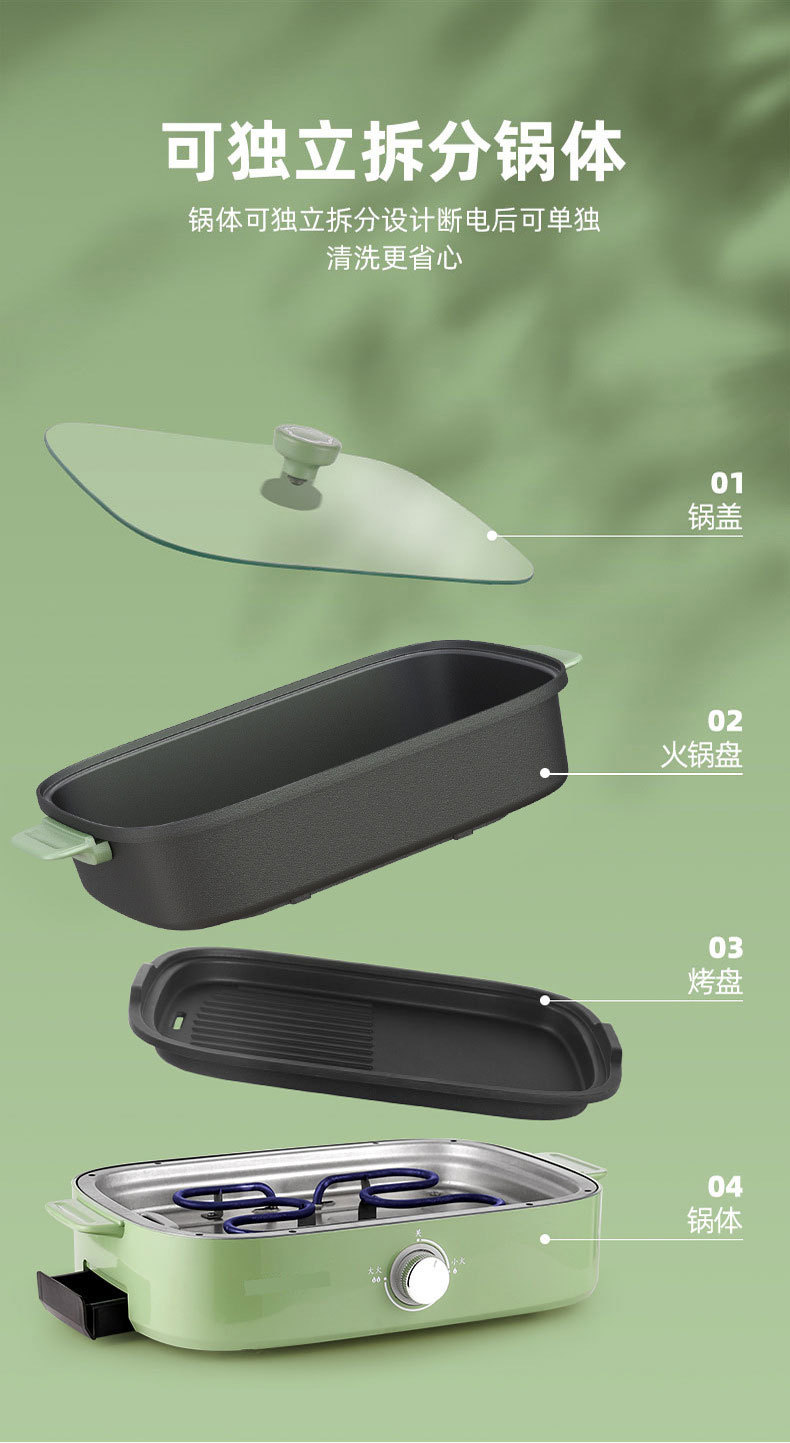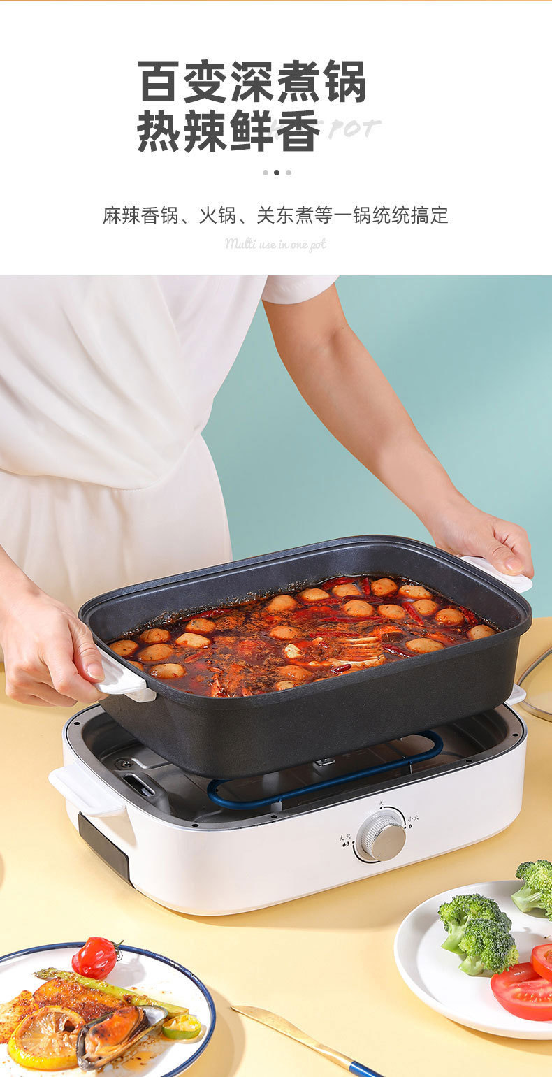 Split Removable and Washable Electric Hot Pot Electric Cooker Electric Cooking Pot Non stick Baking Pan Barbecue Frying and Baking Multi function Cooking Pot