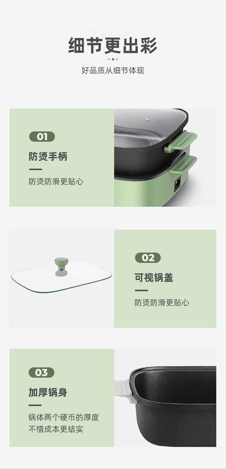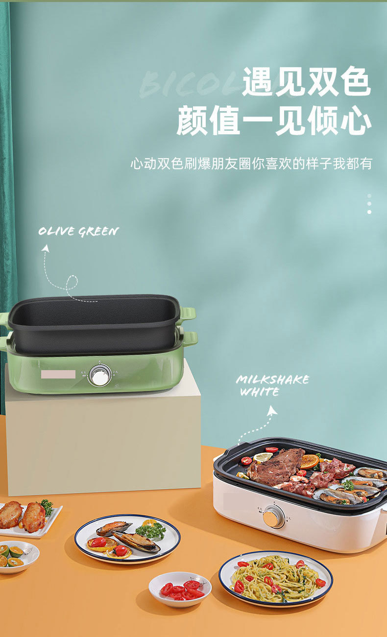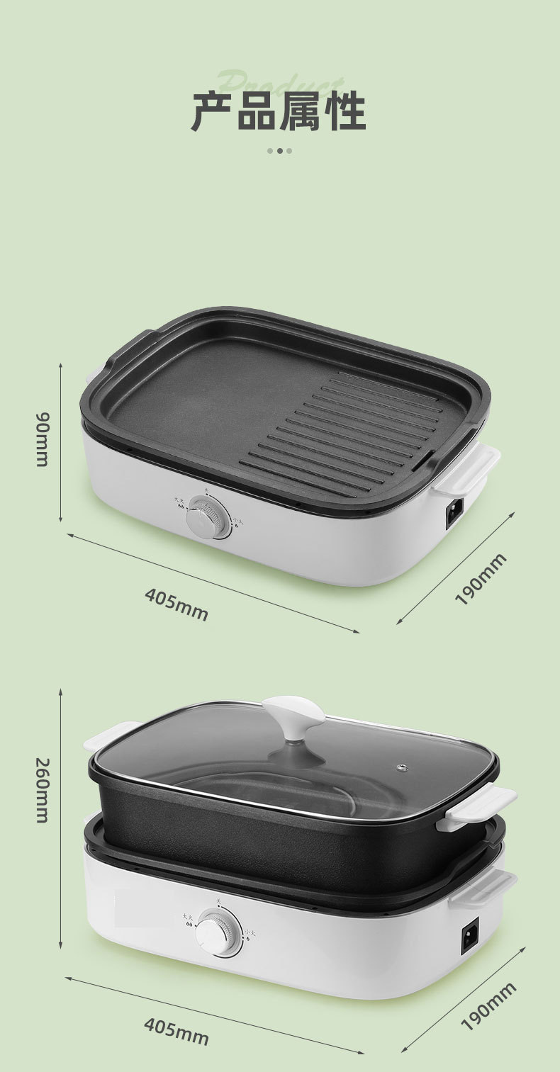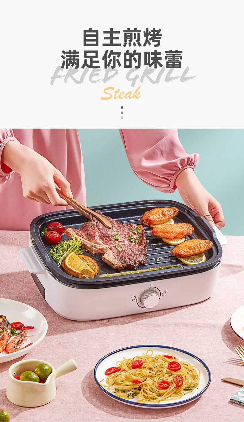 Split Removable and Washable Electric Hot Pot Electric Cooker Electric Cooking Pot Non stick Baking Pan Barbecue Frying and Baking Multi function Cooking Pot