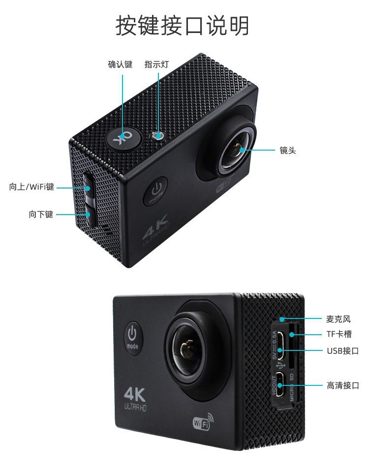 Sports camera D800 waterproof underwater diving camera sports dv camera HD 4kwifi HD waterproof