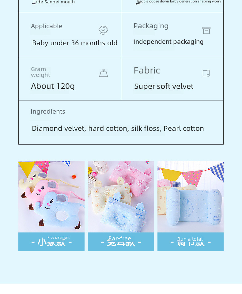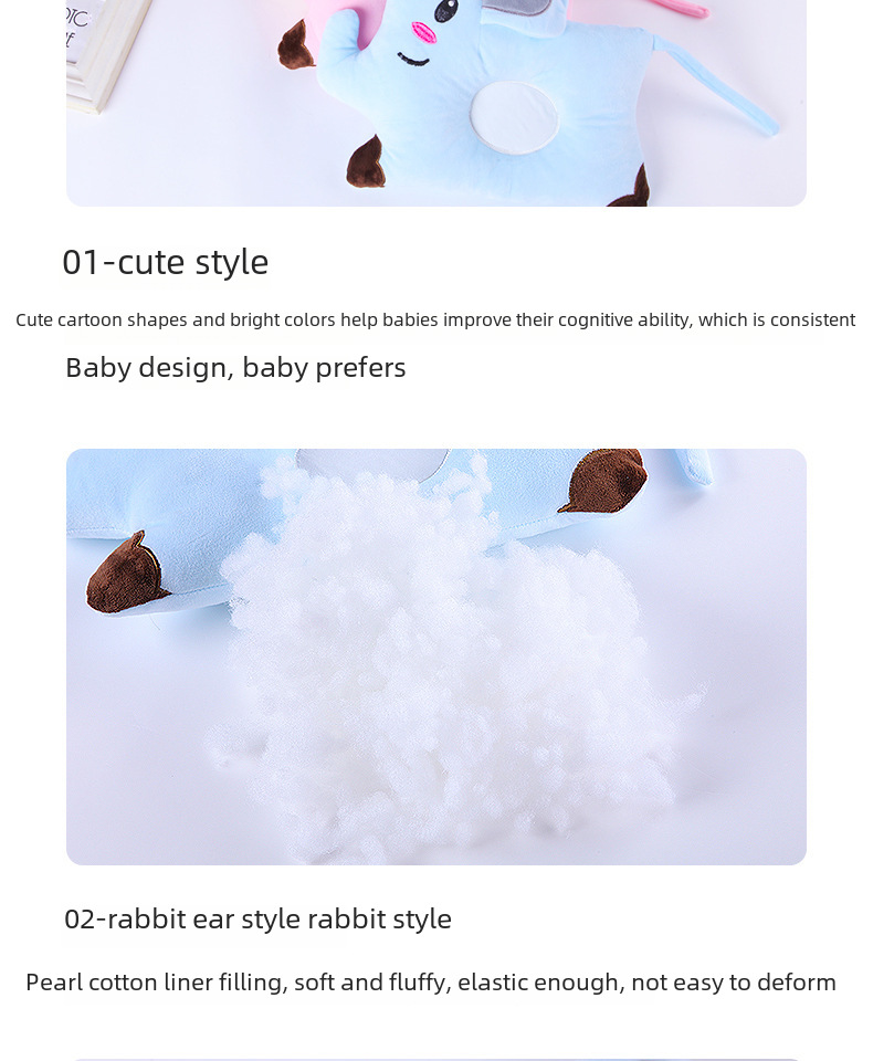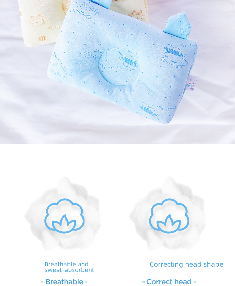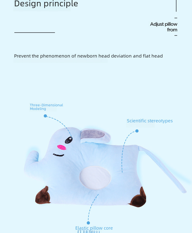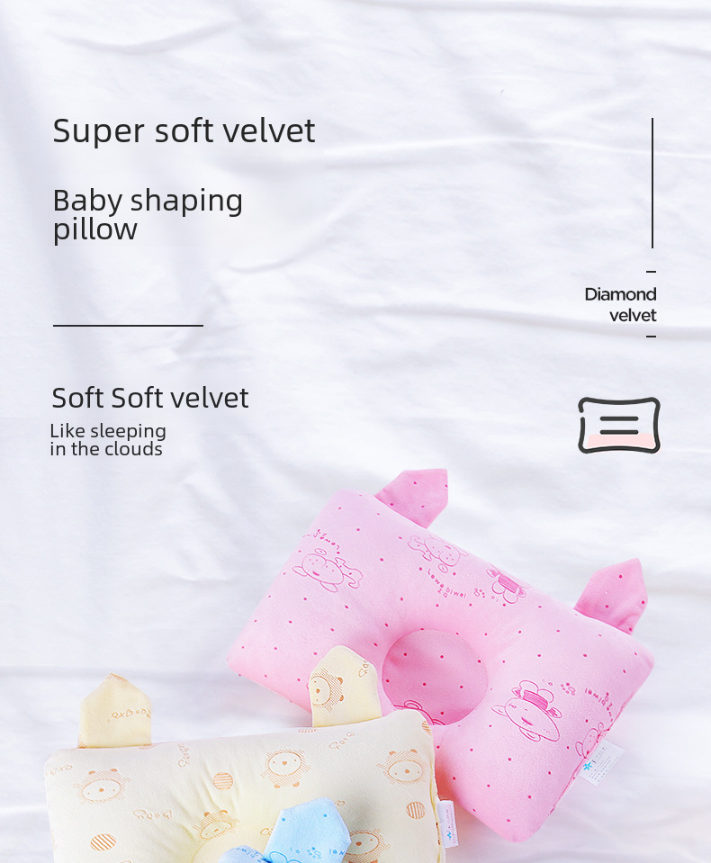 Spot baby pillow cartoon adjustable baby shaped pillow anti deflection velvet breathable newborn flat headrest