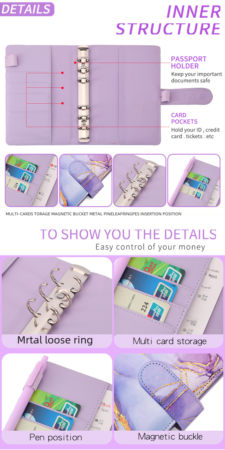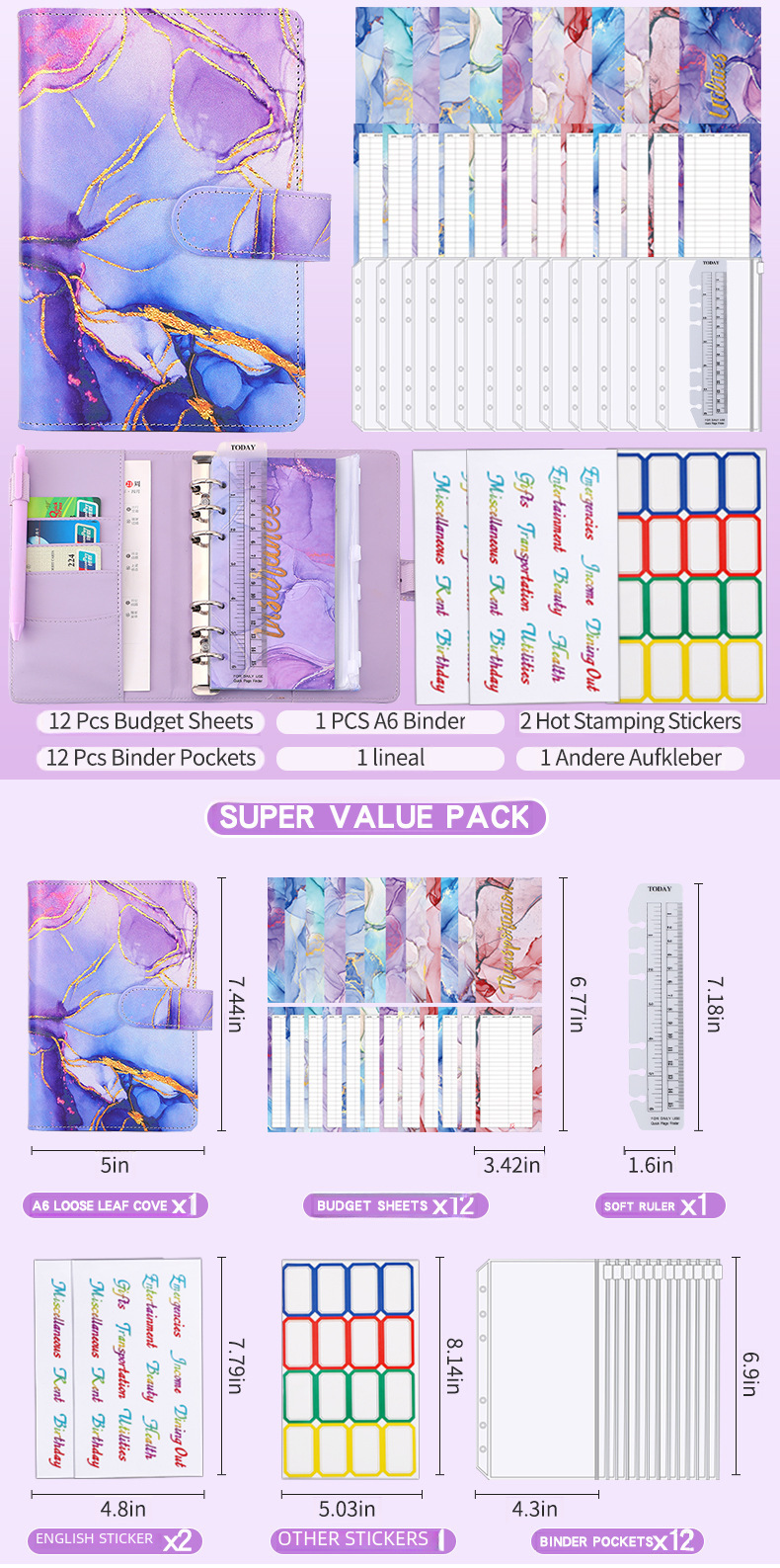 - Colored Marble/Purple (marble budget card 12 + zipper bag 12 + ruler + gradient color English 2+16 color sticker 1)