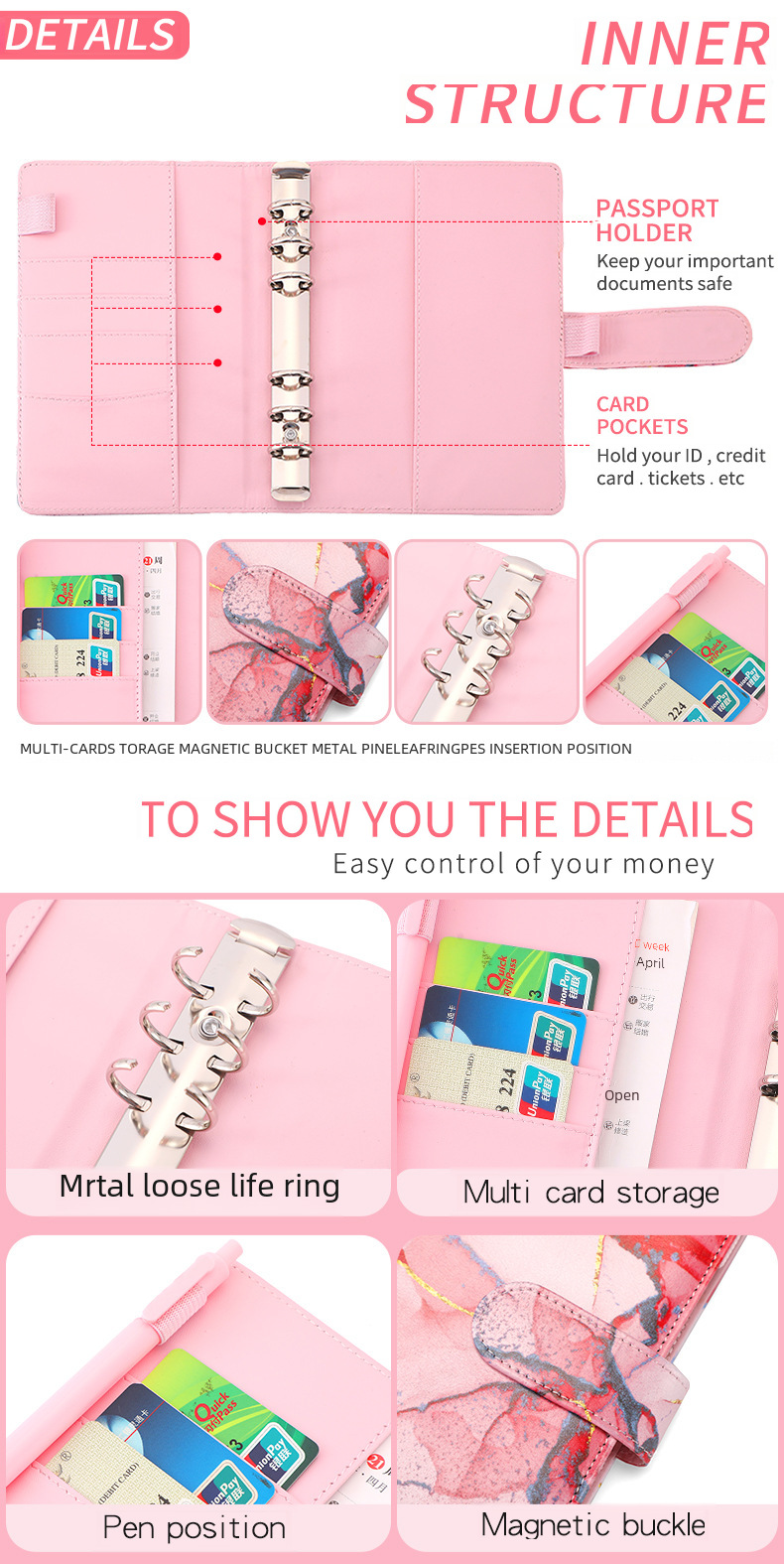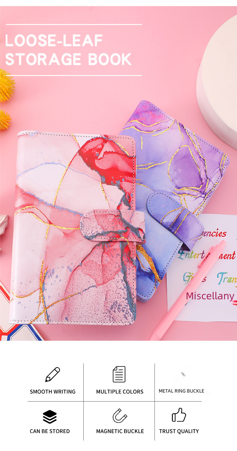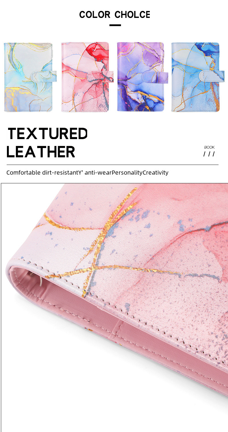 Spot cross border A6 binder hand book marble pattern notebook leather PU6 hole binder cash budget