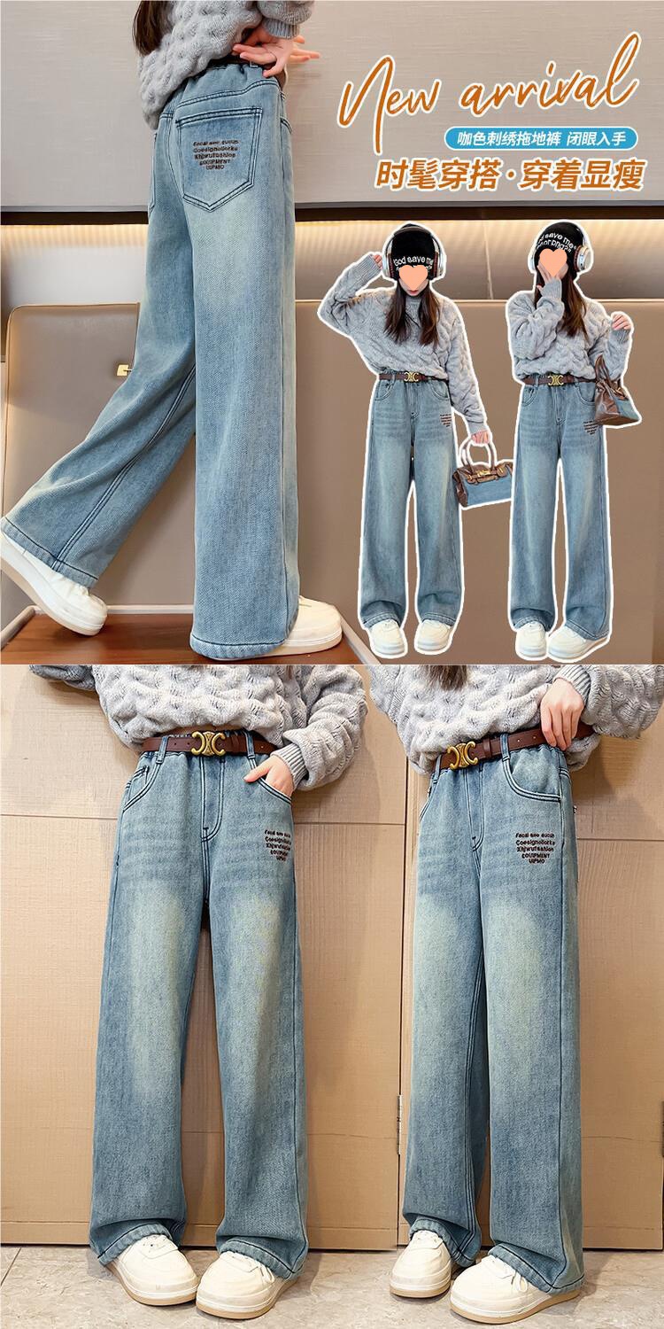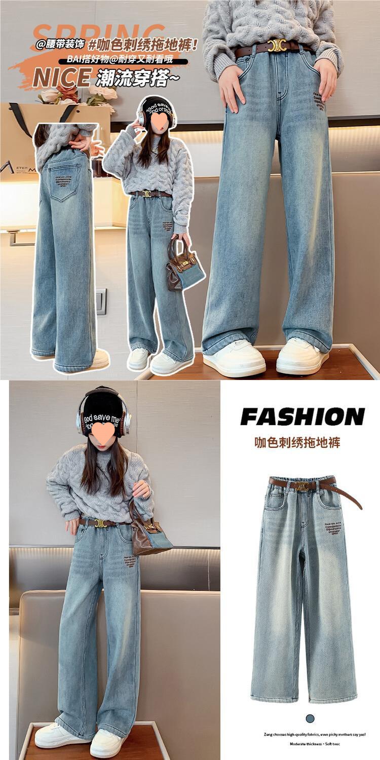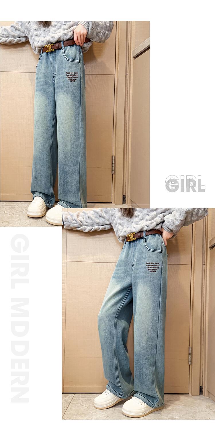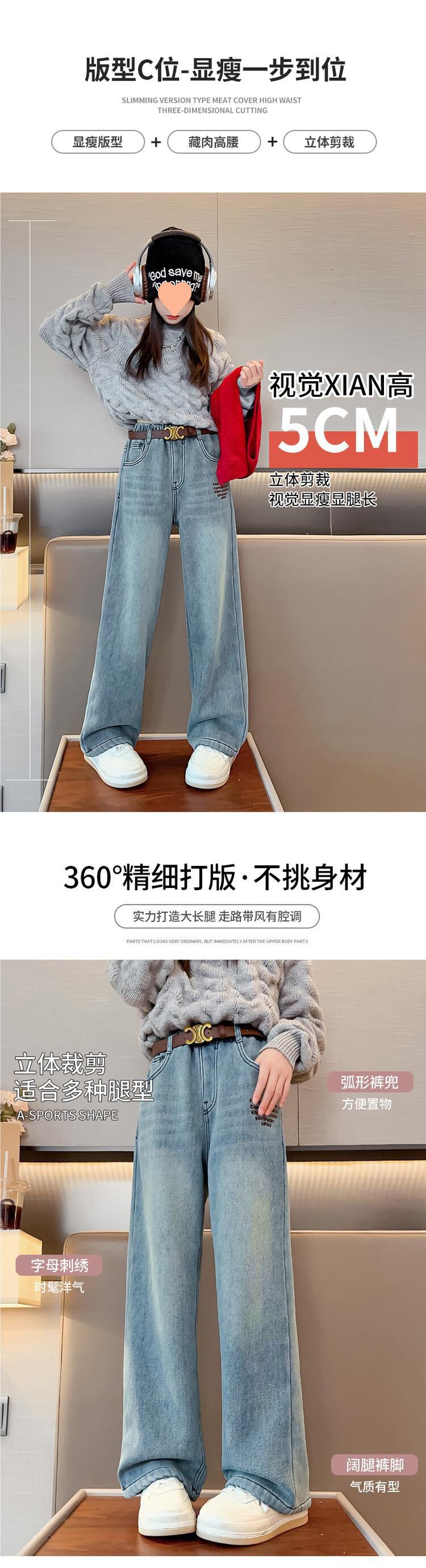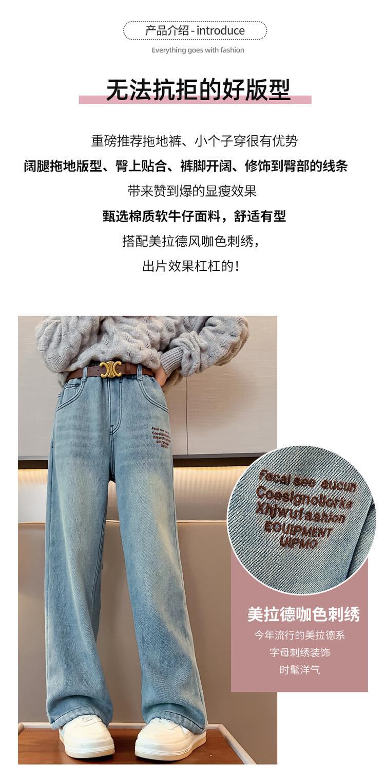 Spring 2024 New Girls Junior High School Fashionable Girls Big Kids Loose Straight Spring and Autumn Wide Leg Jeans Girls Pants