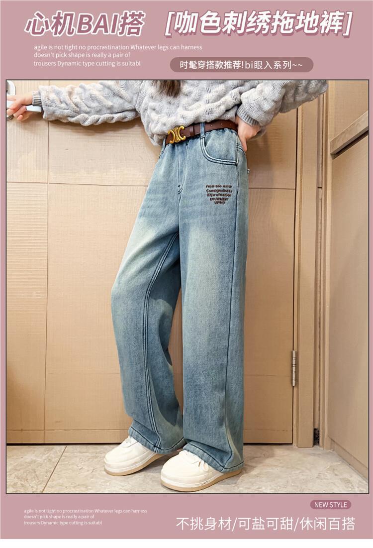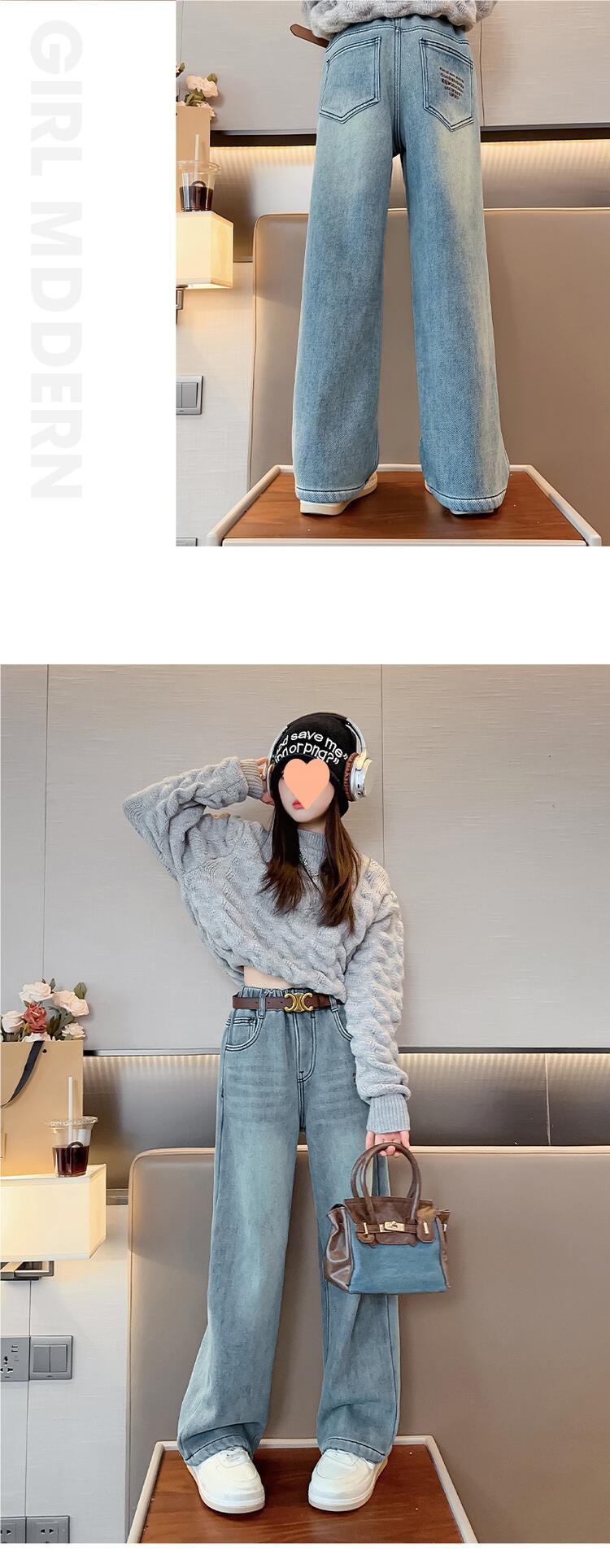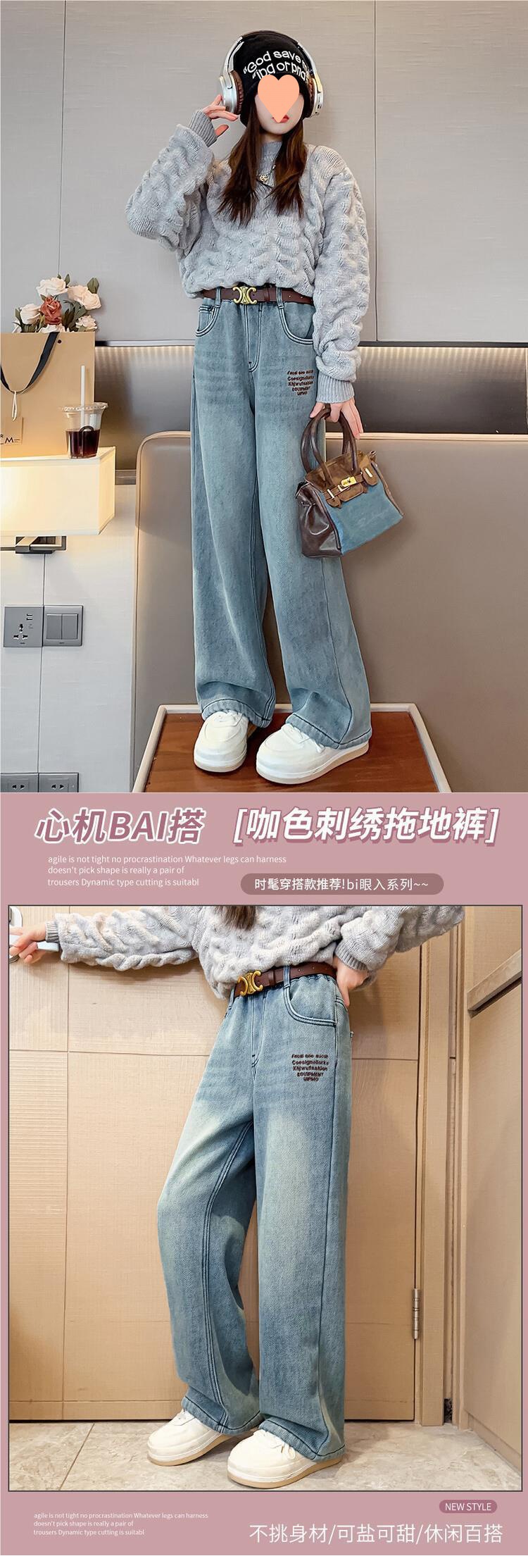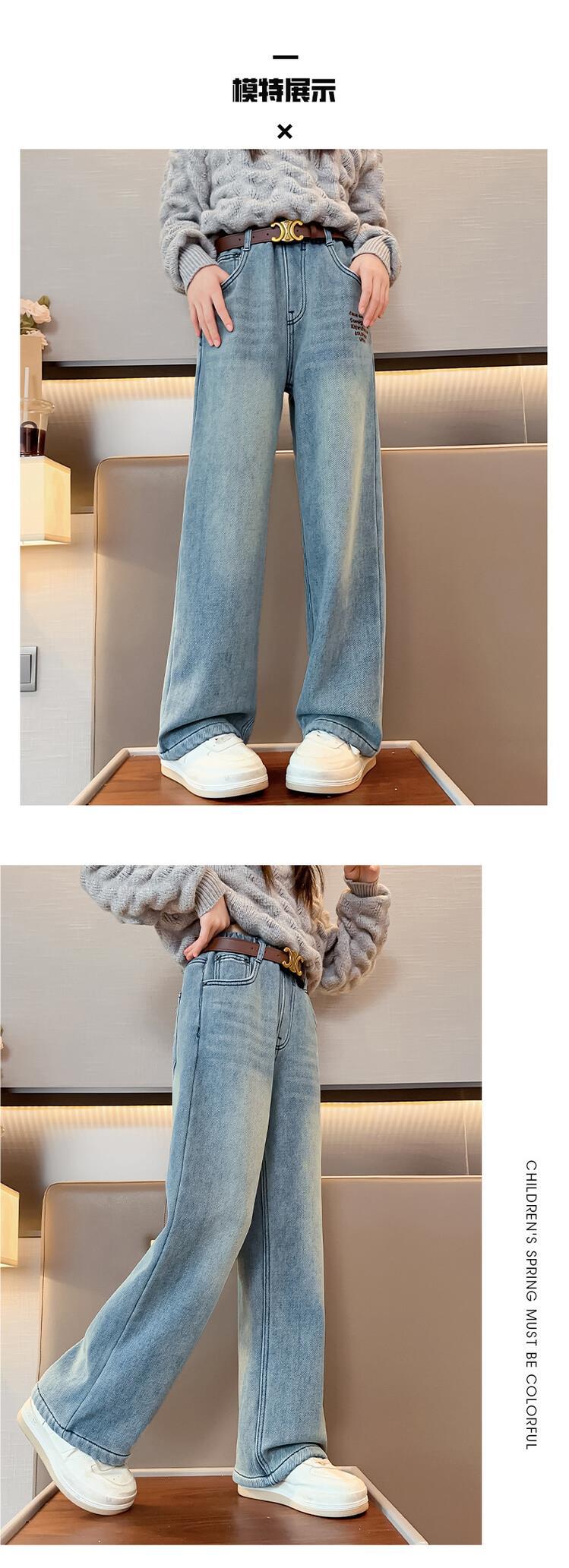 Spring 2024 New Girls Junior High School Fashionable Girls Big Kids Loose Straight Spring and Autumn Wide Leg Jeans Girls Pants