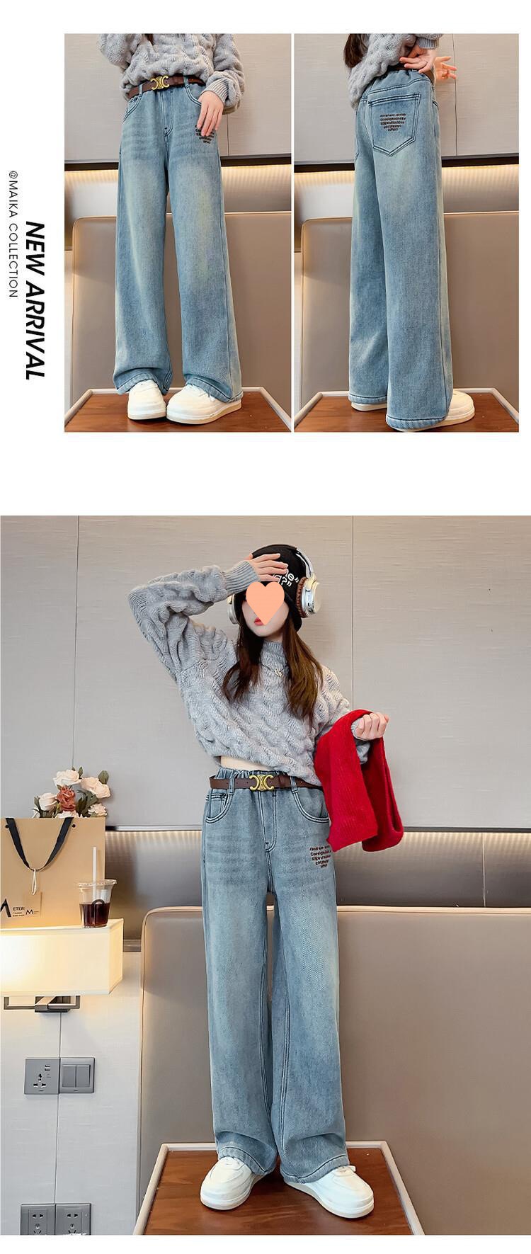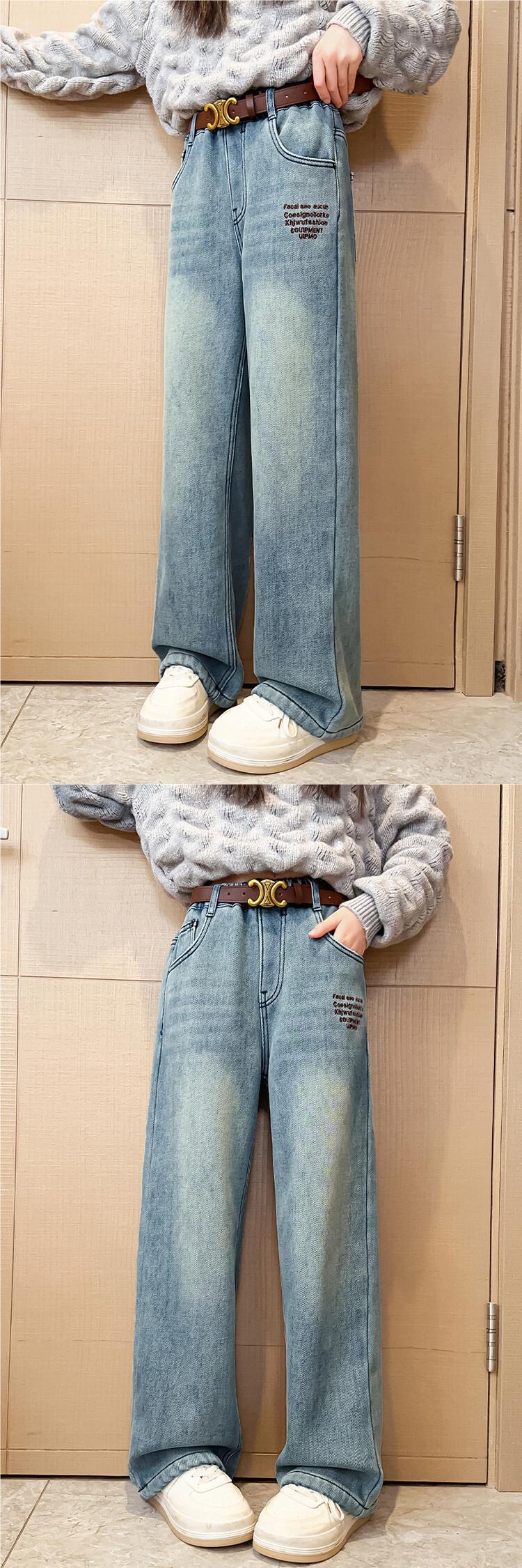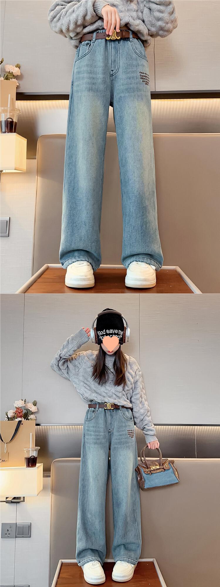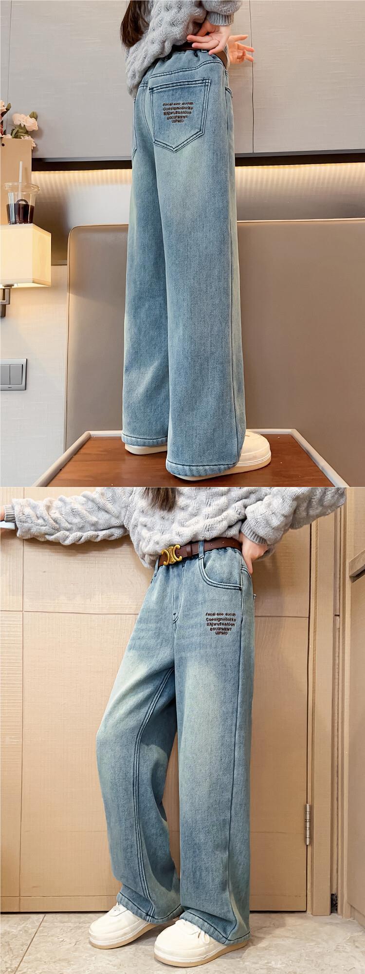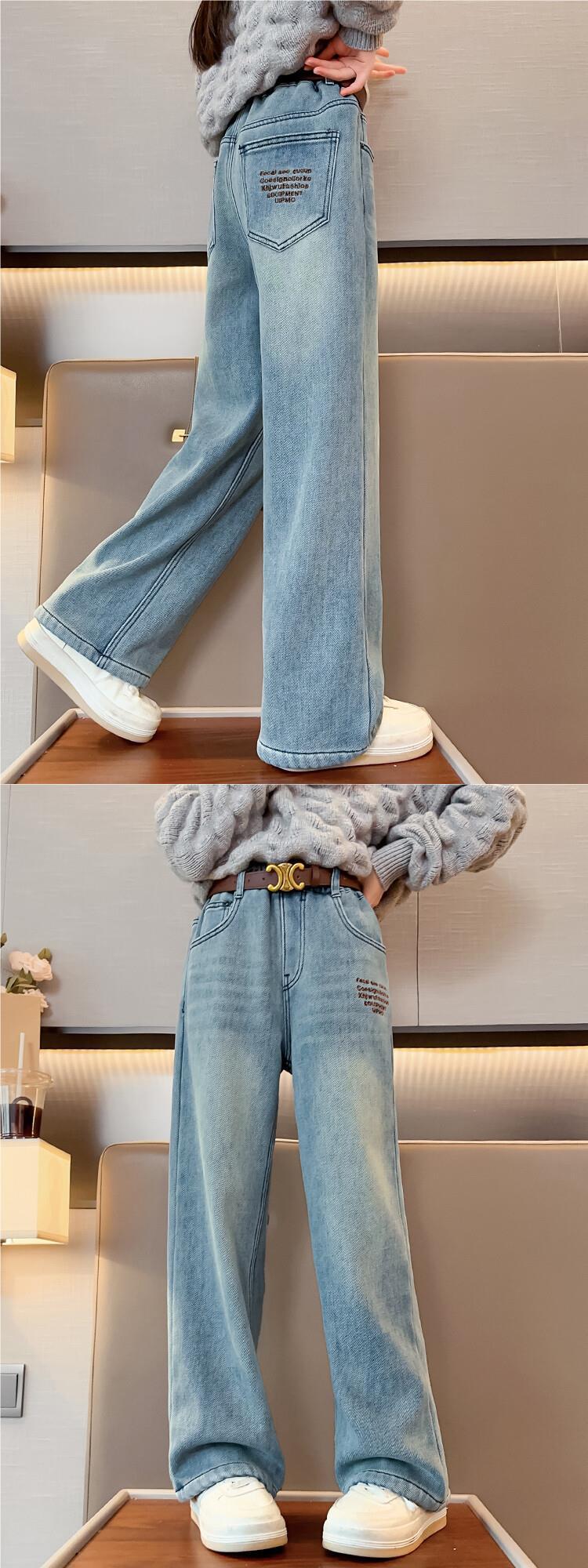 Spring 2024 New Girls Junior High School Fashionable Girls Big Kids Loose Straight Spring and Autumn Wide Leg Jeans Girls Pants