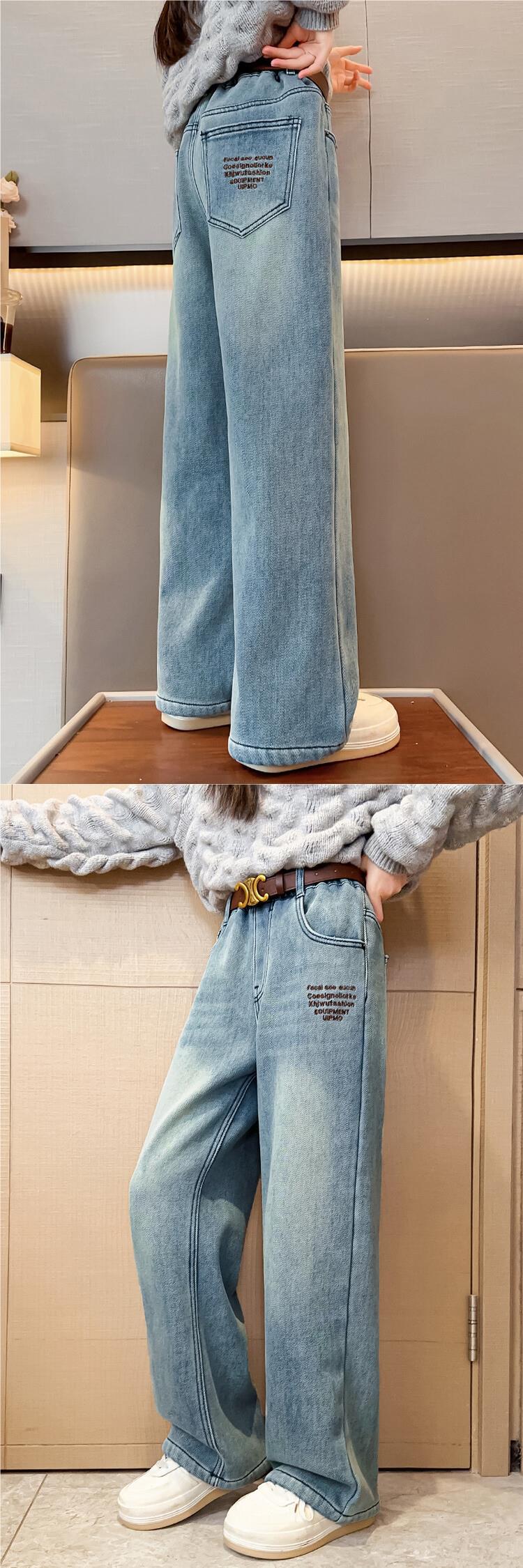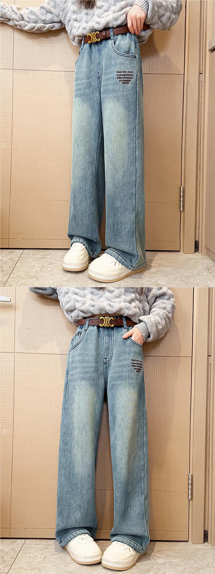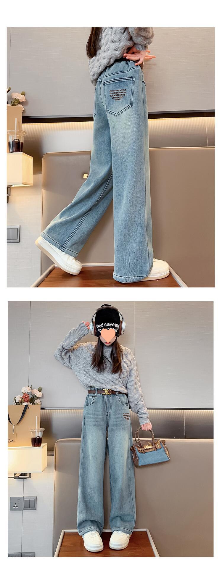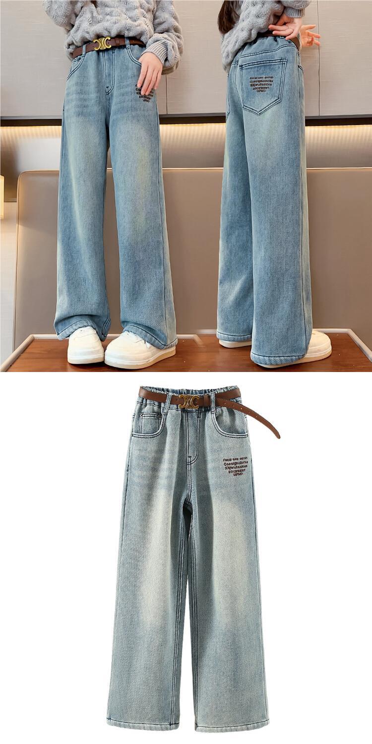 Spring 2024 New Girls Junior High School Fashionable Girls Big Kids Loose Straight Spring and Autumn Wide Leg Jeans Girls Pants