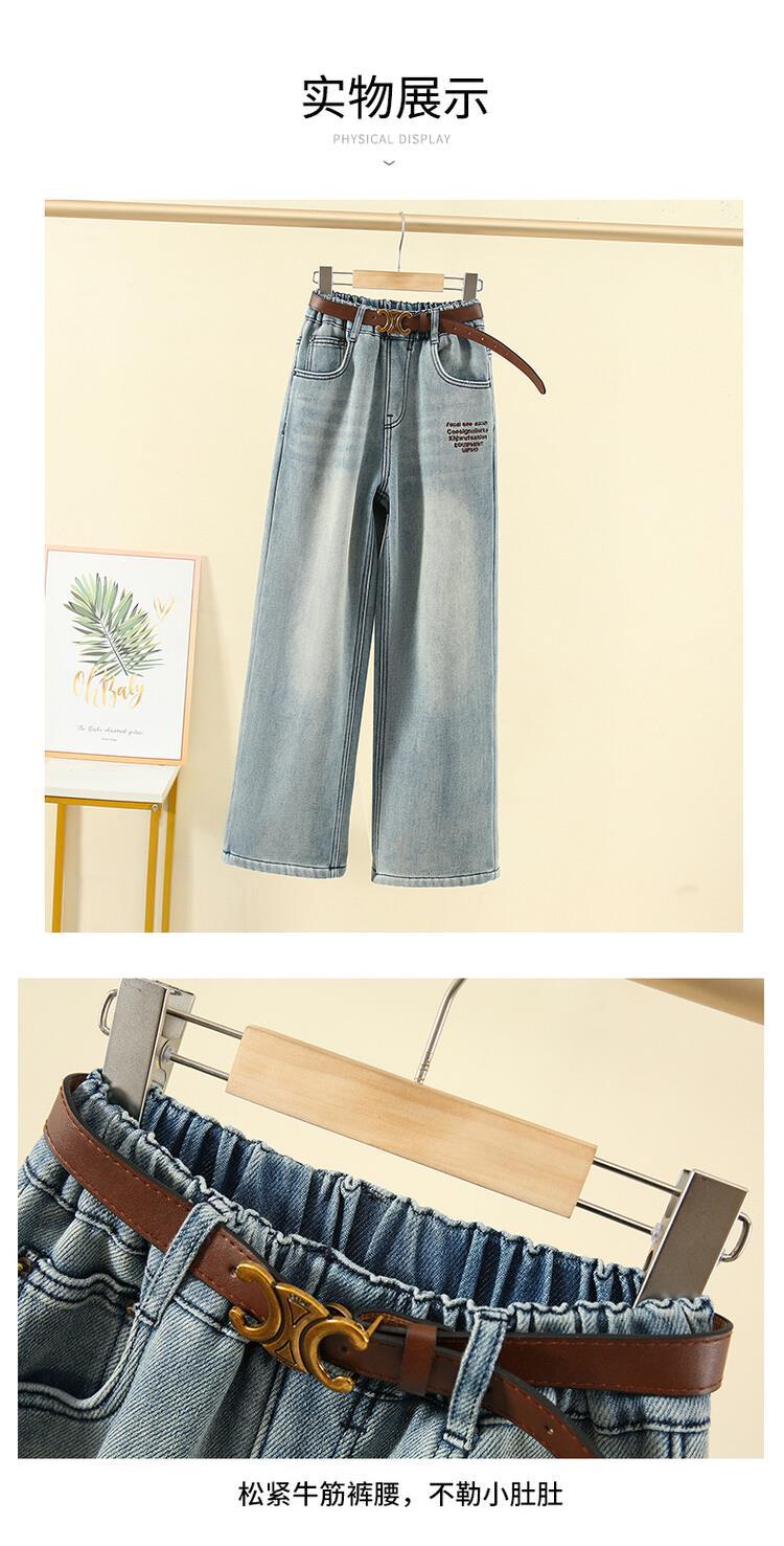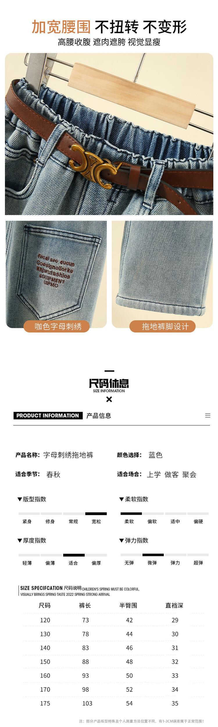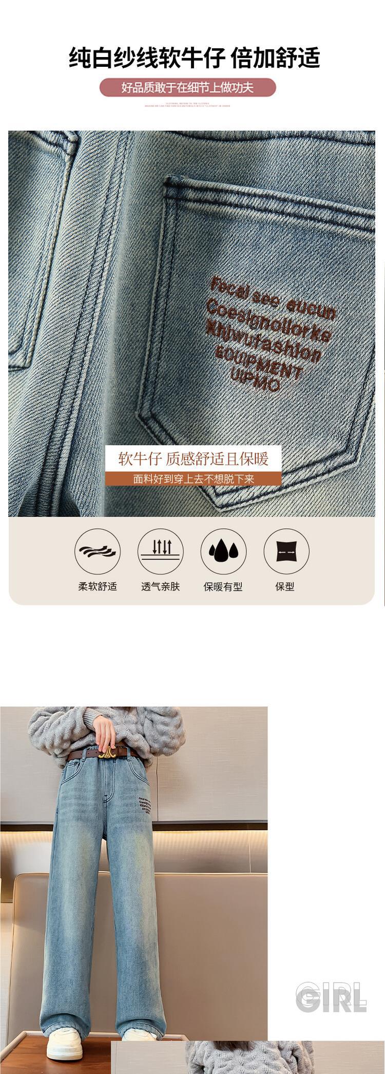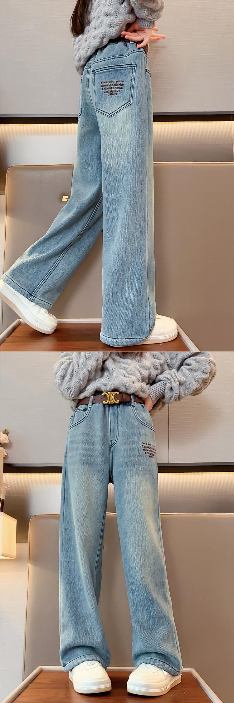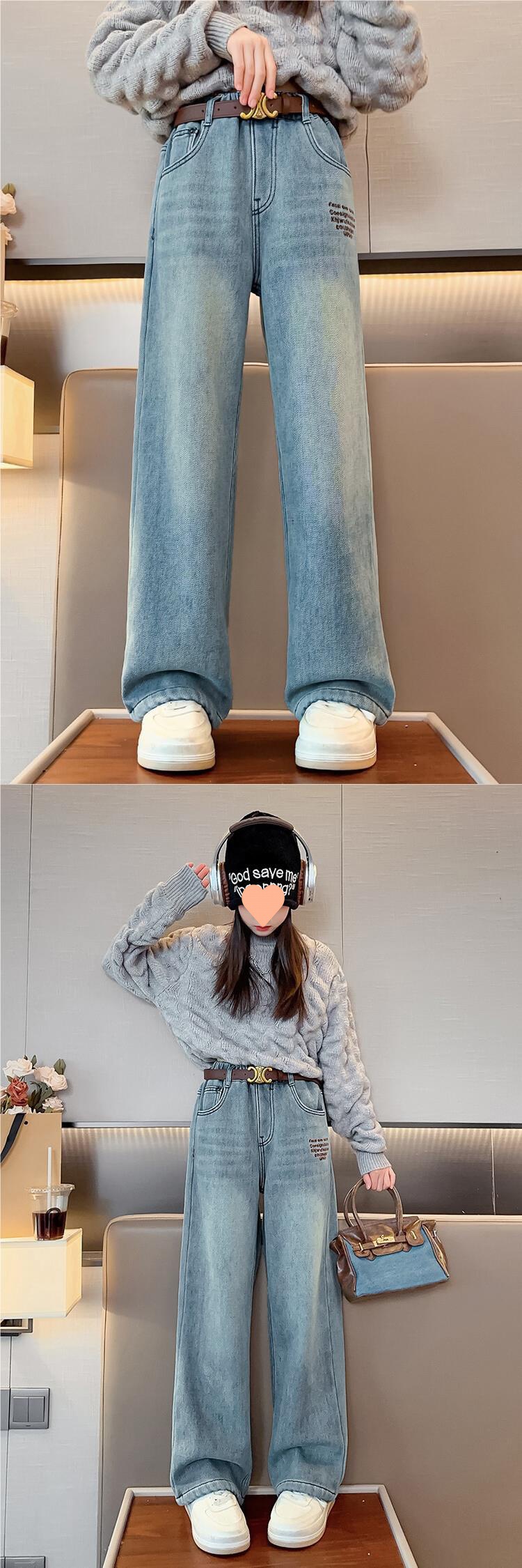 Spring 2024 New Girls Junior High School Fashionable Girls Big Kids Loose Straight Spring and Autumn Wide Leg Jeans Girls Pants
