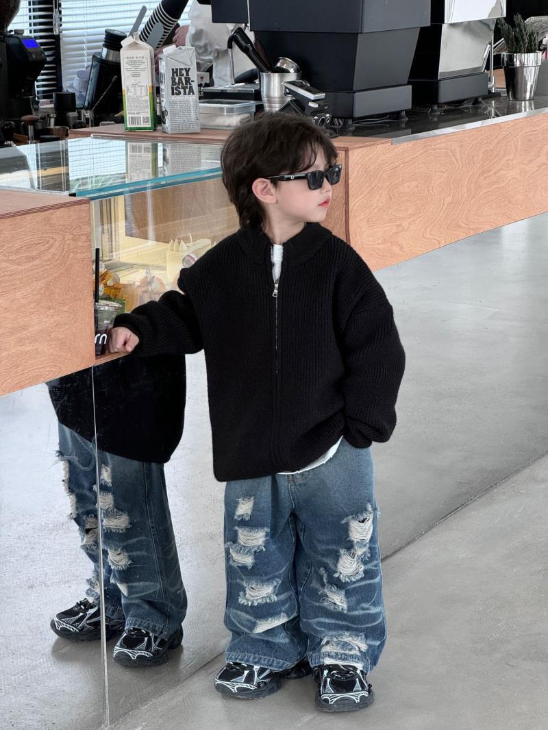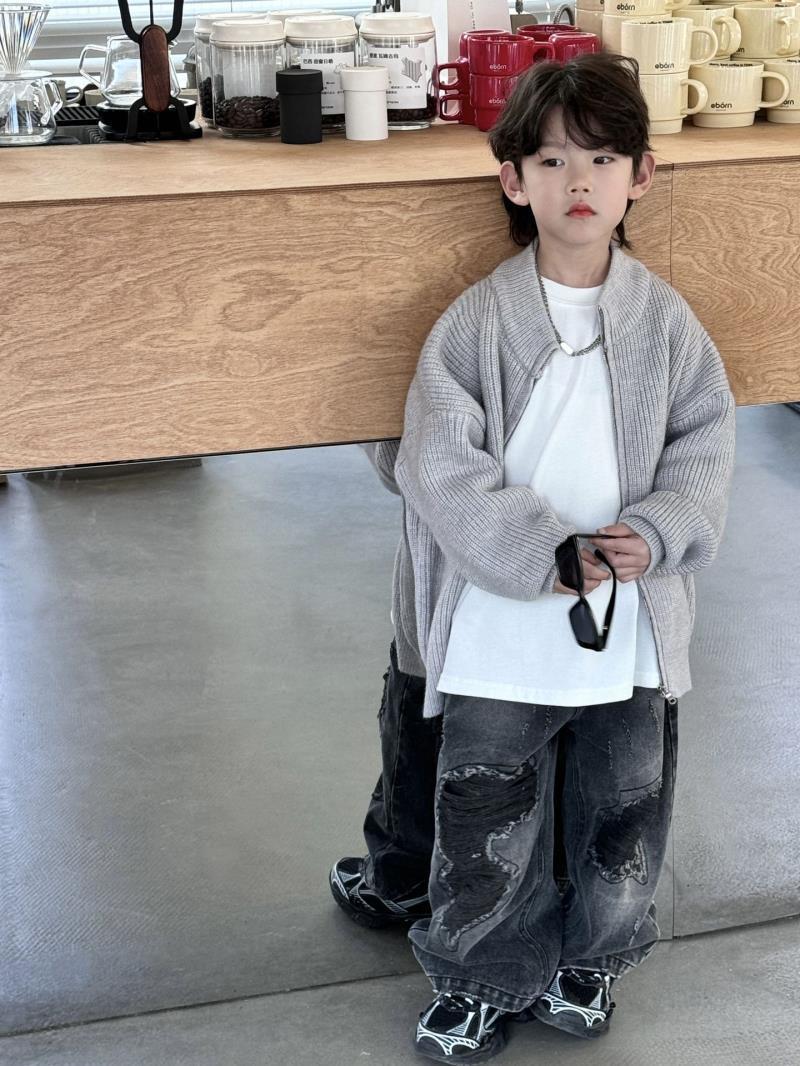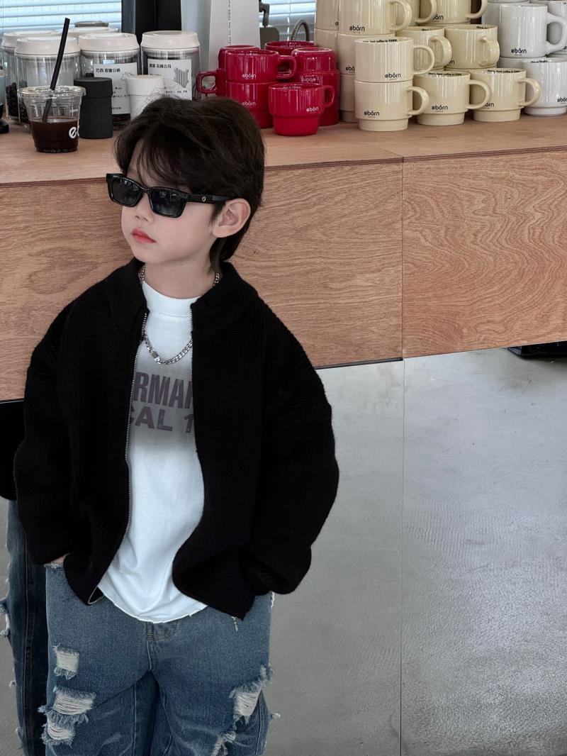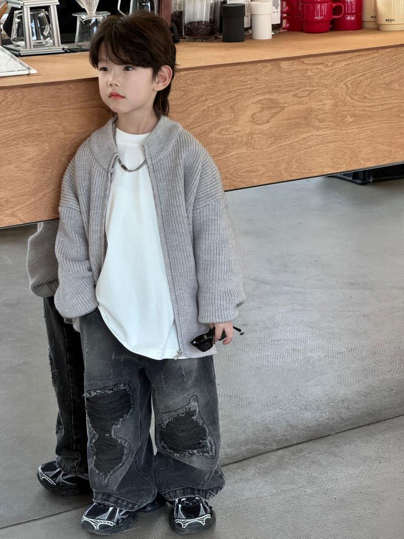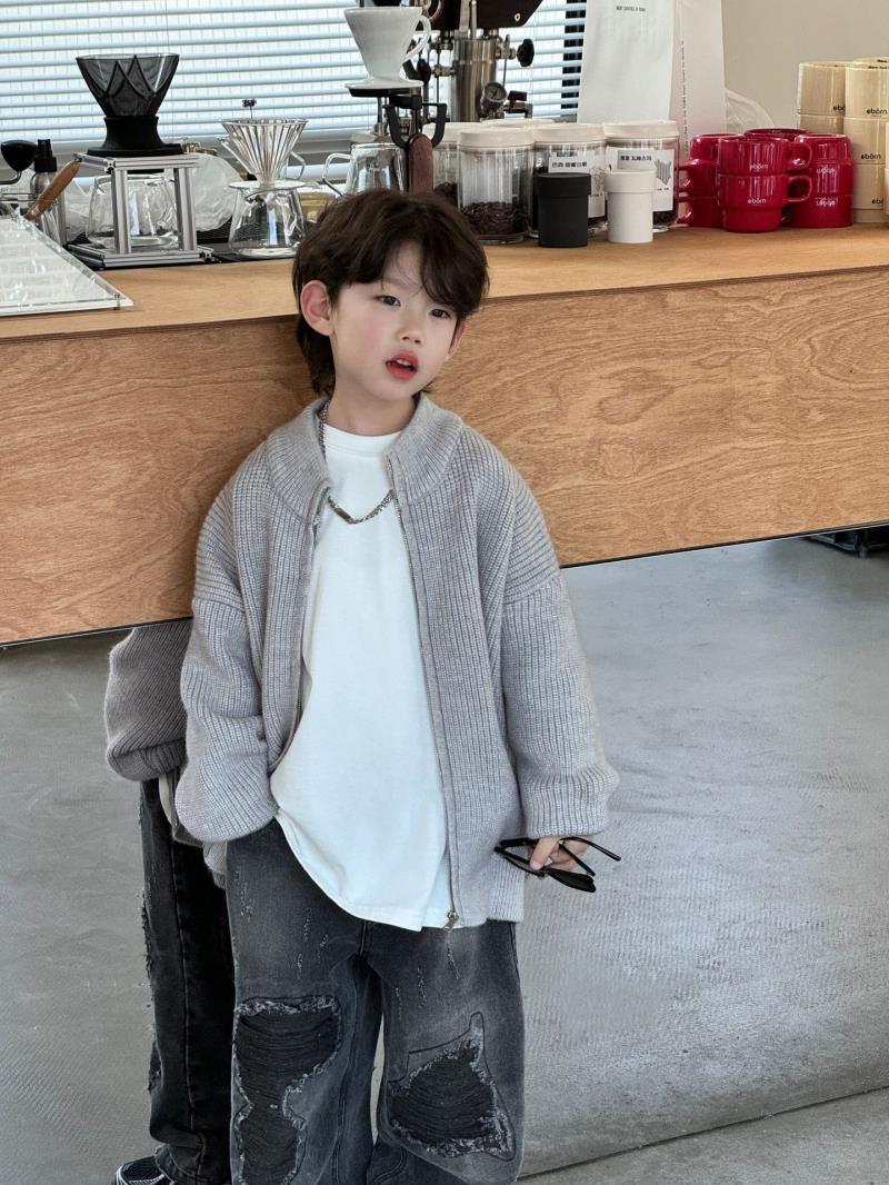 Spring 2024 New Korean Style Boys All match Knitted Solid Color Cardigan Trendy Sweater Children s Top