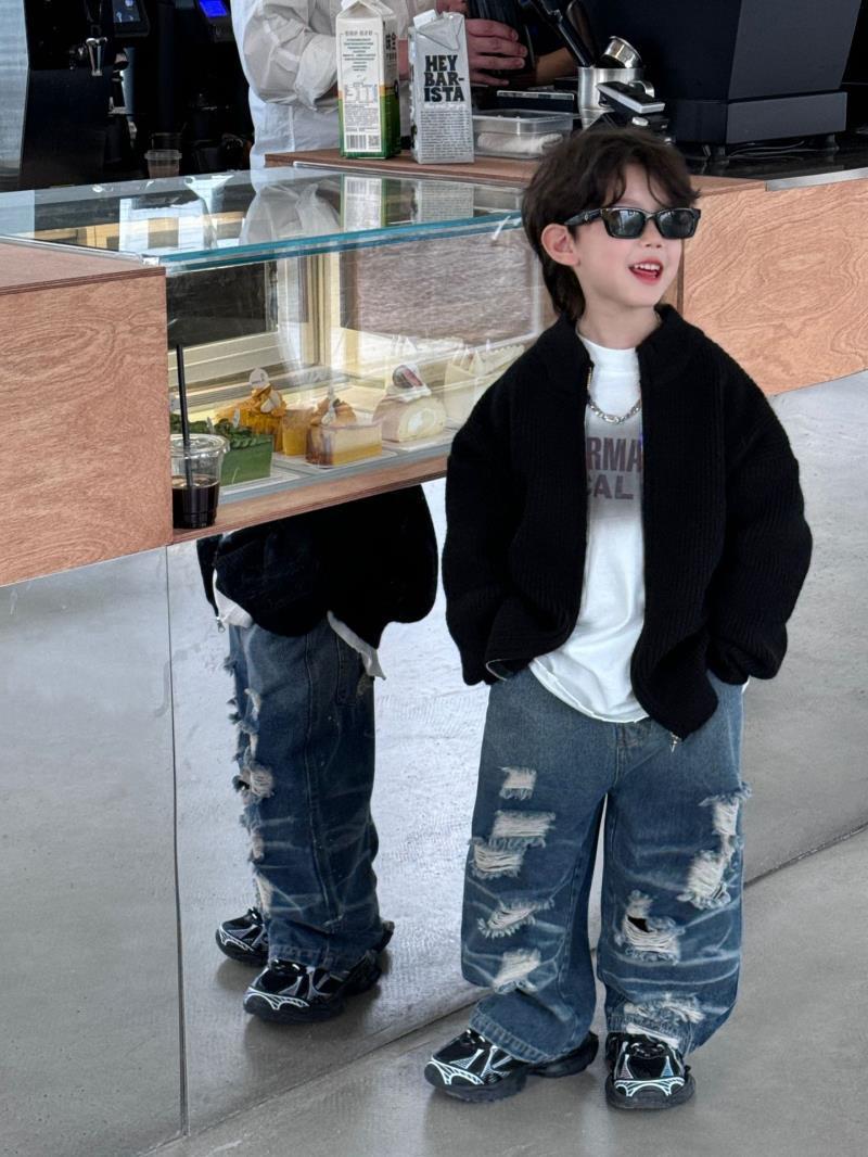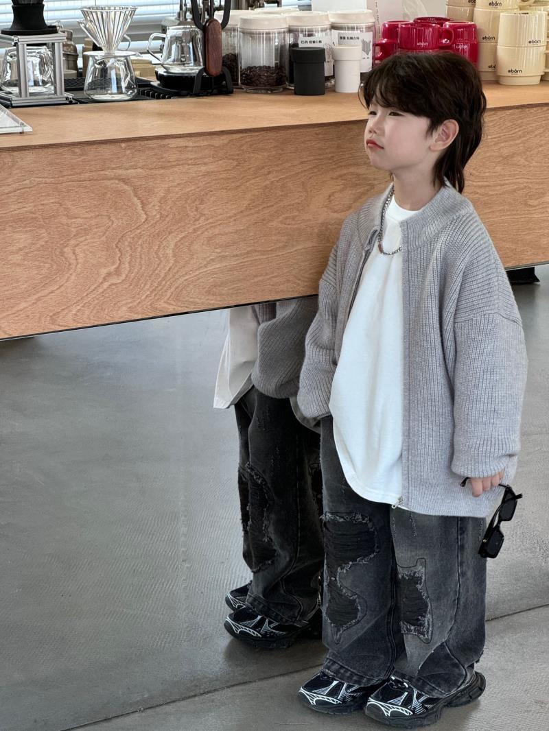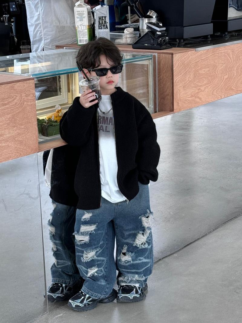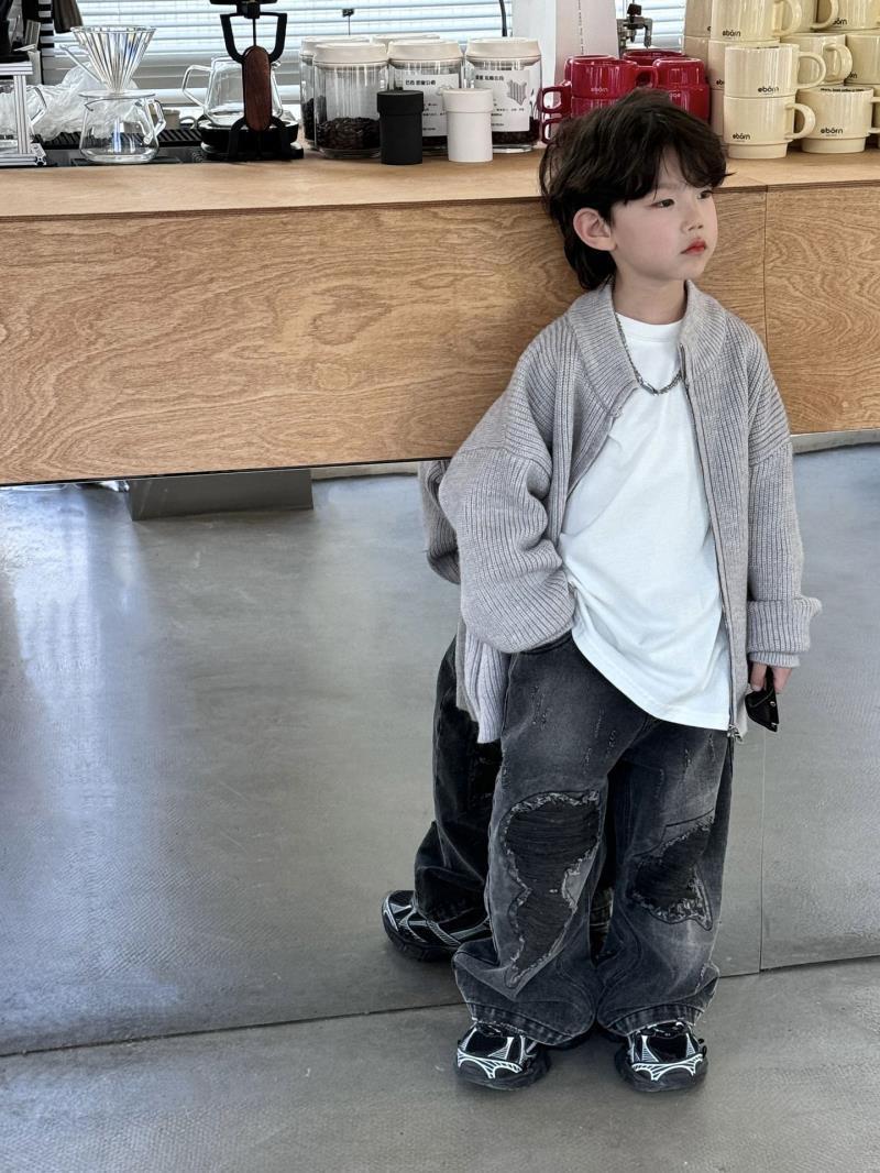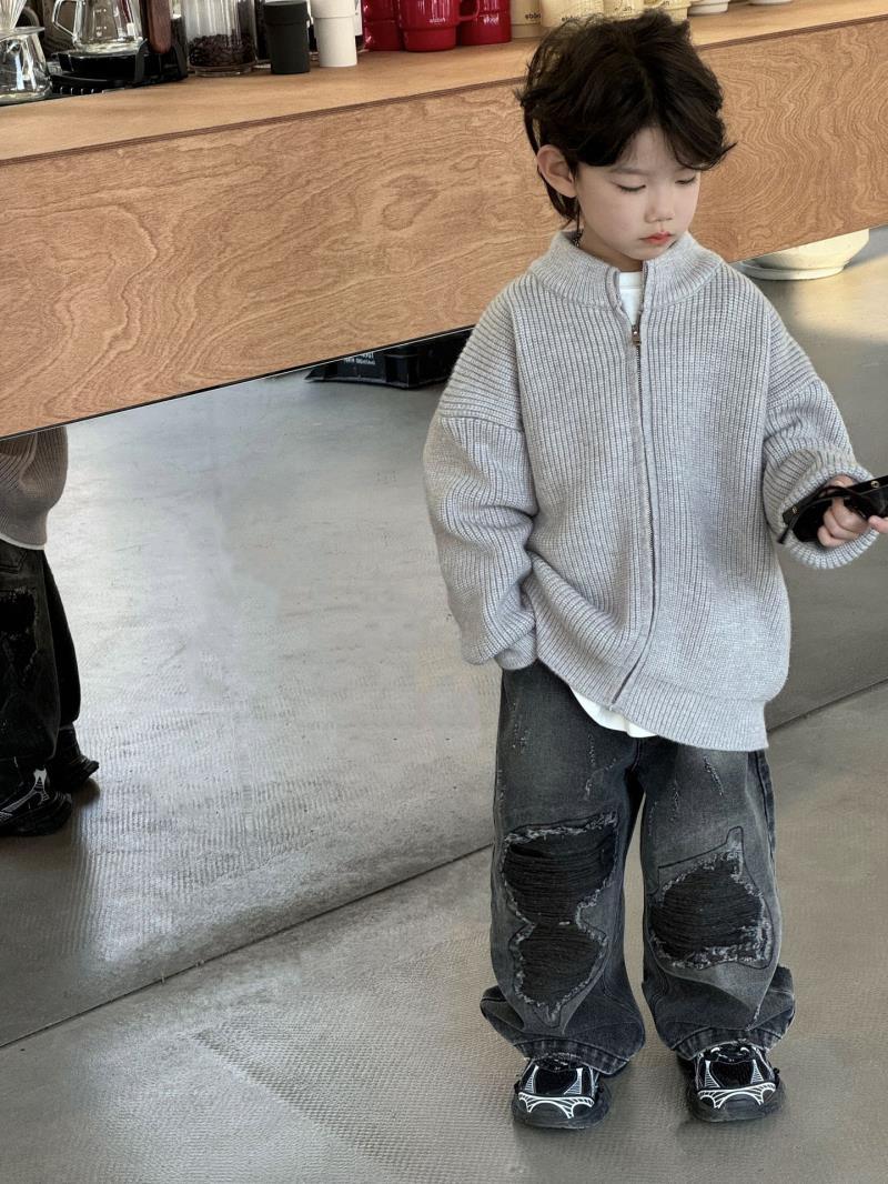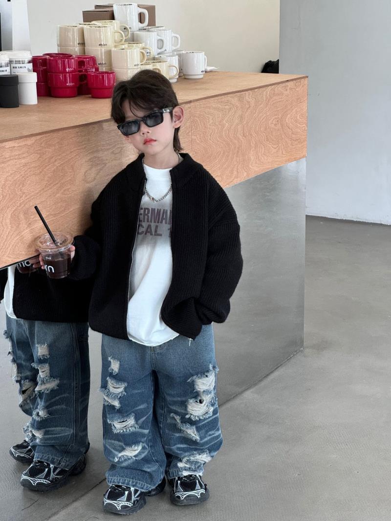 Spring 2024 New Korean Style Boys All match Knitted Solid Color Cardigan Trendy Sweater Children s Top