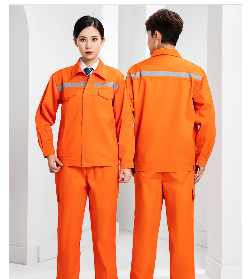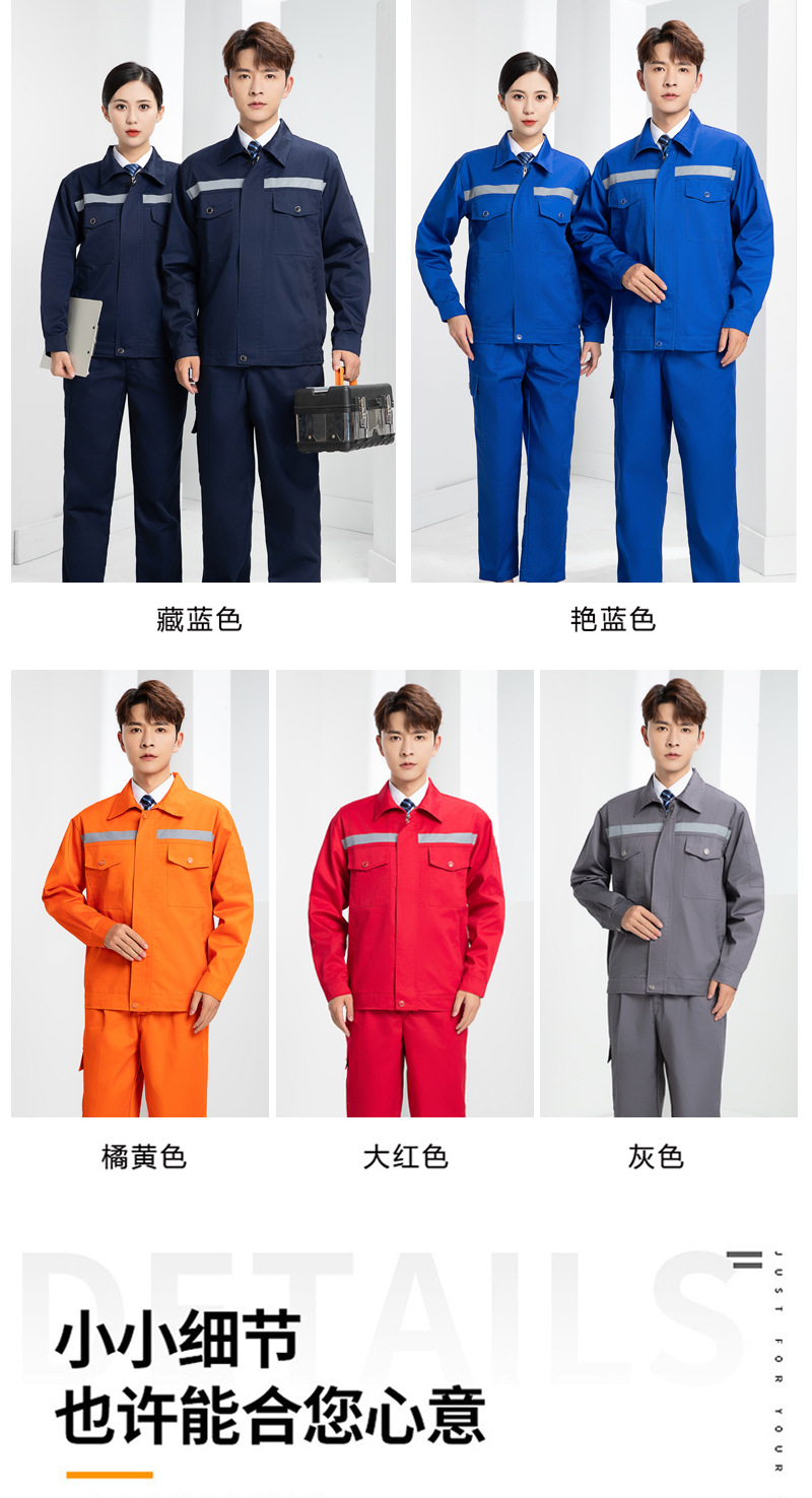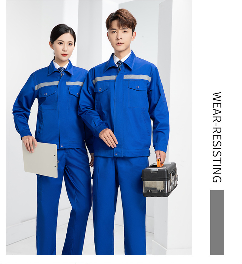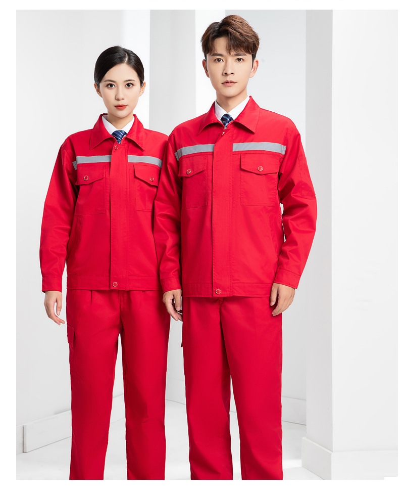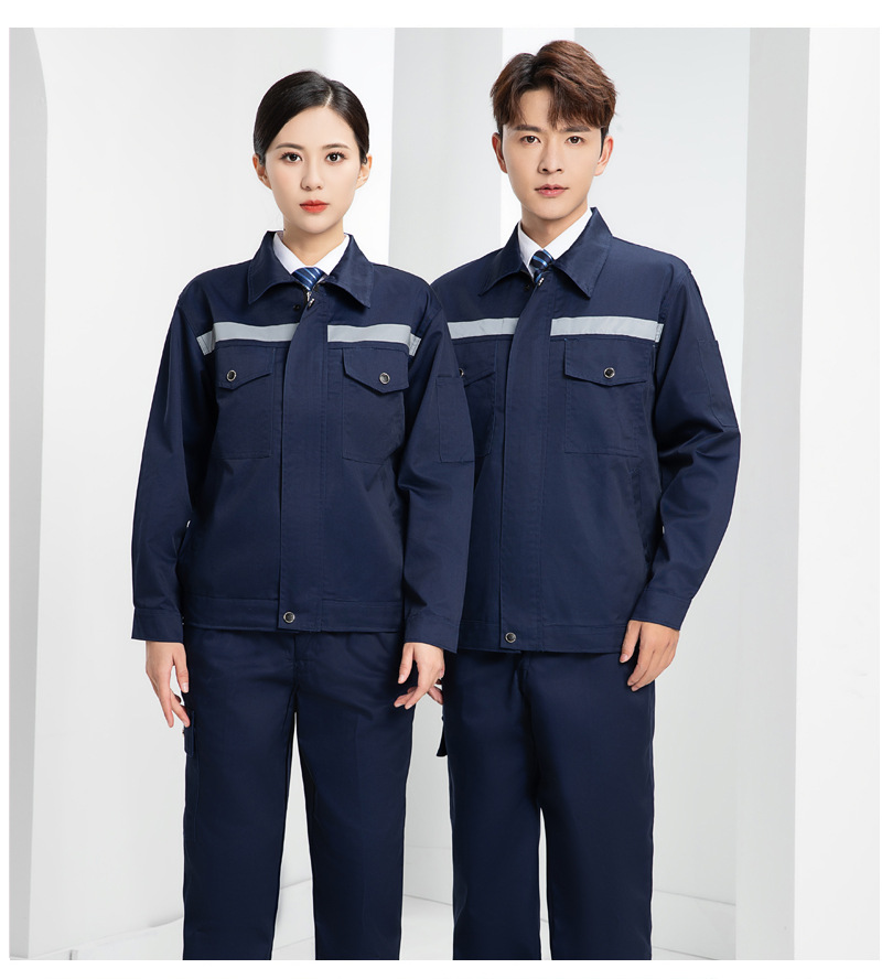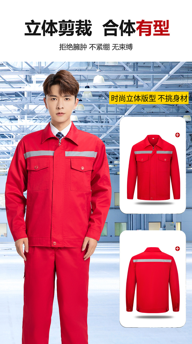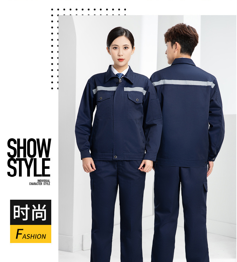 Spring and Autumn Polyester Cotton Reflective Strip Work Clothes Set Printing Wear resistant Dirty resistant Auto Repair Clothes Gas Station Workshop Thin Breathable