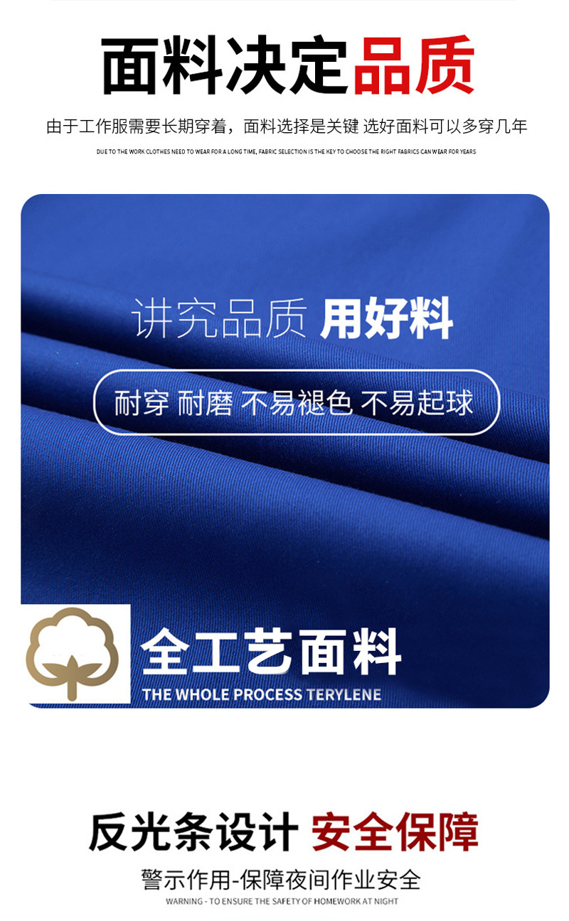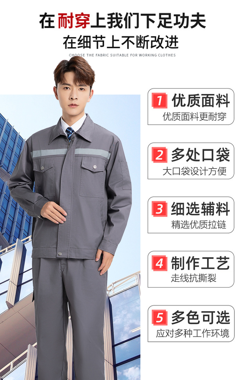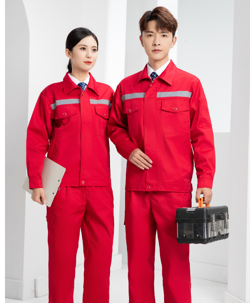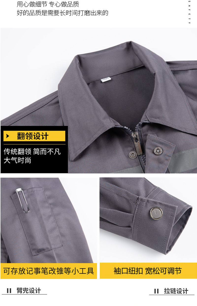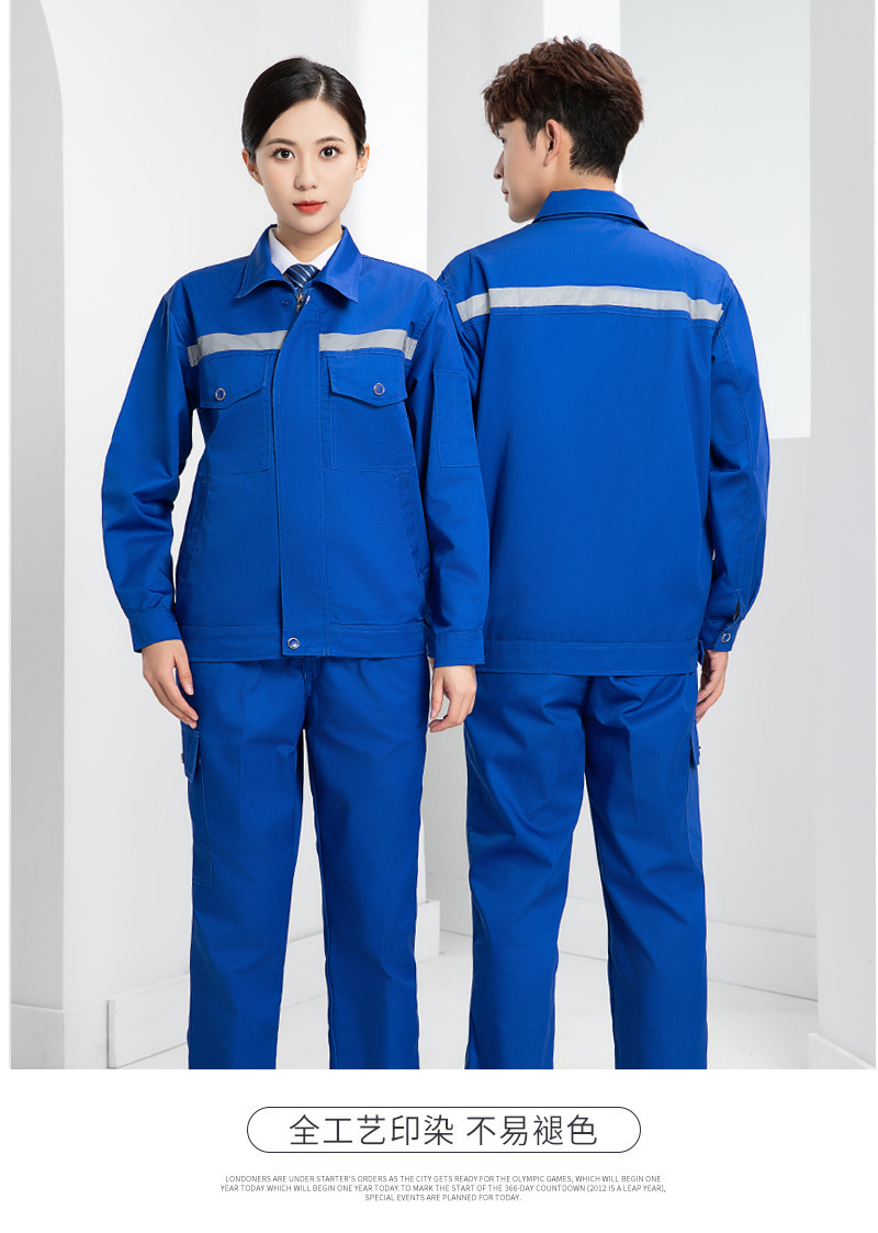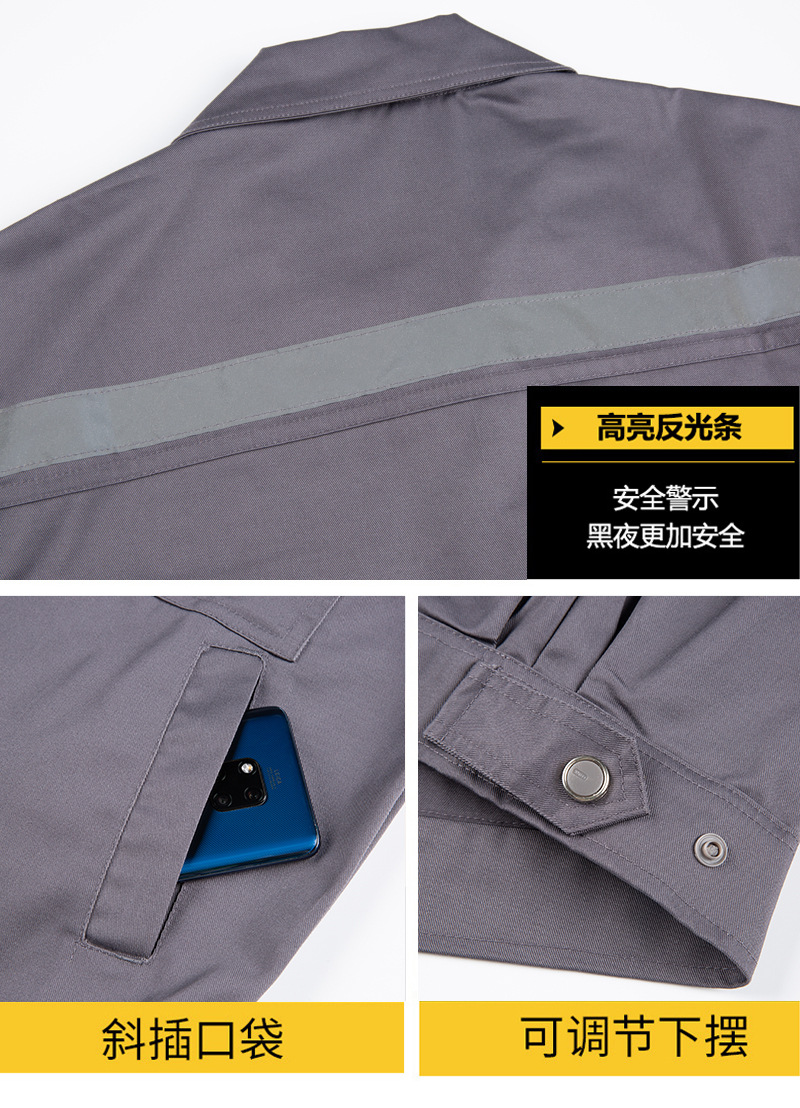 Spring and Autumn Polyester Cotton Reflective Strip Work Clothes Set Printing Wear resistant Dirty resistant Auto Repair Clothes Gas Station Workshop Thin Breathable