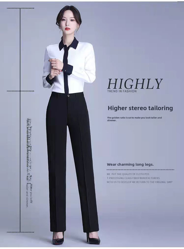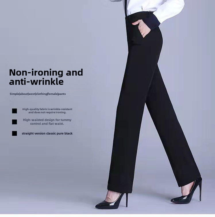 Spring and Autumn Suit Pants Women s Mid waist Slimming Western Style Women s Sag Wide leg Long Pants Black Professional Straight Pants