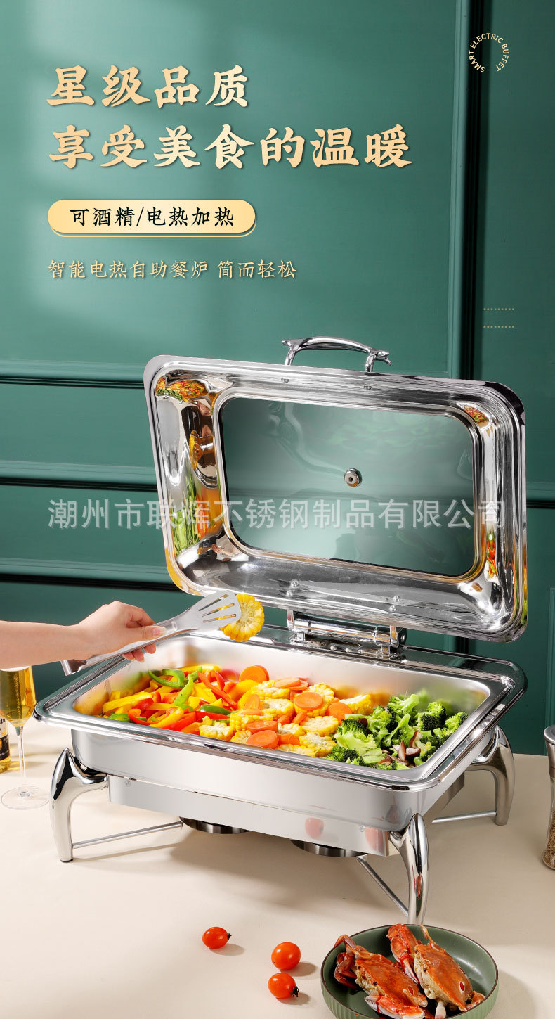 Stainless Steel Buffet Stove Factory Household Insulation Buffet Stove Cooked Food Electric Heating Thickened Hydraulic Alcohol Stove Hotel