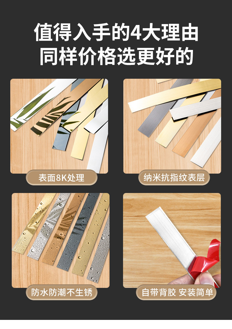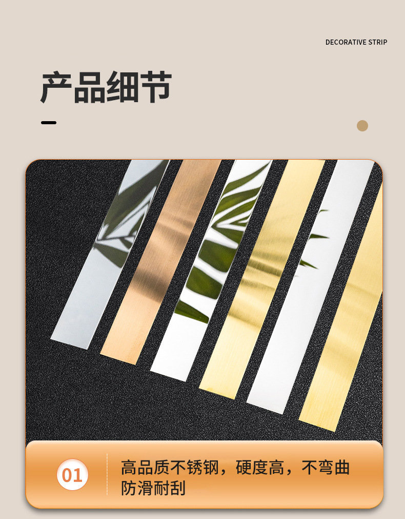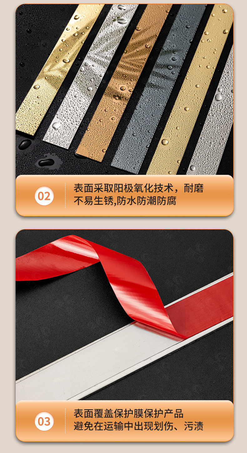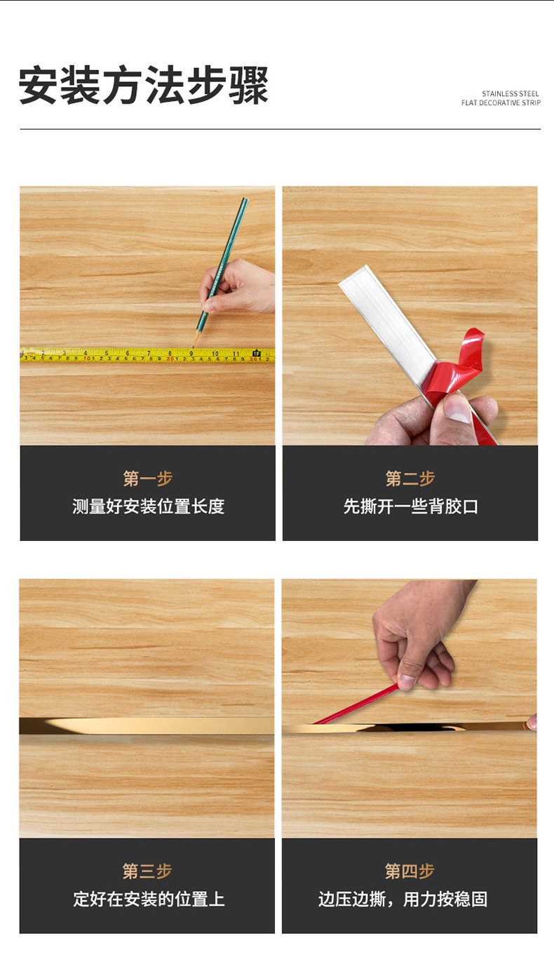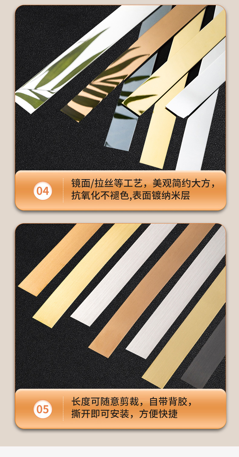 Stainless Steel Decorative Strip Metal Self adhesive Edge Pressing Strip Plane Decorative Strip Ceiling Background Wall Titanium Wire Plate