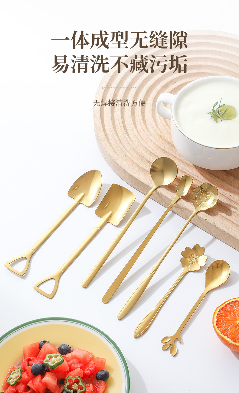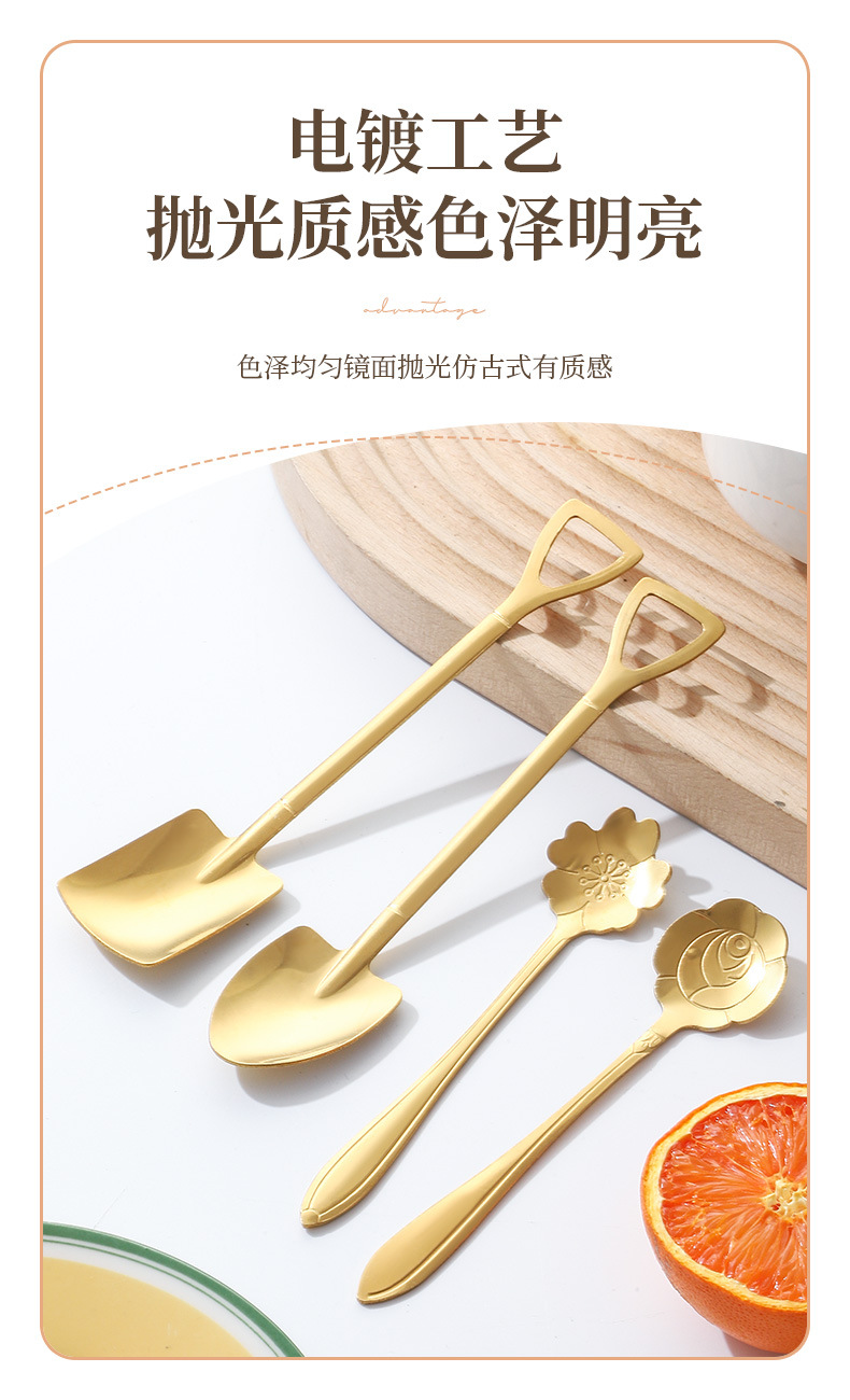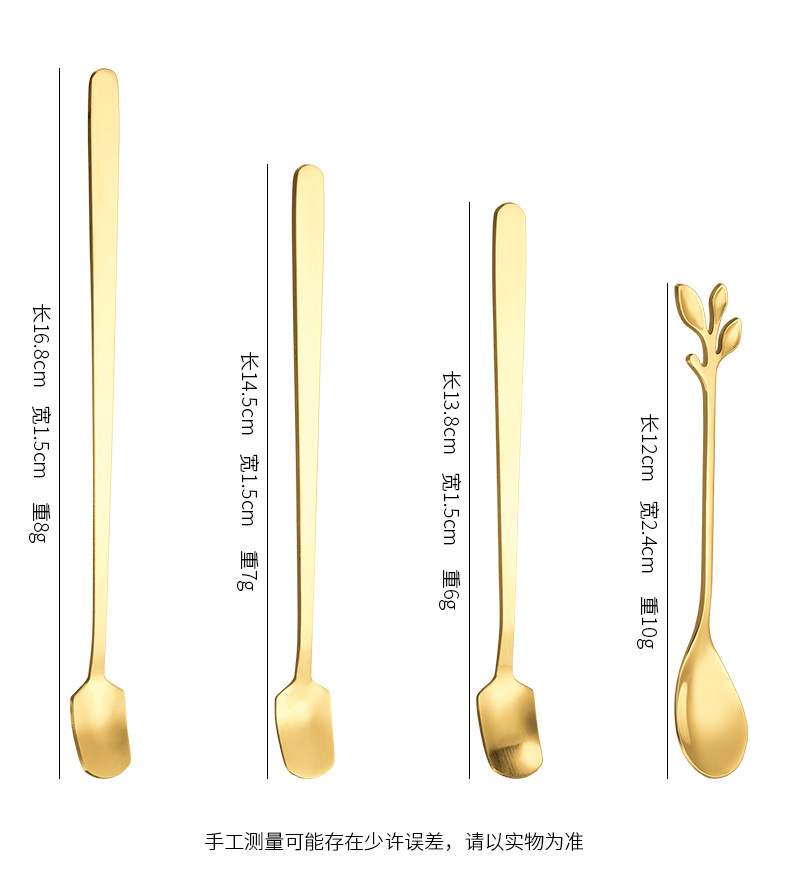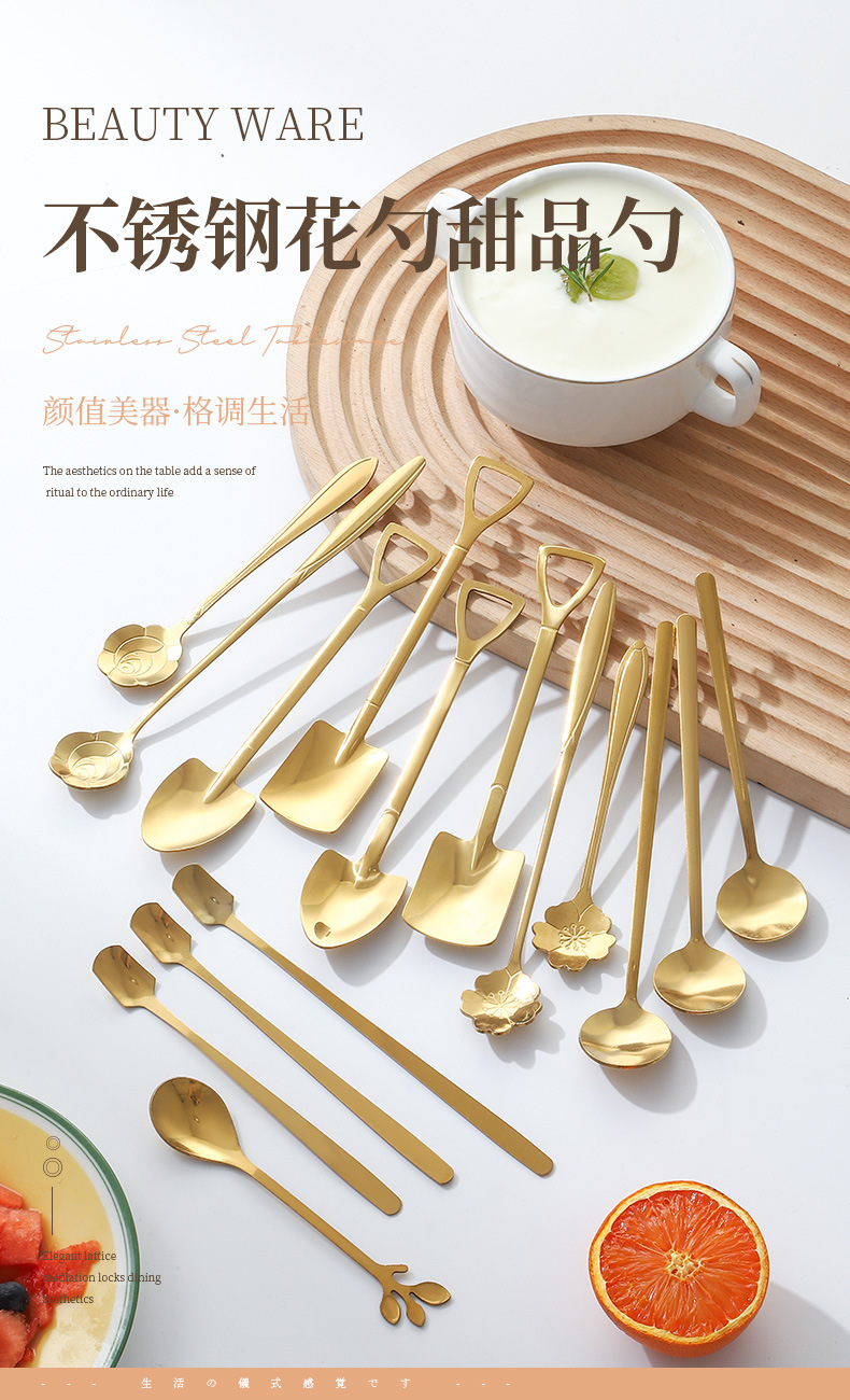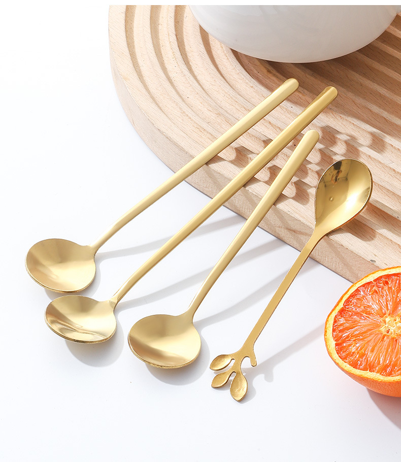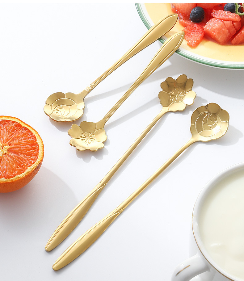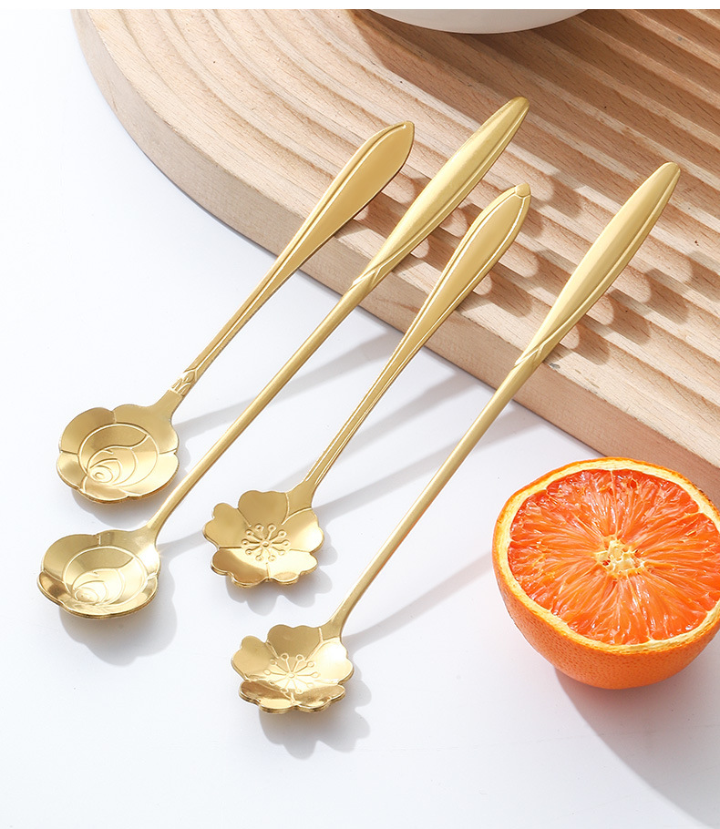 Stainless Steel Golden Spoon Cherry Blossom Small Round Spoon Leaf Spoon Coffee Mixing Spoon Glass Cup Ceramic Cup Long Handle Ice Spoon