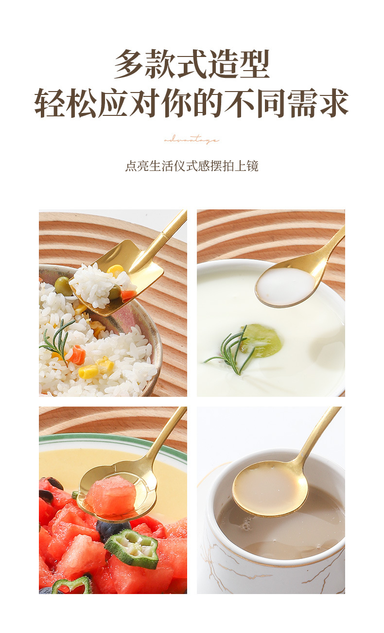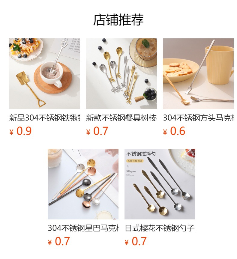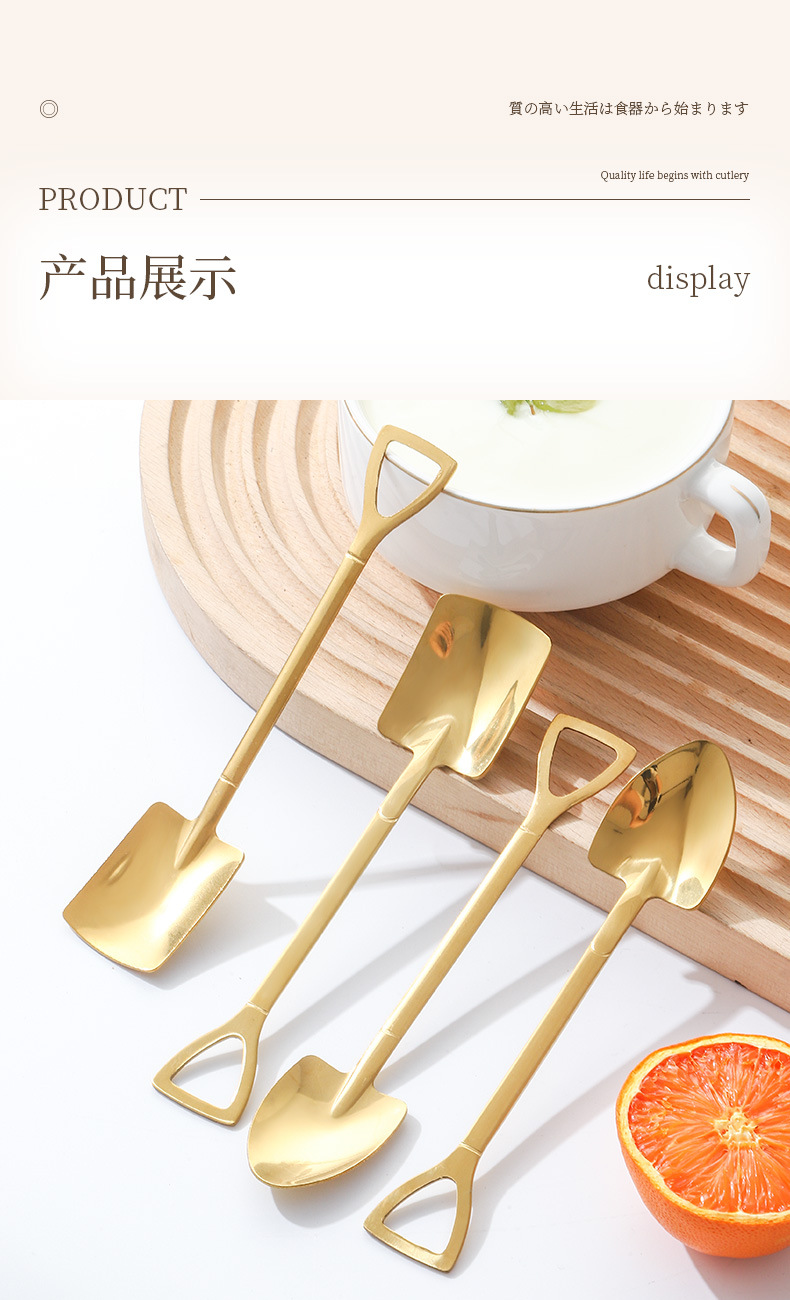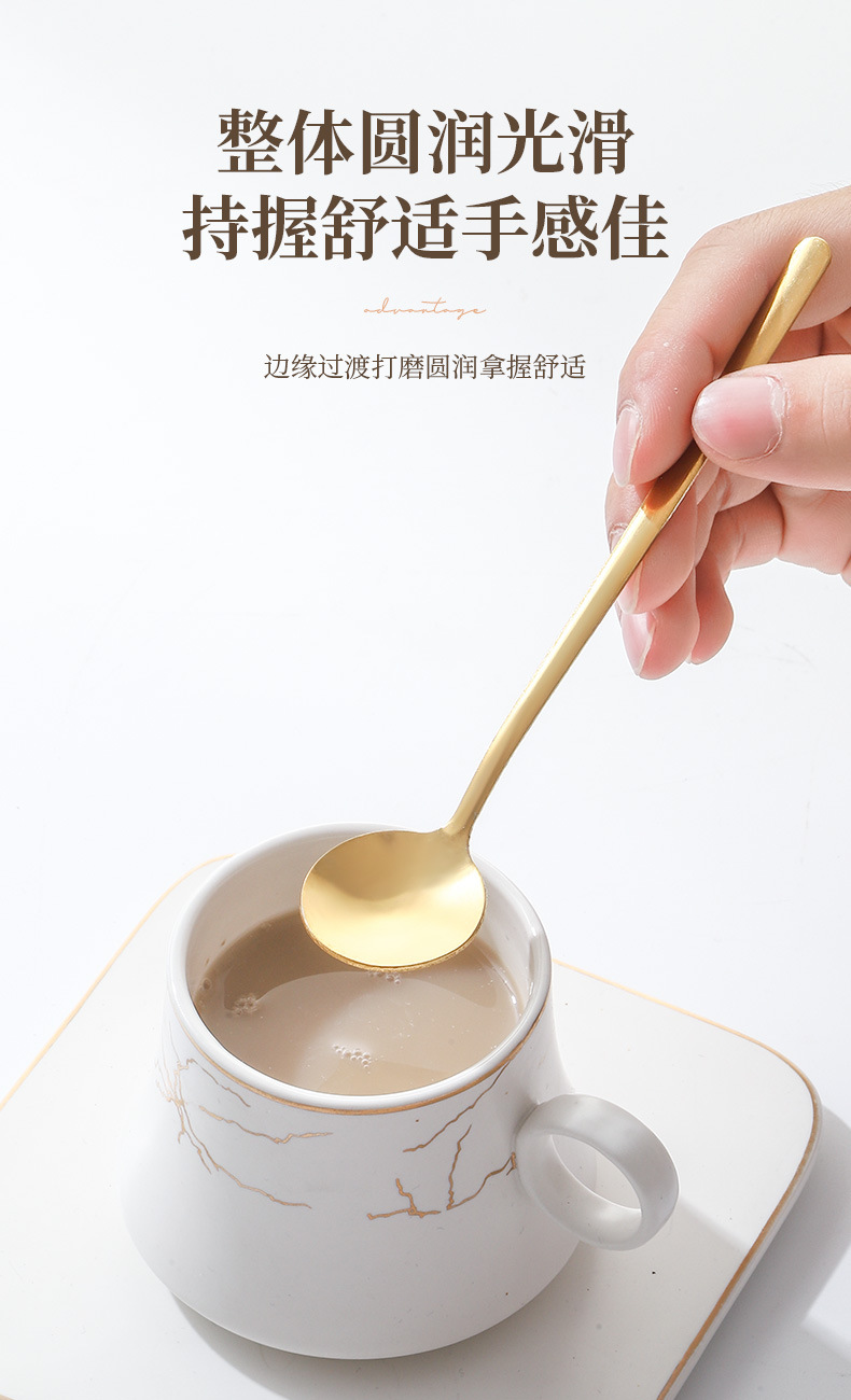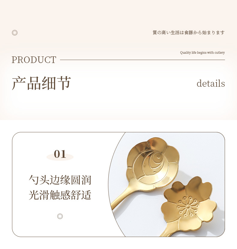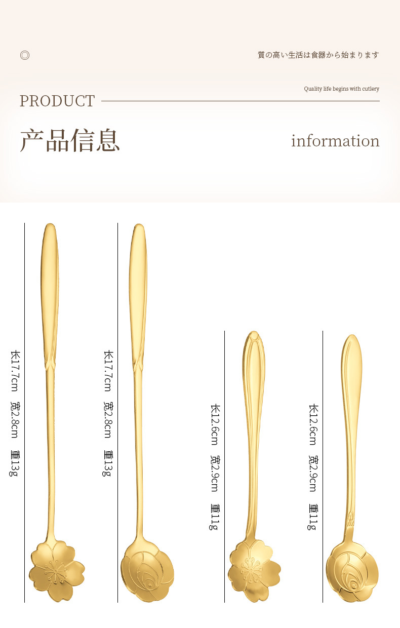 Stainless Steel Golden Spoon Cherry Blossom Small Round Spoon Leaf Spoon Coffee Mixing Spoon Glass Cup Ceramic Cup Long Handle Ice Spoon