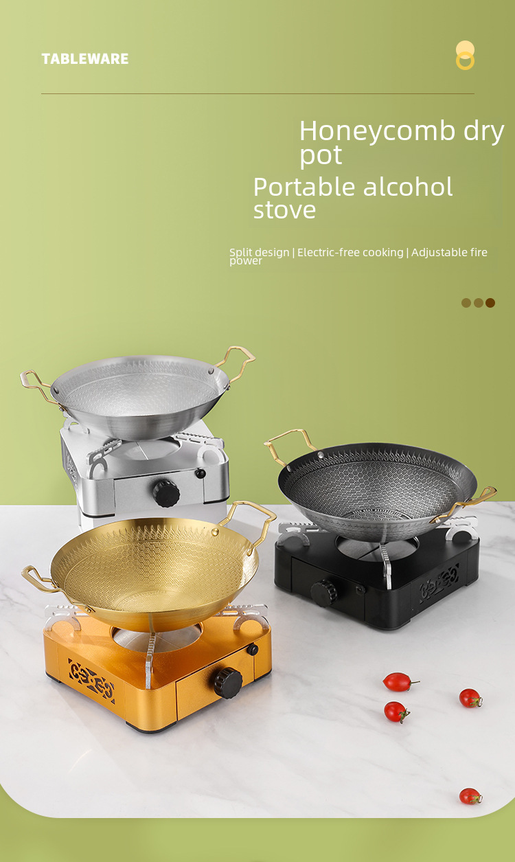 Stainless Steel Honeycomb Dry Pot Alcohol Stove Drawer Type Alcohol Restaurant Small Hot Pot Thickened Thai Restaurant Winter Yin Public Pot