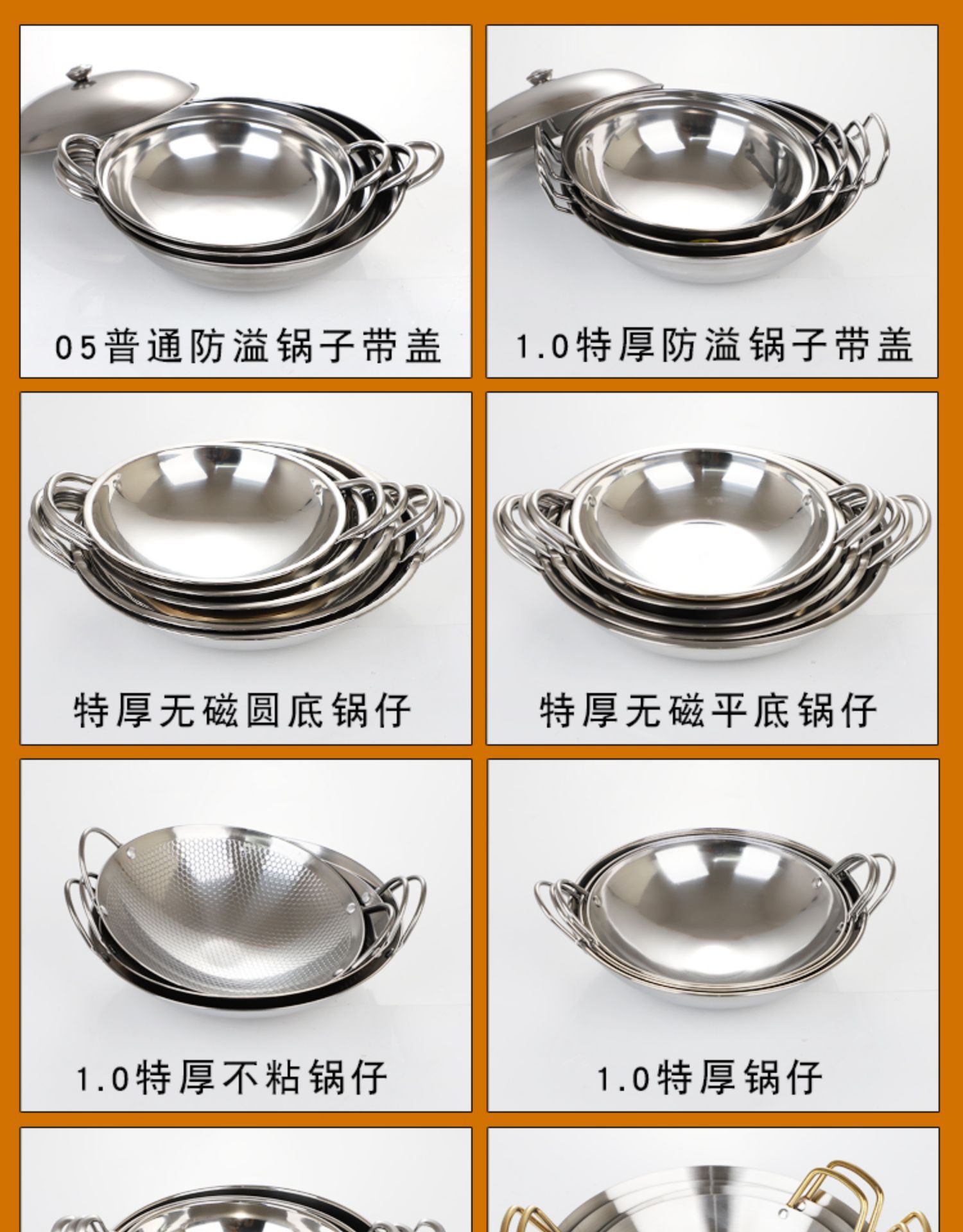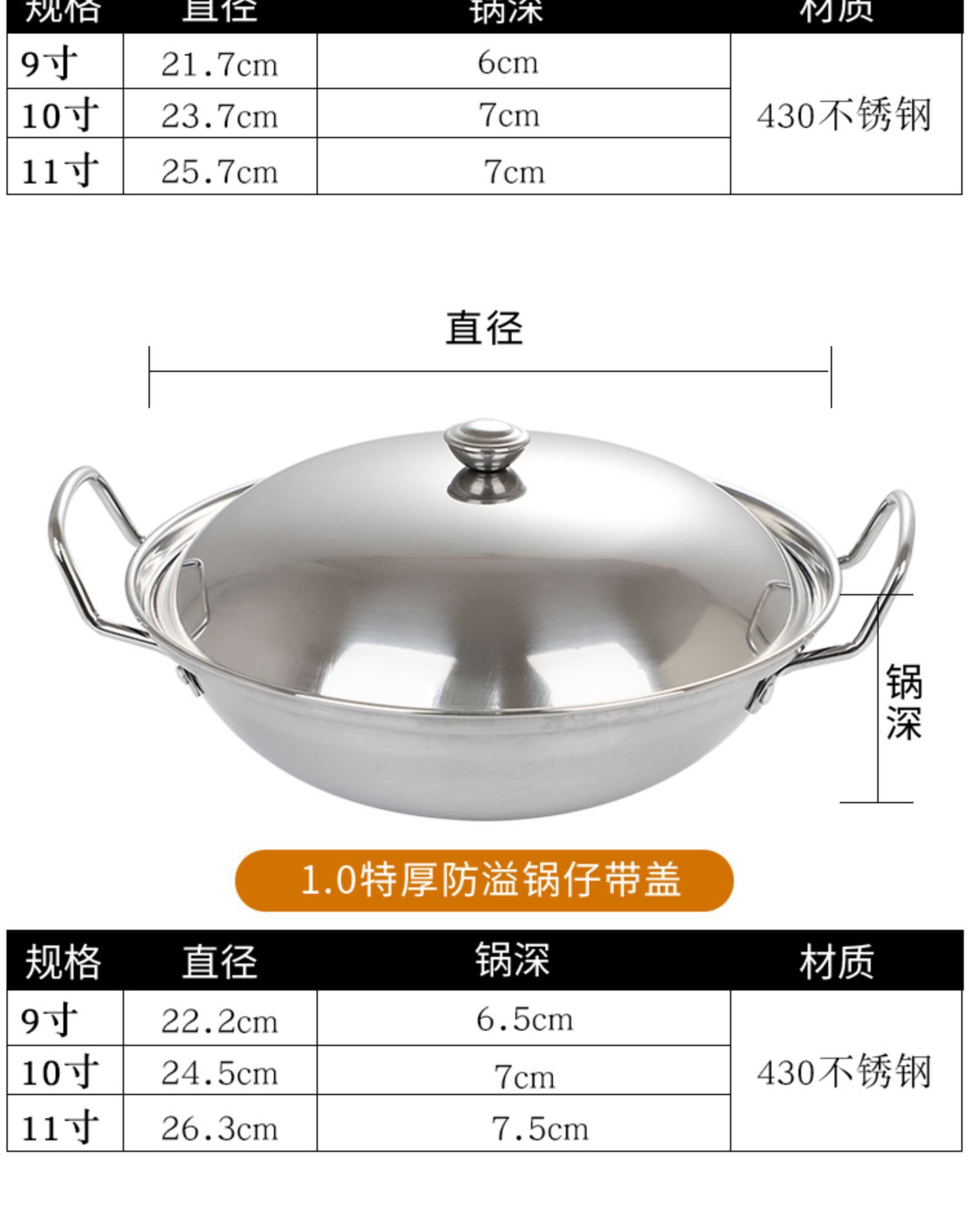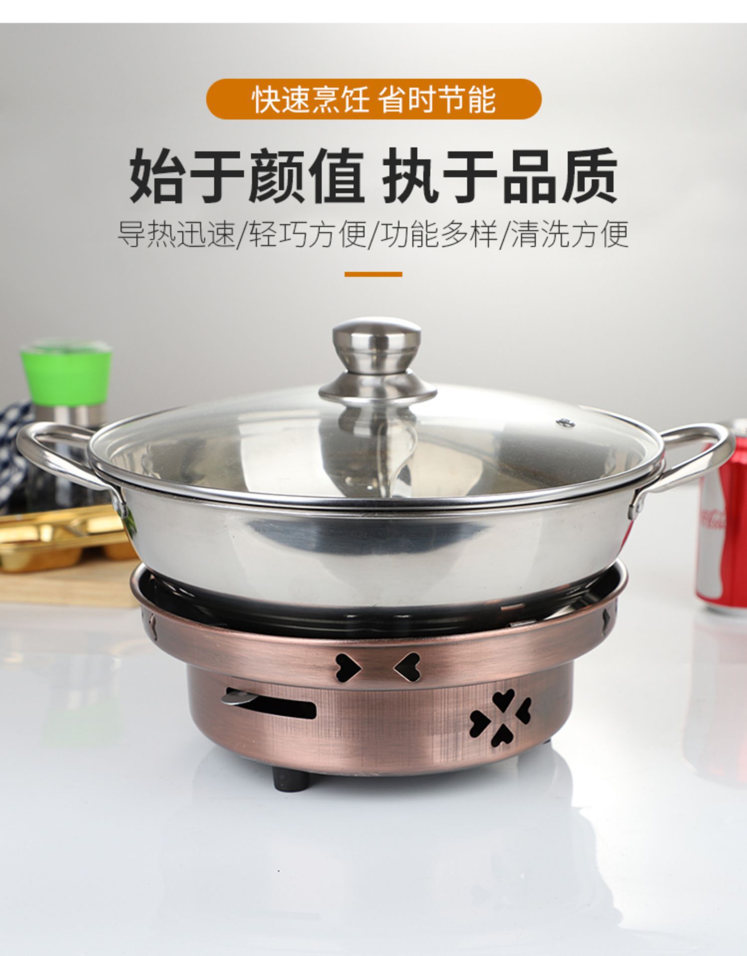 Stainless Steel Pot Commercial Alcohol Stove Small Hot Pot Dry Pot Household Flat Bottom Non stick Pot Outdoor Restaurant