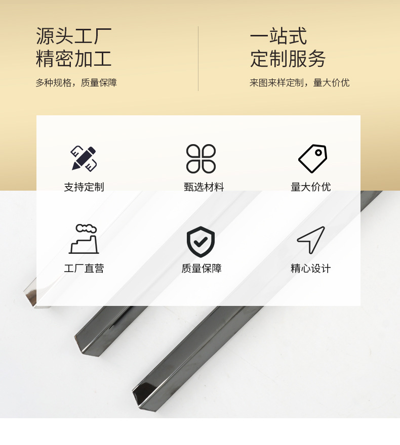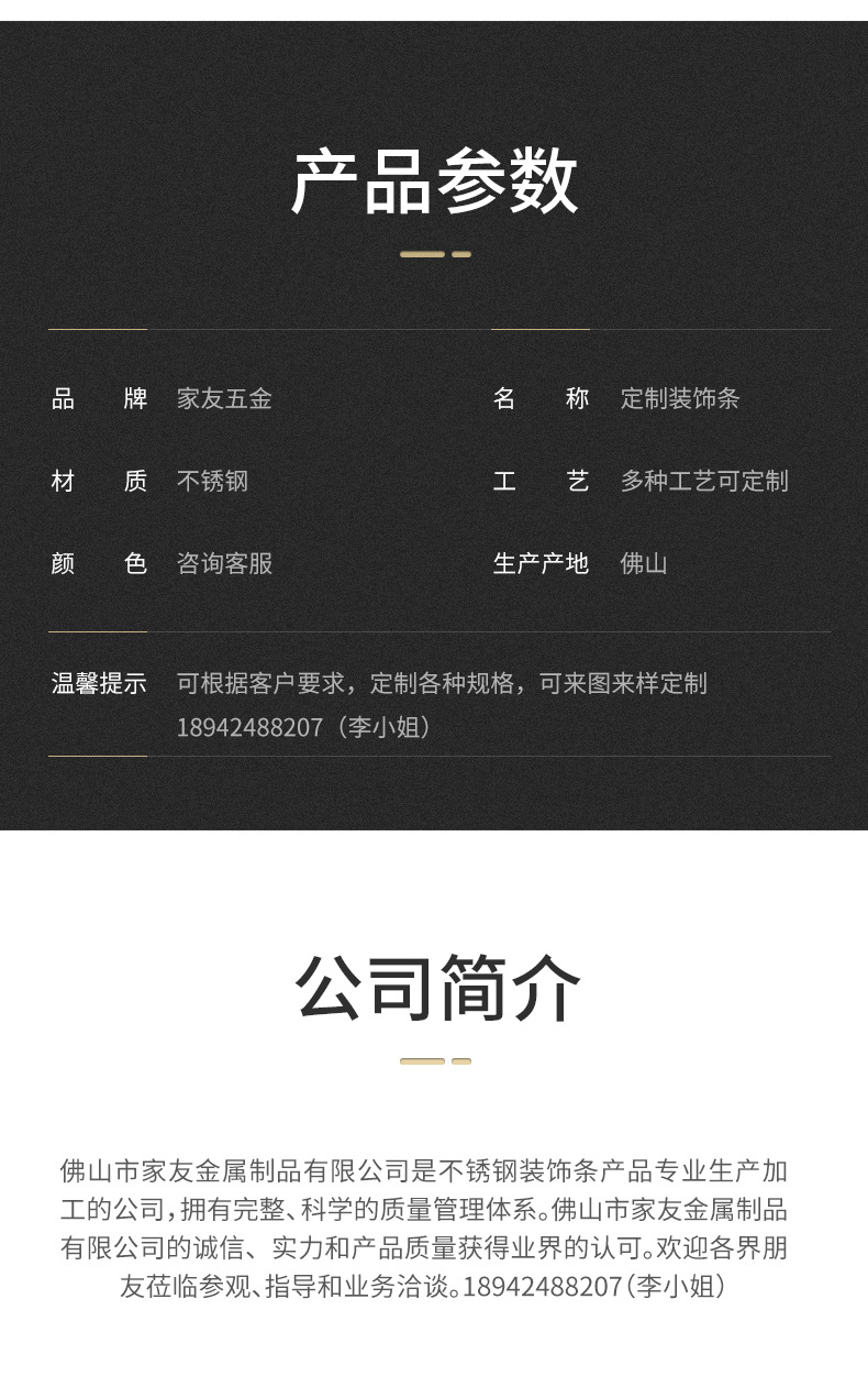 Stainless steel F groove decorative strip skirting line decorative line Board TV cabinet background wall flat decorative strip complete specifications