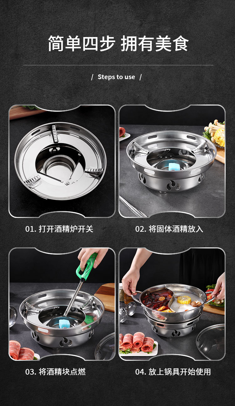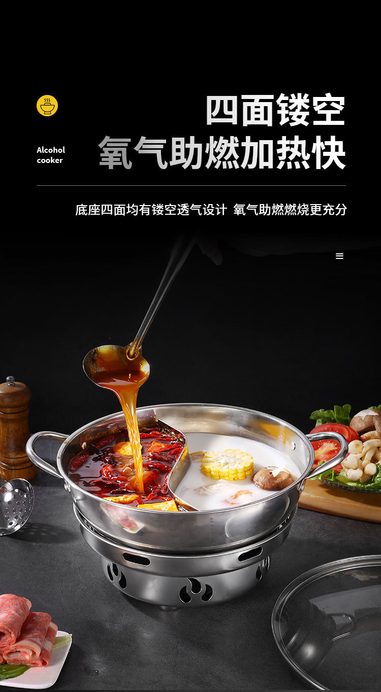 Stainless steel alcohol stove large windproof non slip household small hot pot restaurant dry boiler outdoor convenient factory direct sales