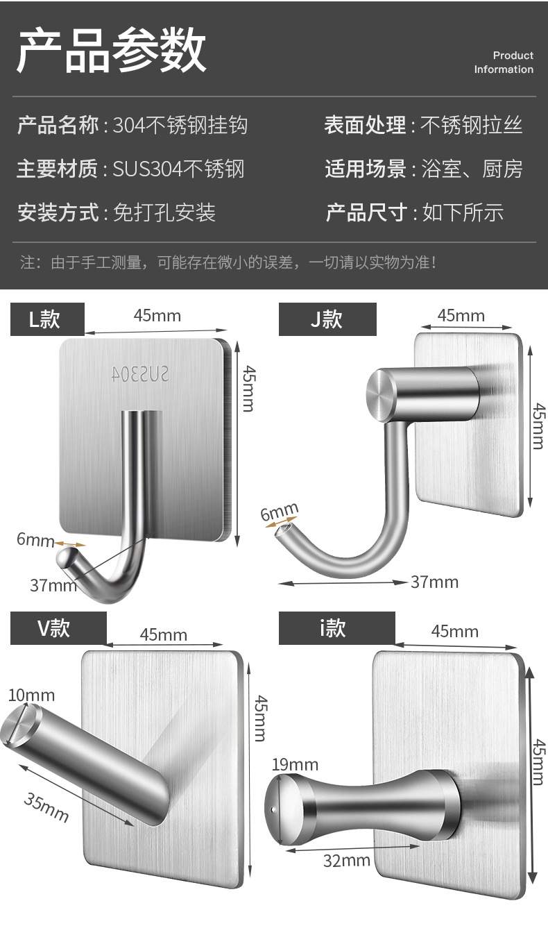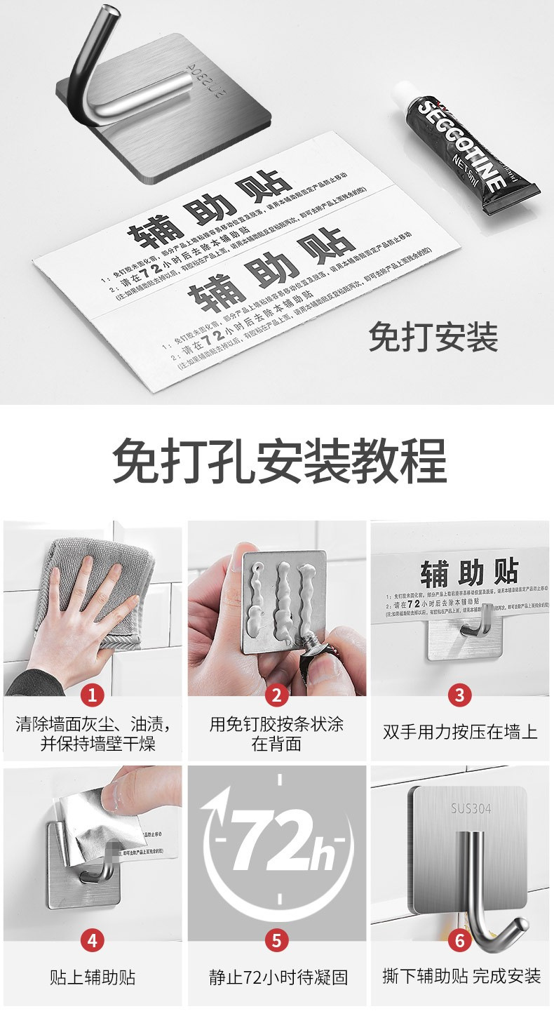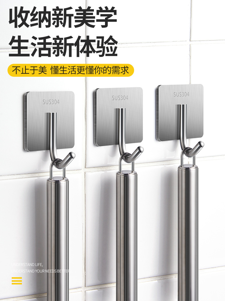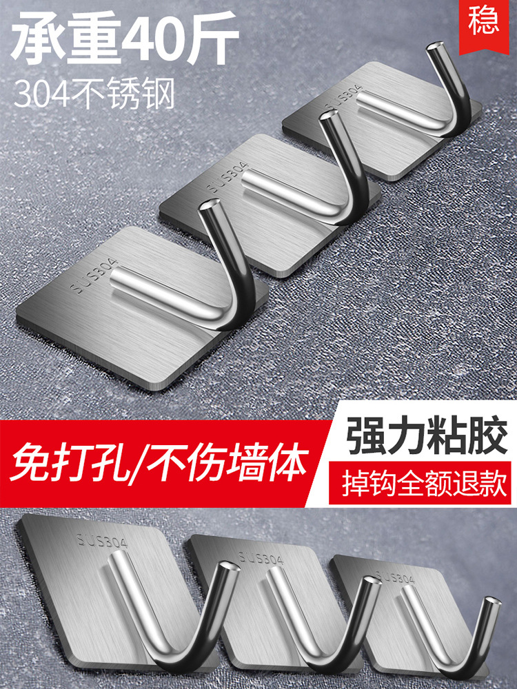 Stainless steel clothes hook punch free kitchen sticky hook wall load bearing metal hook bathroom bathroom single hook hook hook