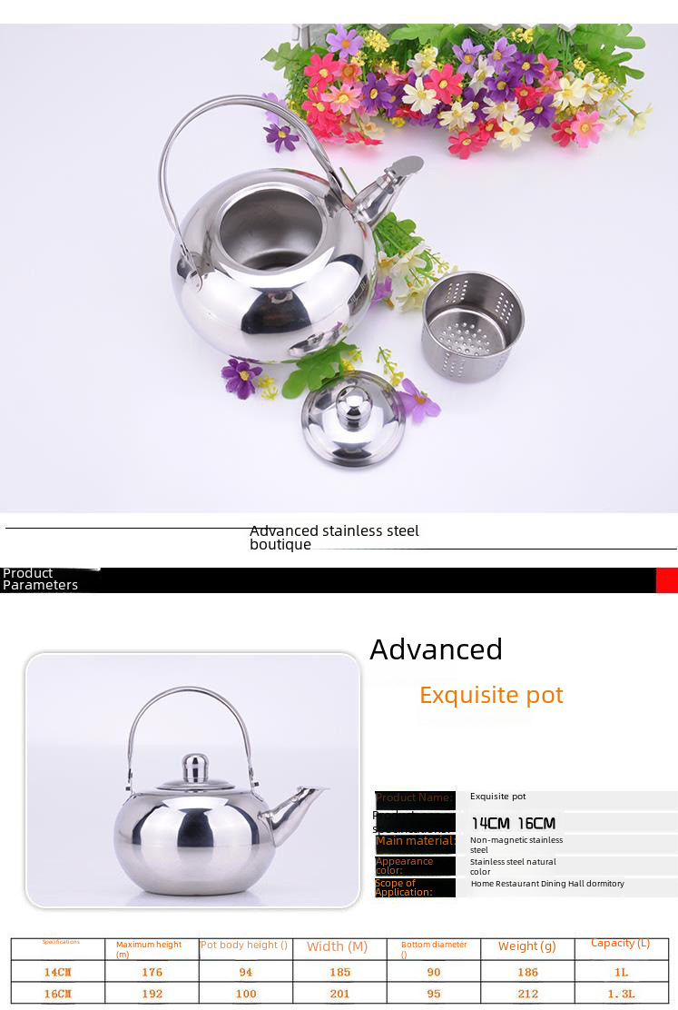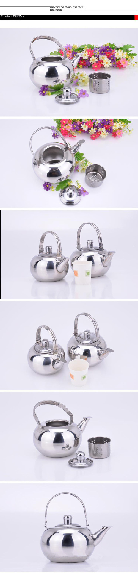 Stainless steel exquisite pot electrolytic teapot with long strainer warm wine Kettle tea set round pot outdoor kettle