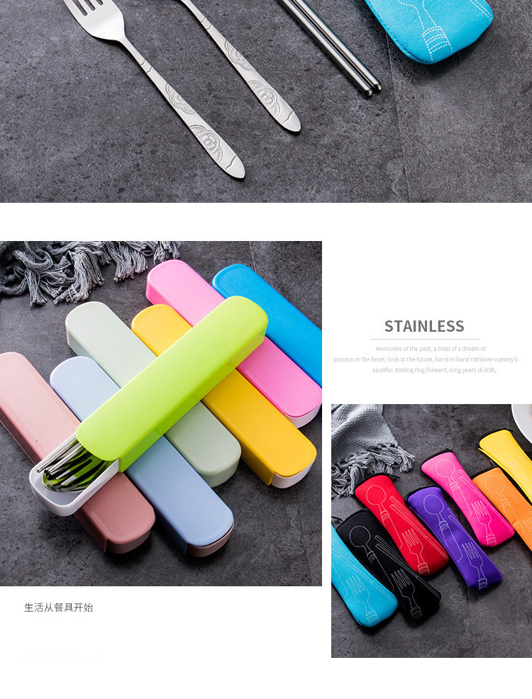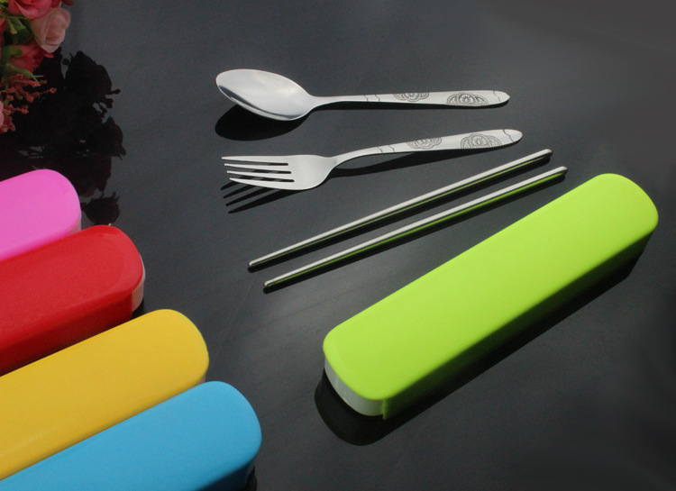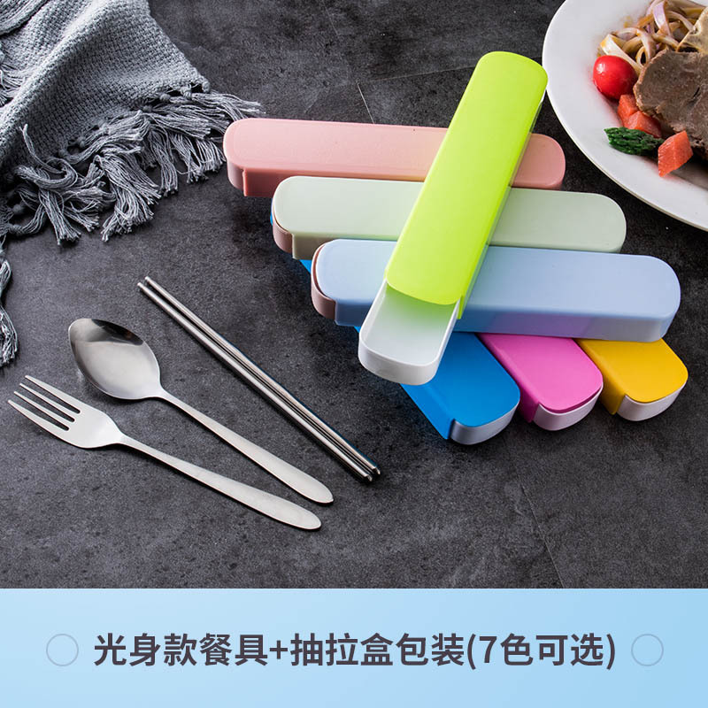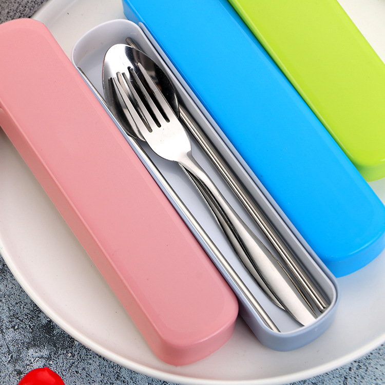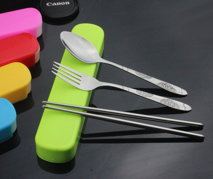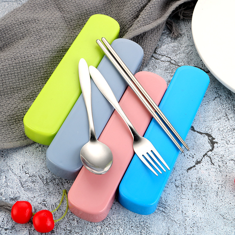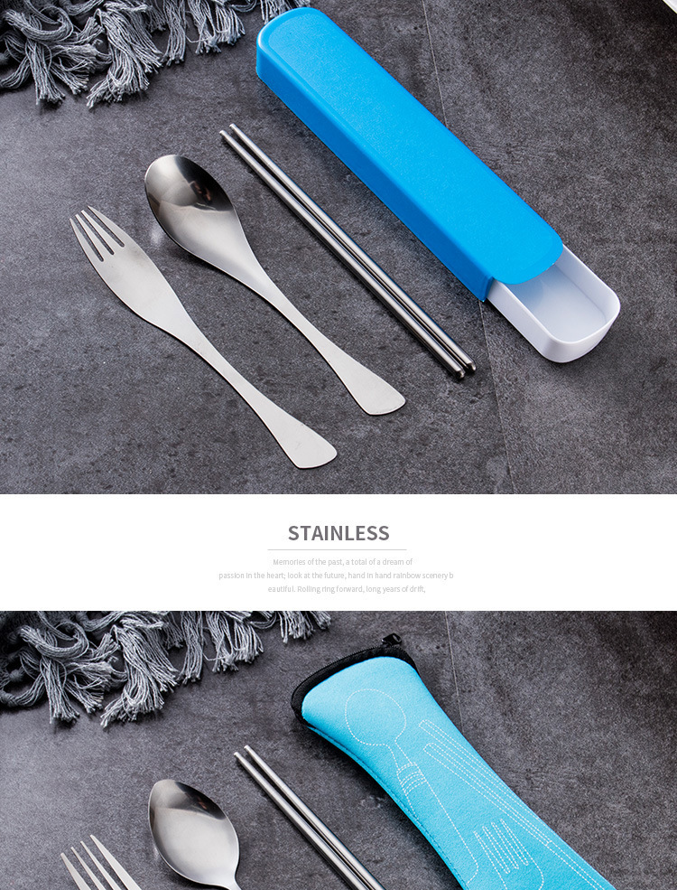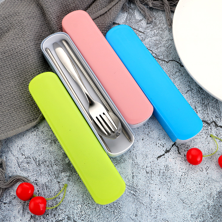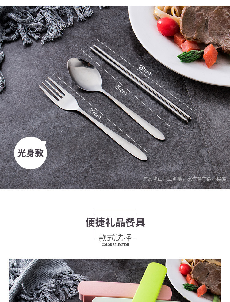 Stainless steel fork spoon chopsticks three-piece student travel camping convenient tableware storage box gift promotional LOGO