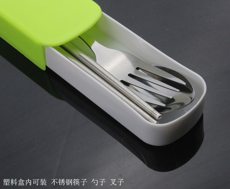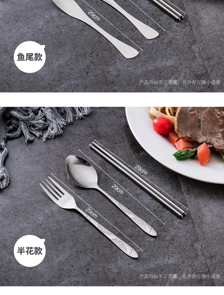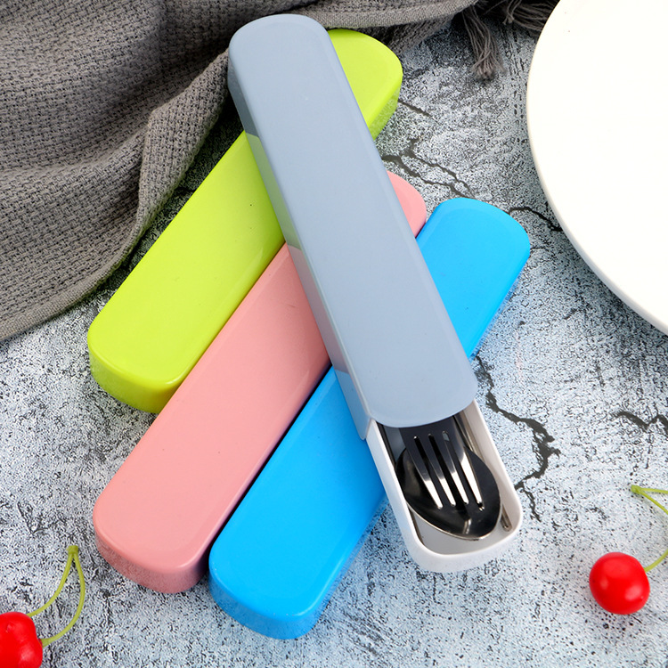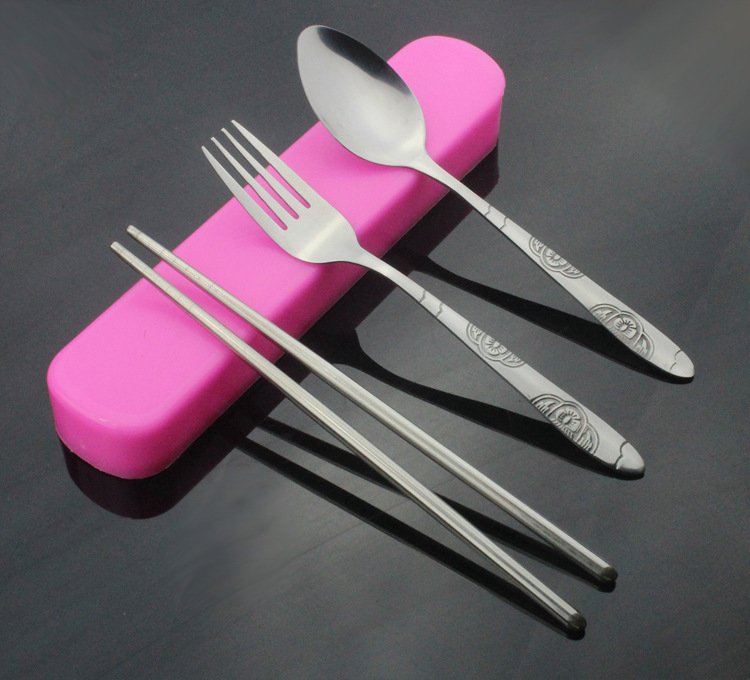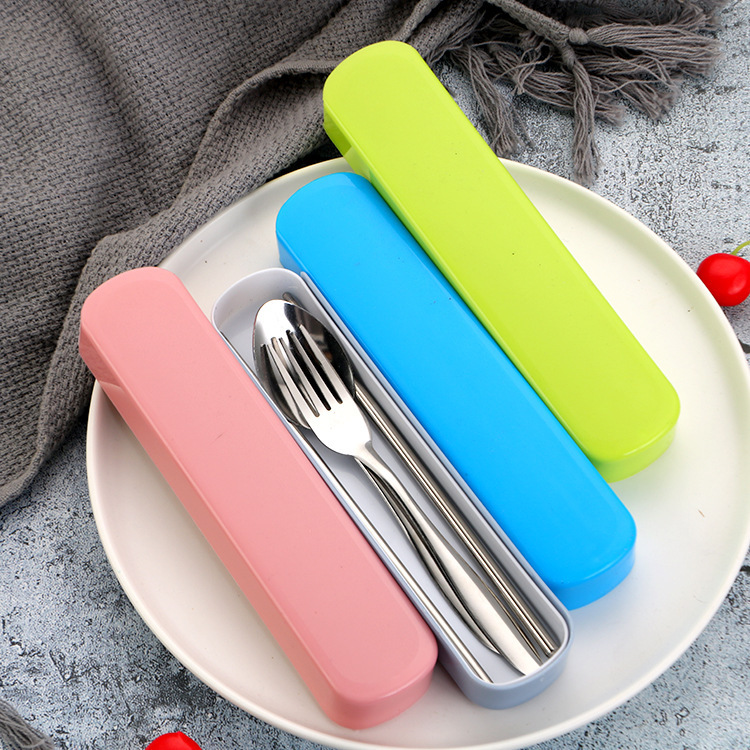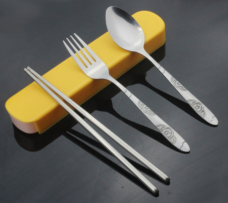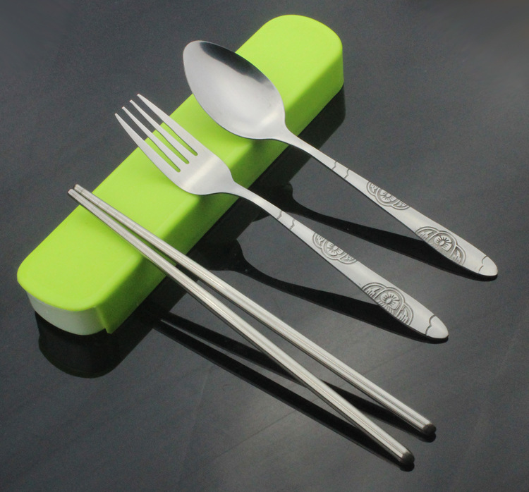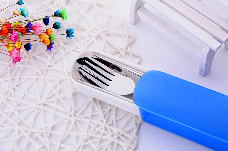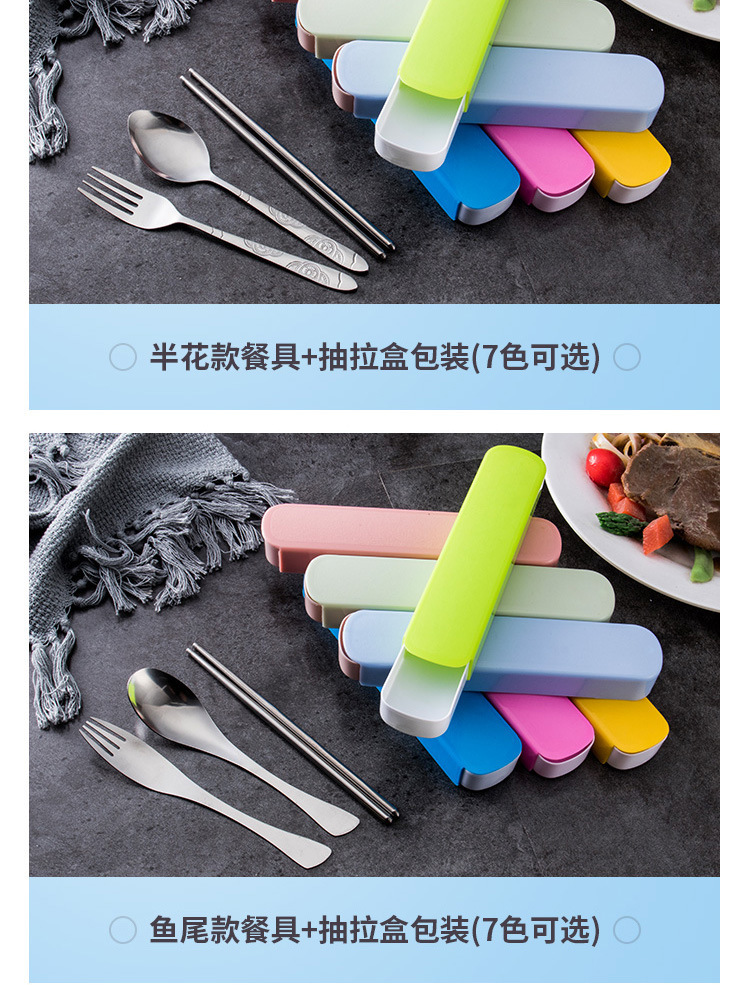 Stainless steel fork spoon chopsticks three-piece student travel camping convenient tableware storage box gift promotional LOGO