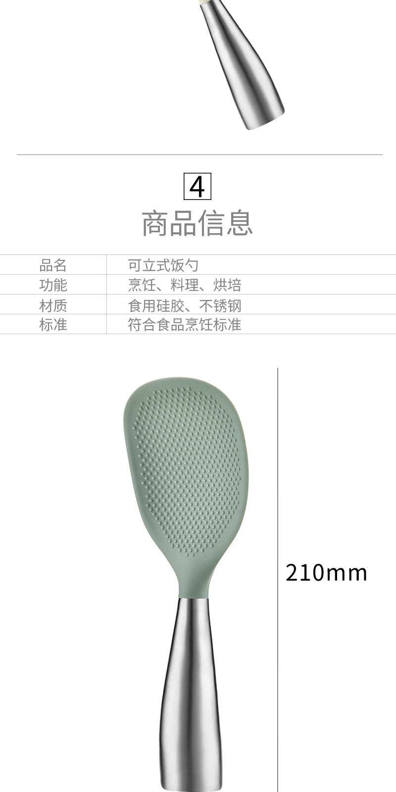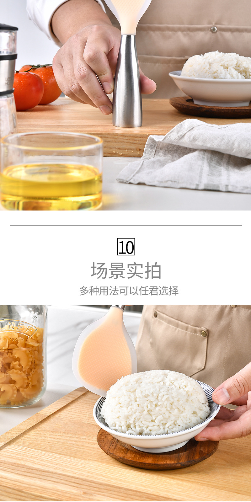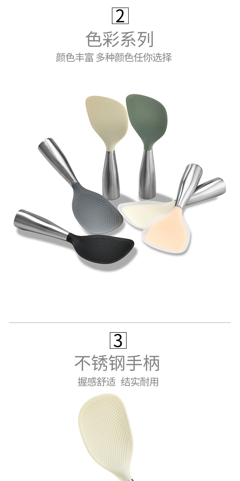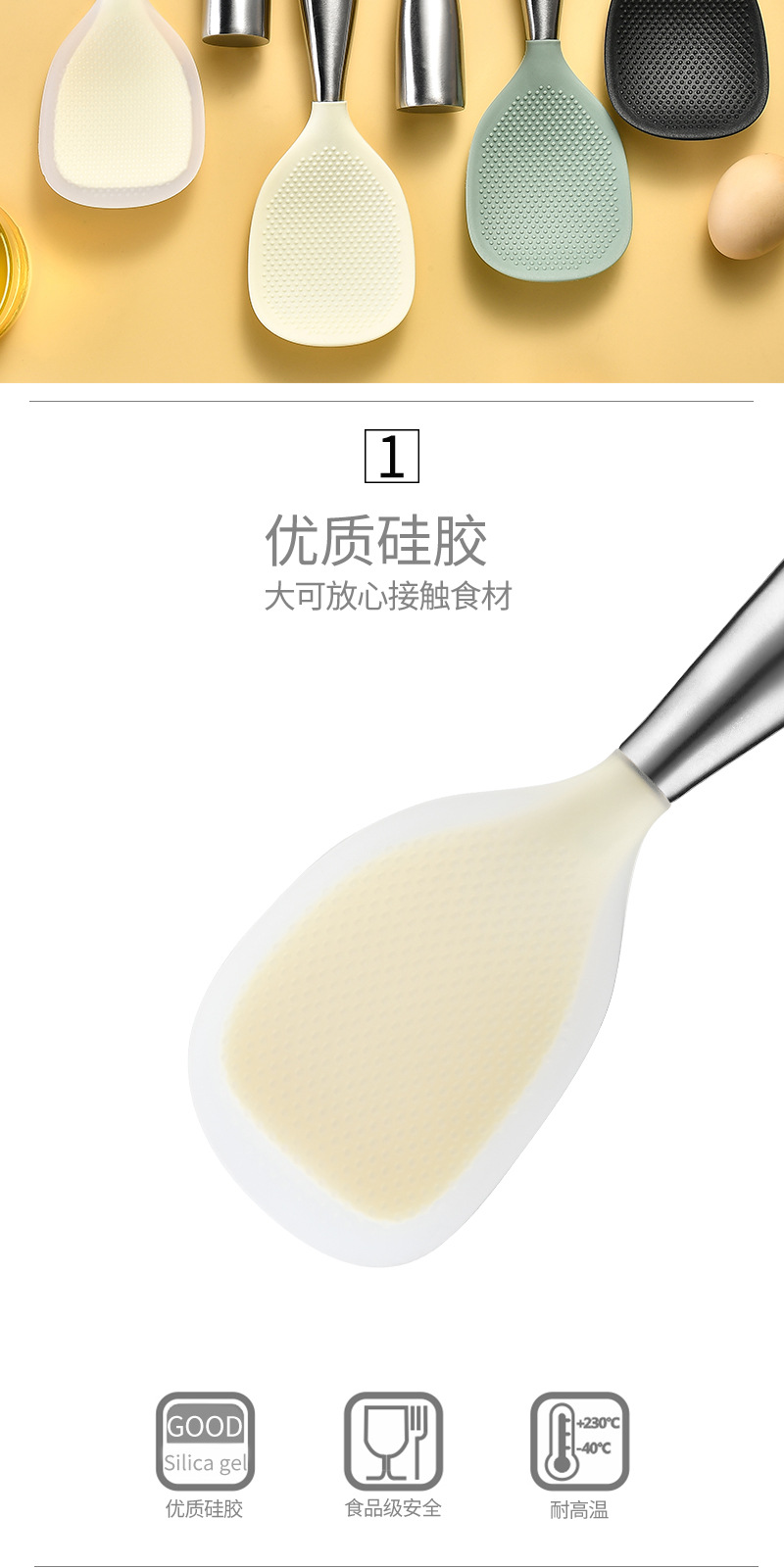 Stainless steel handle vertical silicone rice spoon heat resistant non stick rice spoon household non hurt pot rice spoon