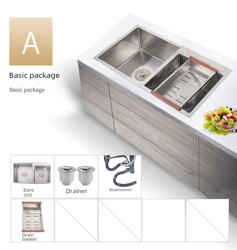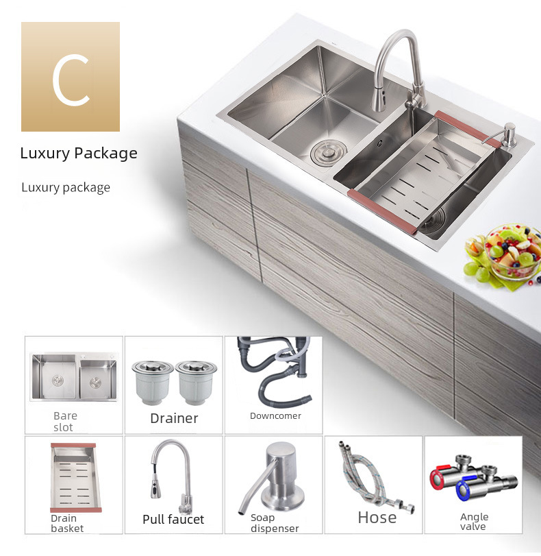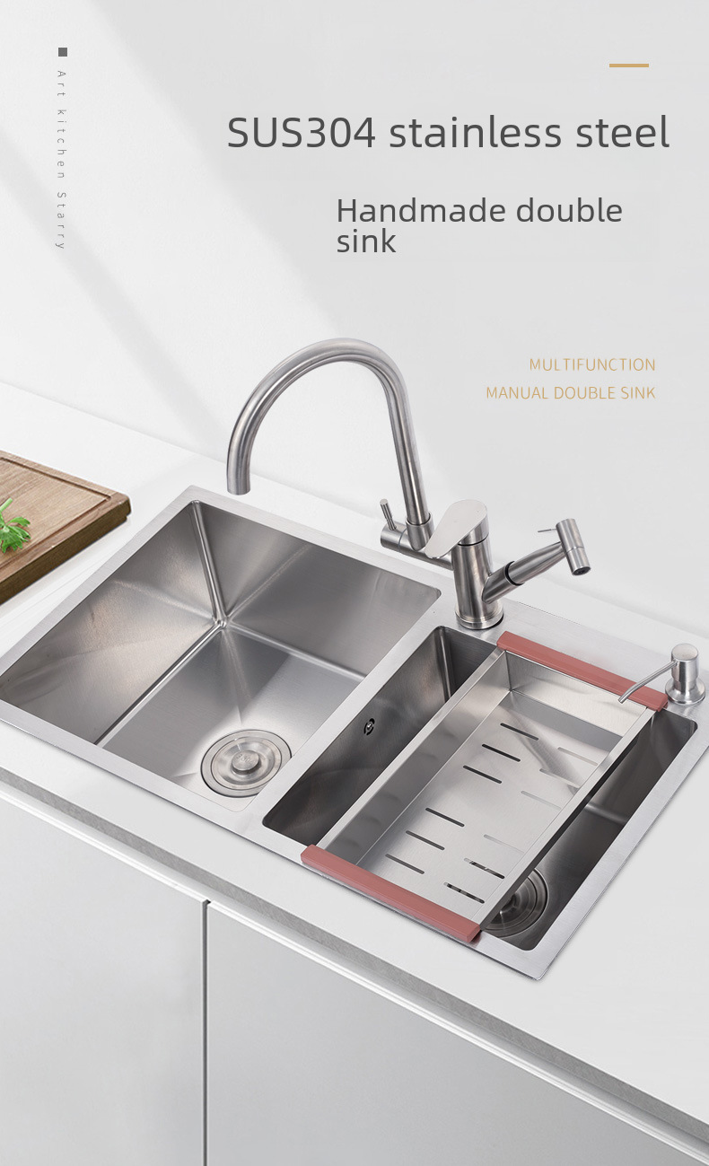 Stainless steel handmade sink double slot 304 kitchen sink vegetable washing basin thickened sink set undercounter basin double basin