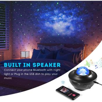 * Music Player * The night light projector has a built-in speaker so you can connect your phone Bluetooth or plug a USB flash dish in the port to play your favorite song.