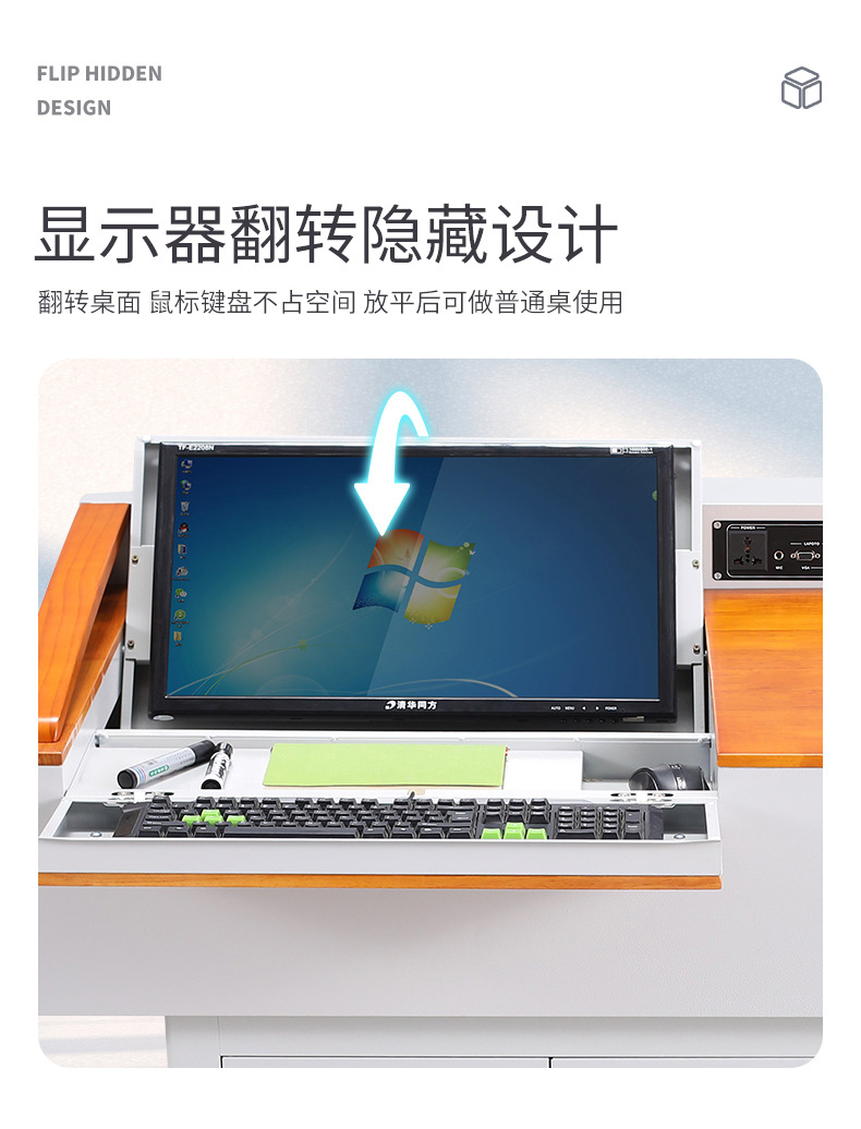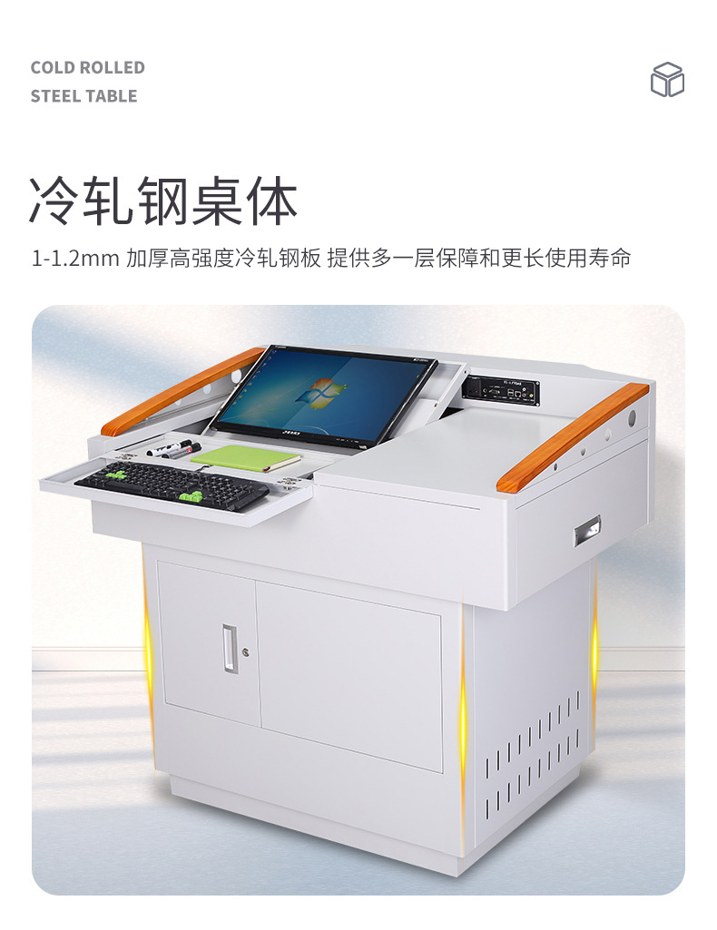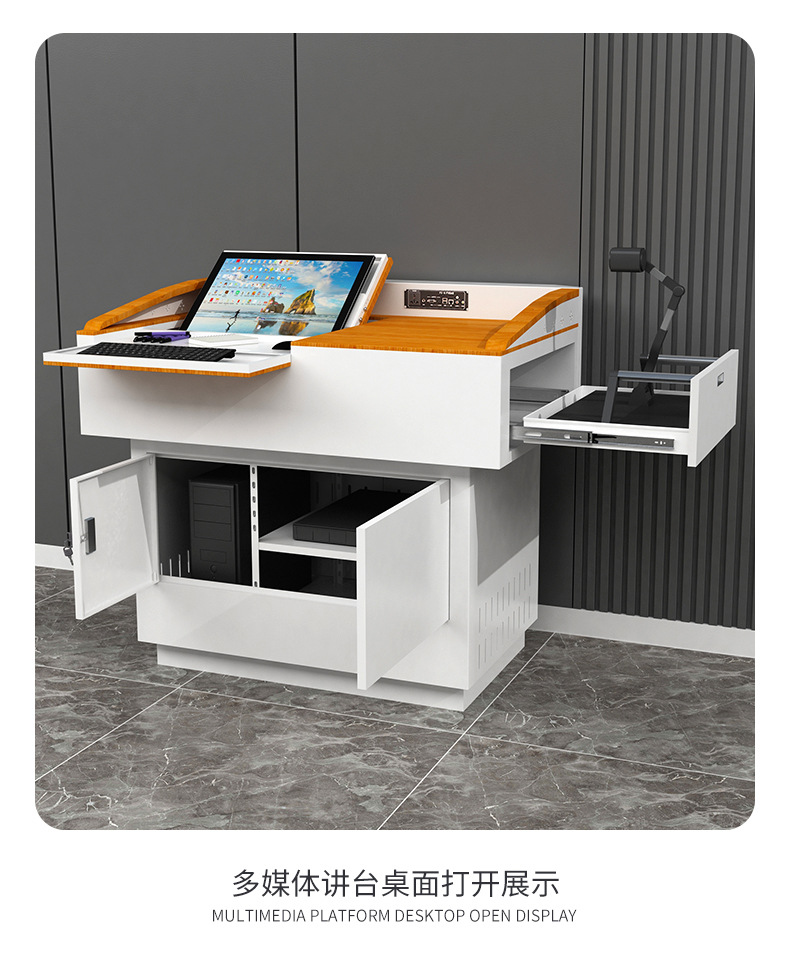 Steel School Multimedia Podium Electric Lifting Lecture Table for Teachers Lecture Multifunctional Computer Steel wood Lecture Table