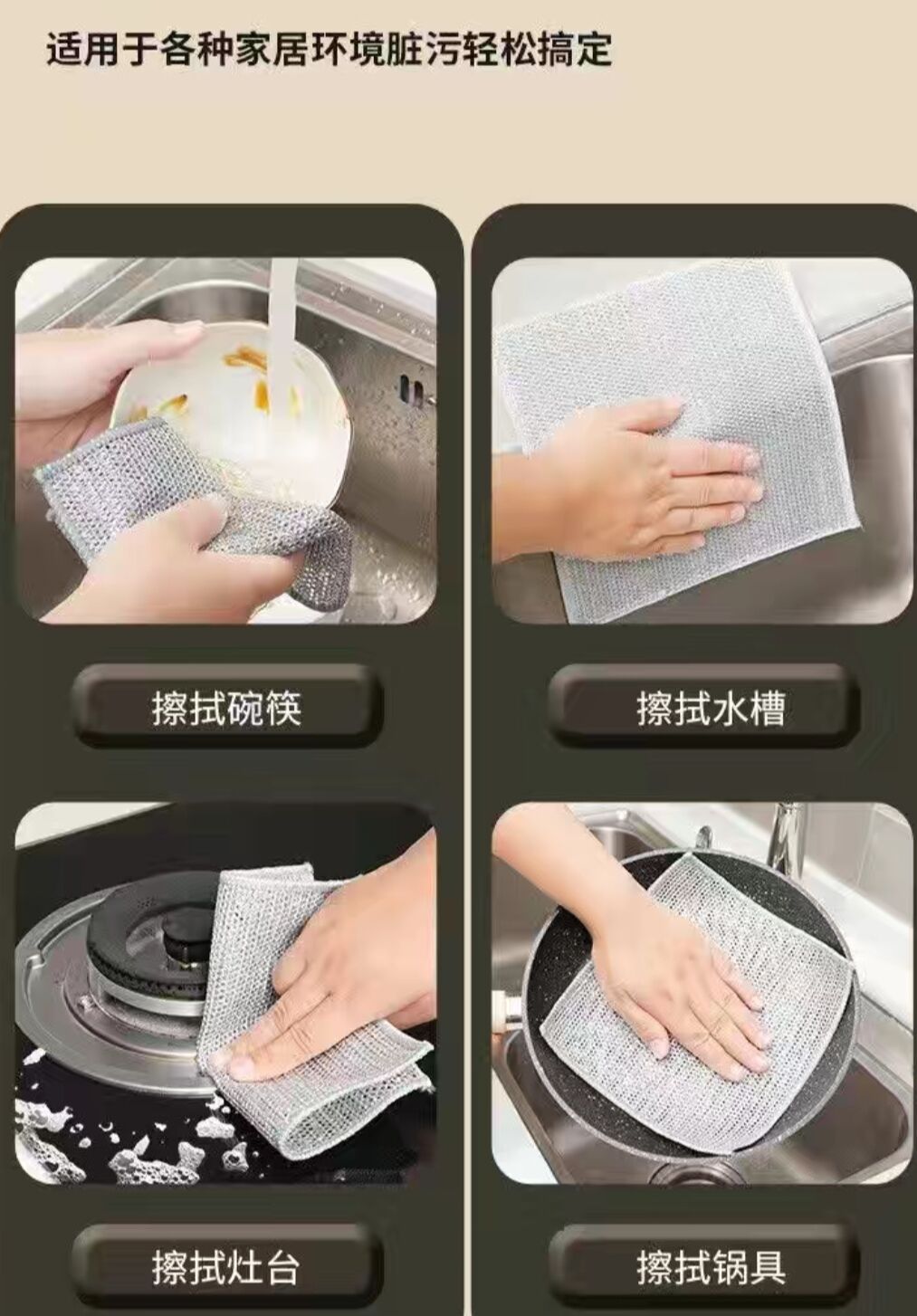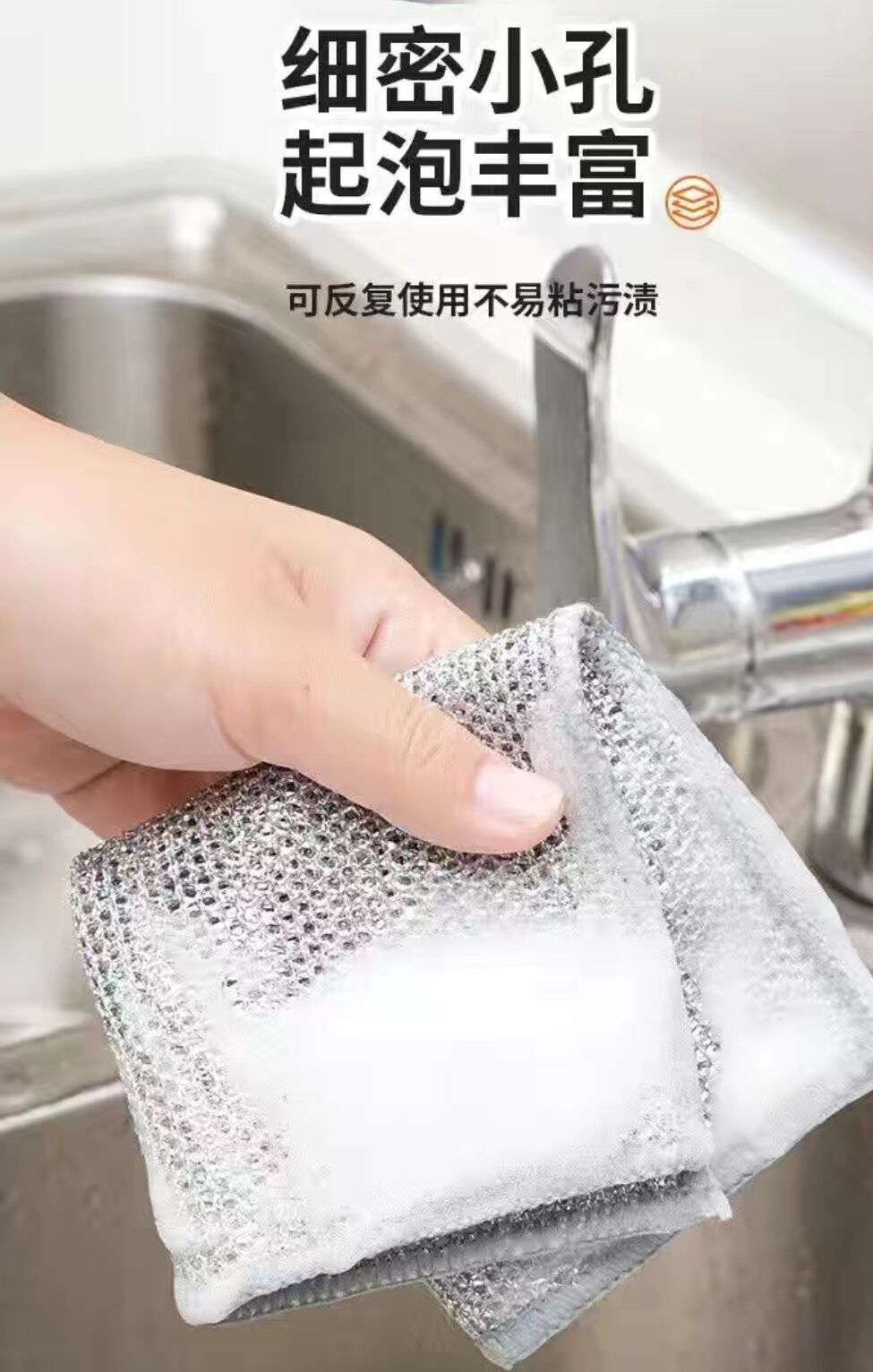 Steel wire rag new dish cloth double-layer encryption oil removal strong decontamination environmental protection polyester material household kitchen cleaning