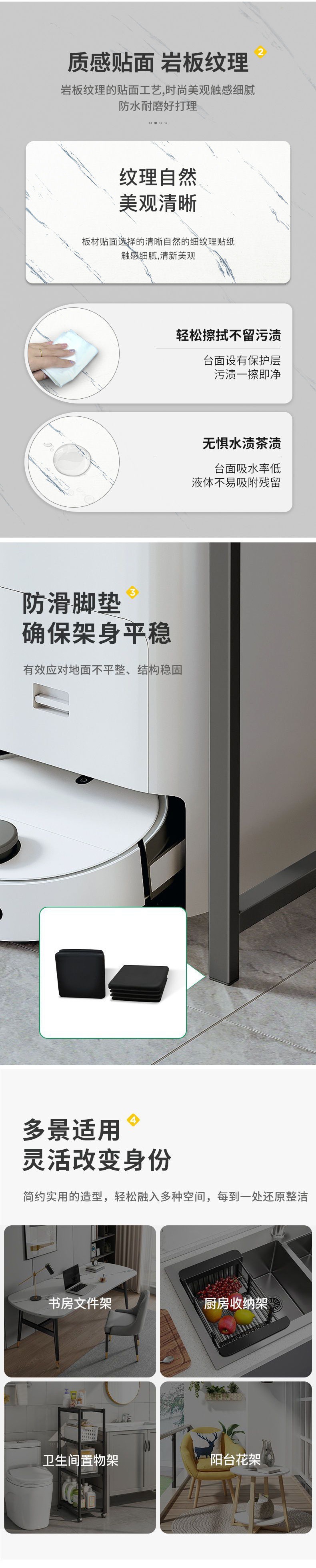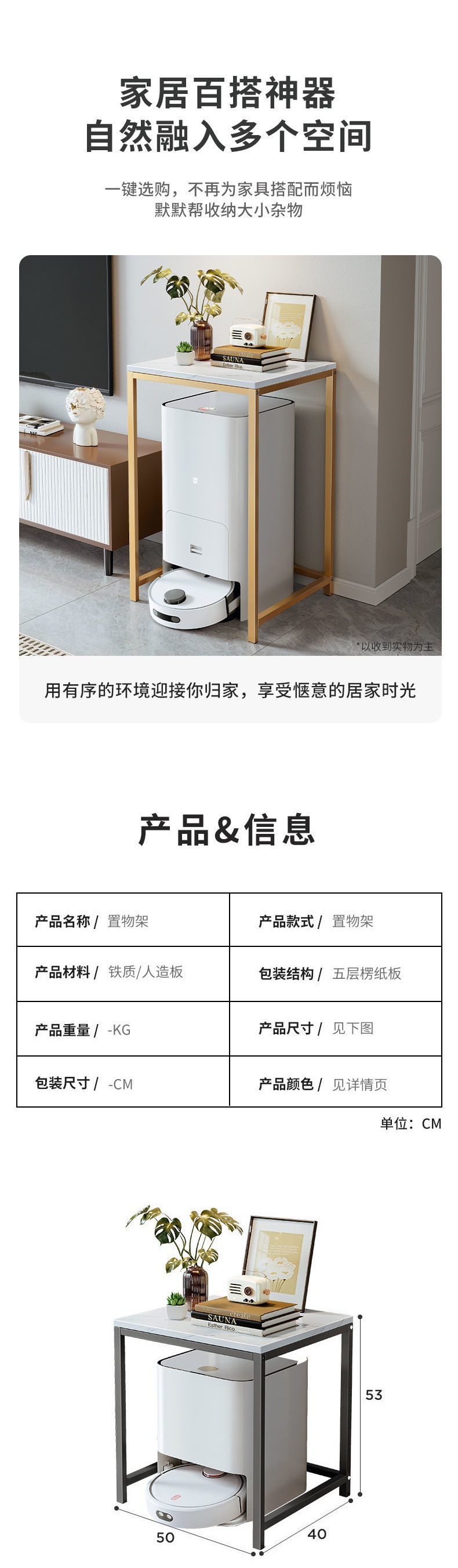 - A layer of white texture gold frame without wheels 80CM
