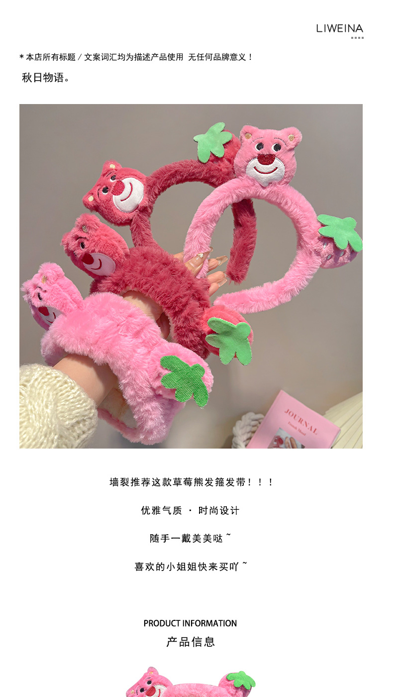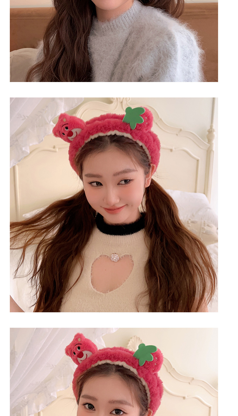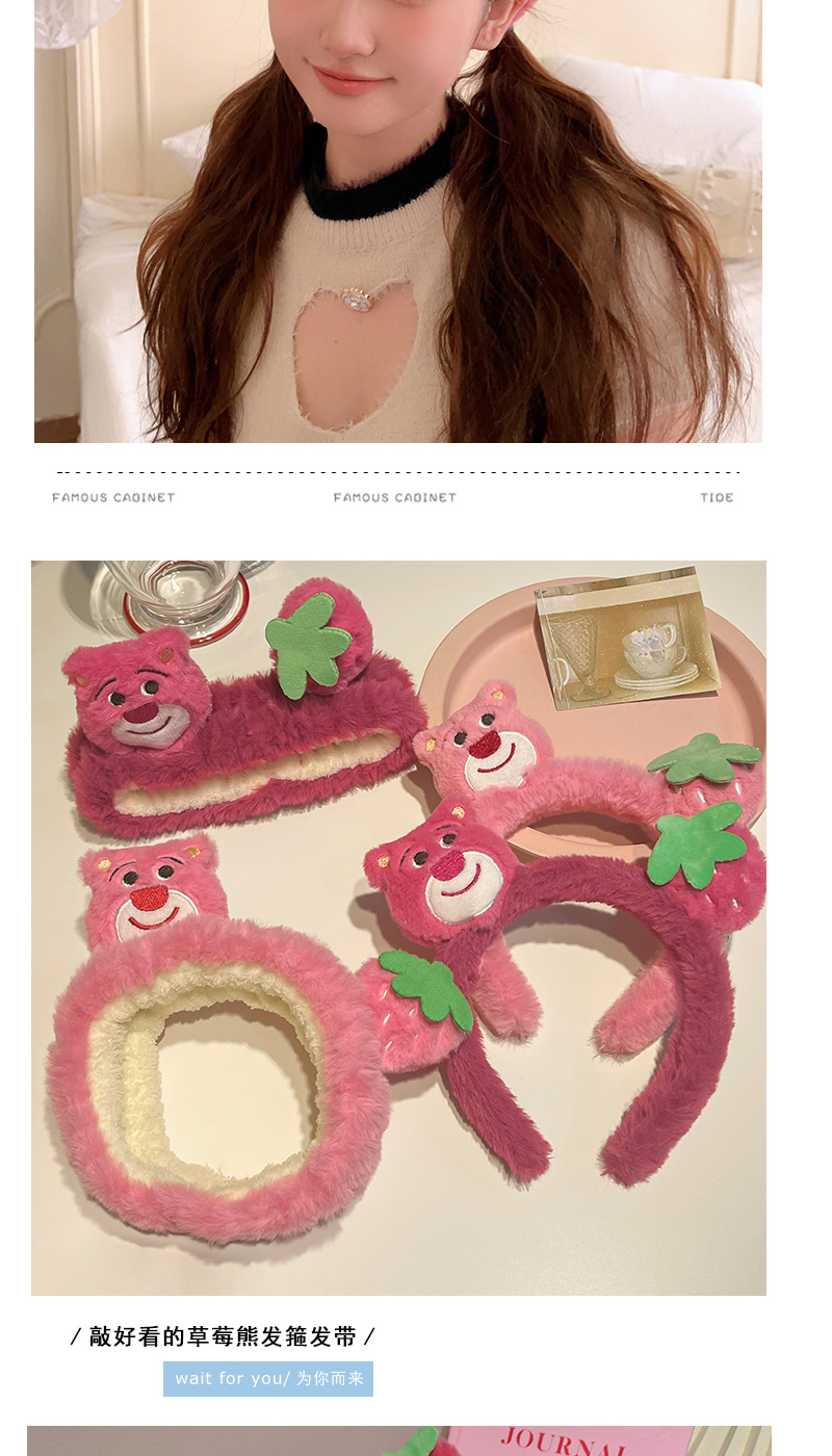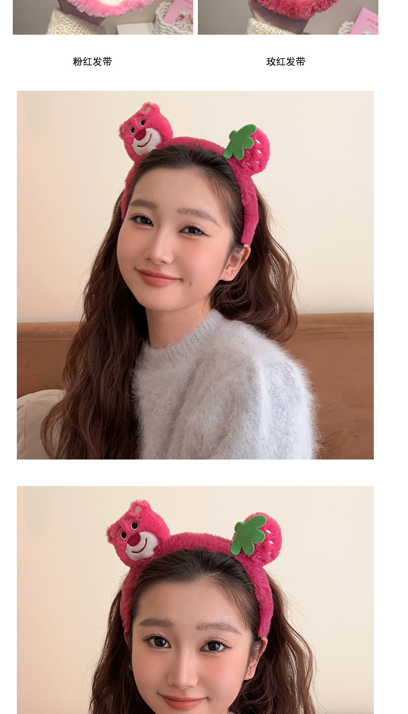 Strawberry bear headband women's New 2023 pitaya color headband plush hair band face wash pressure hair band