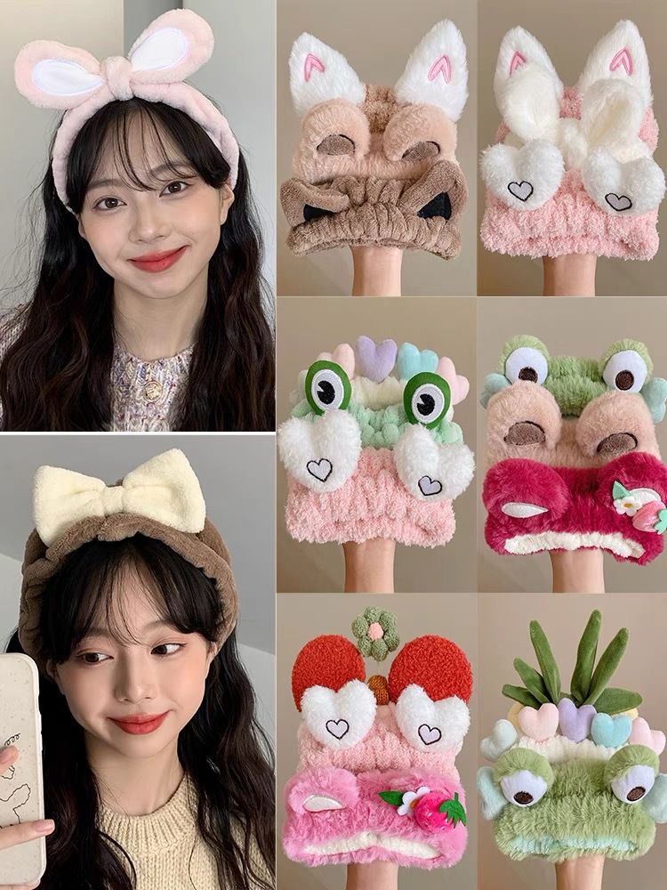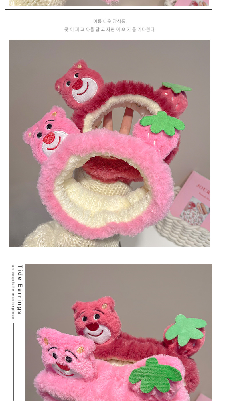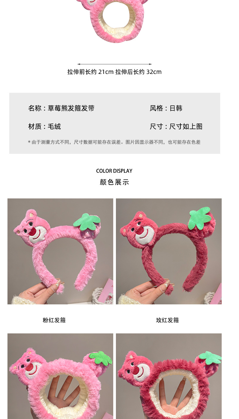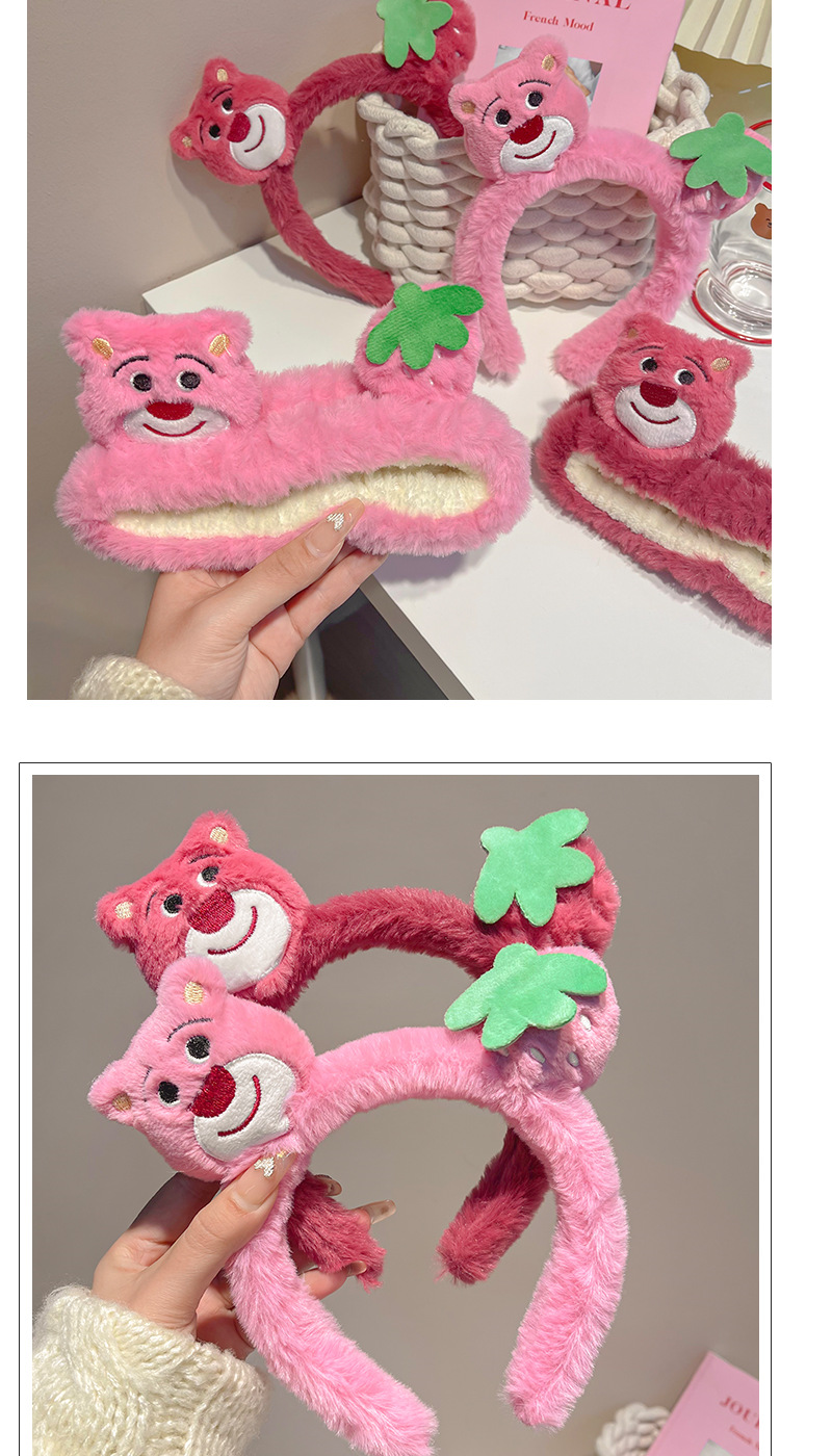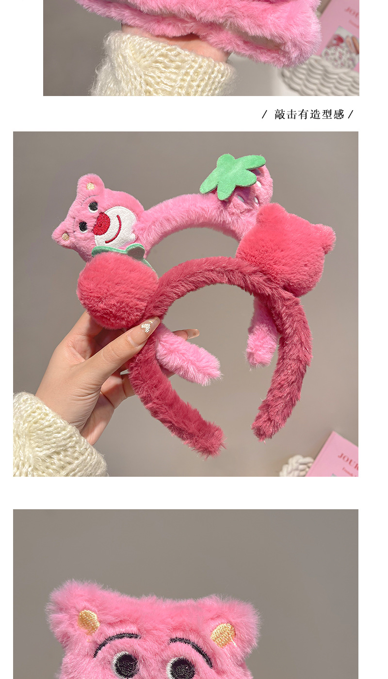 Strawberry bear headband women's New 2023 pitaya color headband plush hair band face wash pressure hair band
